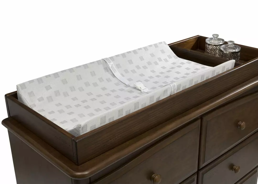 Your baby will be comfortable and safe come changing time with the Beautyrest Platinum Contoured Changing Pad! Made with a soft fabric cover with a waterproof backing, this easy-to-clean changing pad is durable enough for everyday use. The contoured sides gently cradle baby while the safety belt keeps them securely in place. Security tabs on the back of the pad keep it attached to furniture and the non-skid bottom helps so it wonât slip or move. Get the Beautyrest Platinum Contoured Changing Pad and turn any surface into a completely safe changing table or dressing station. Fits most changing tables.