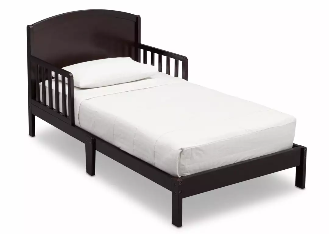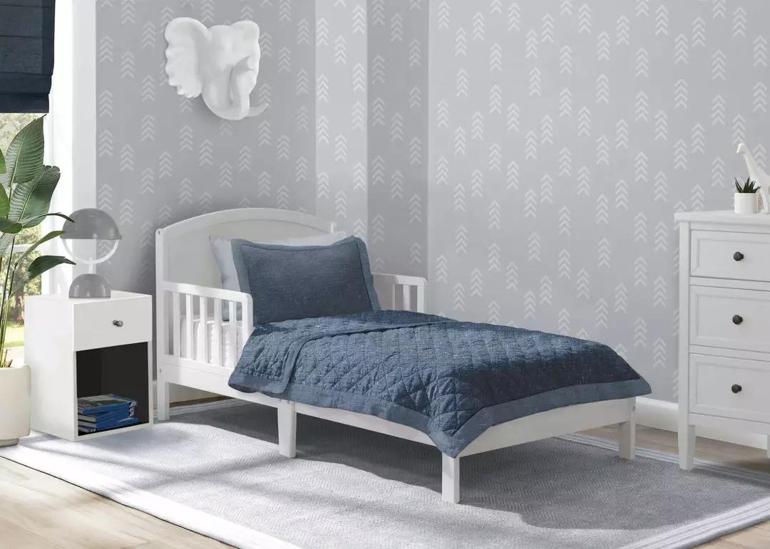The Abby Toddler Bed will help your child make the transition from crib to “big kid” bed. A comforting sleep space featuring two attached guardrails and a low height, this versatile toddler bed allows your little one to get in and out on their own. Designed with an arch-style headboard, the Abby Toddler Bed will add quiet sophistication to any toddler’s bedroom.