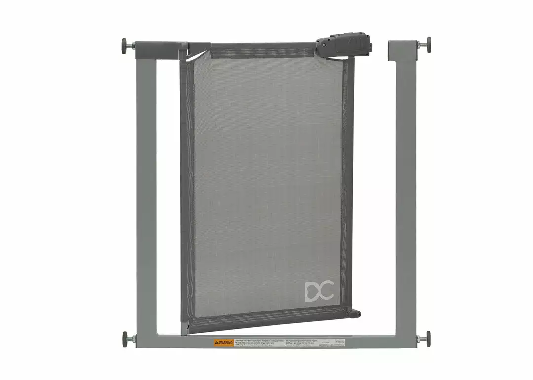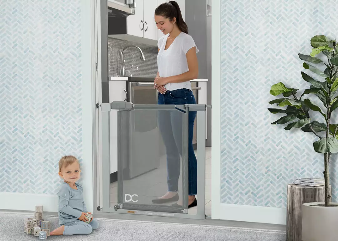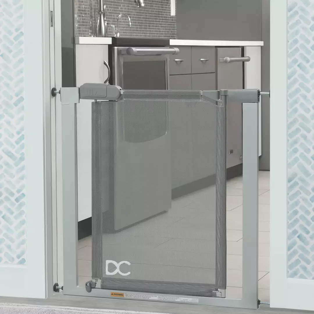 Easily child proof your home with the Delta Children Adjustable Baby Safety Gate. This pressure mounted gate requires no hardware or tools to install and exceeds a 30-pound pushout force without damaging your walls (unlike other brands!). The adjustable frame comes with two included extension pieces that allow the gate to fit openings between 28.5 inches and 40 inches effortlessly. This gate helps create child-friendly areas within your home, use it at the bottom of the stairs, doorways or hallways–the pressure mounted design makes it easy to move around the house. Its cool grey metal frame and swing-open door with see-through mesh allows you to keep an eye on your child and walk through whenever needed. Great for kids or pets. Stop use when your child can climb over the gate.