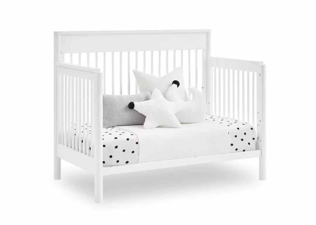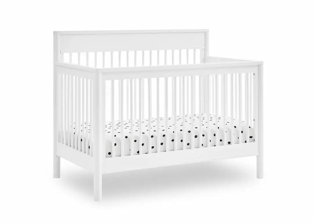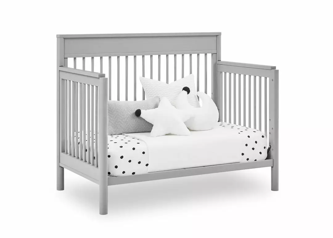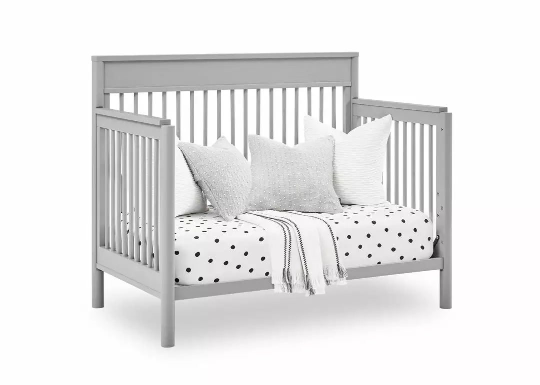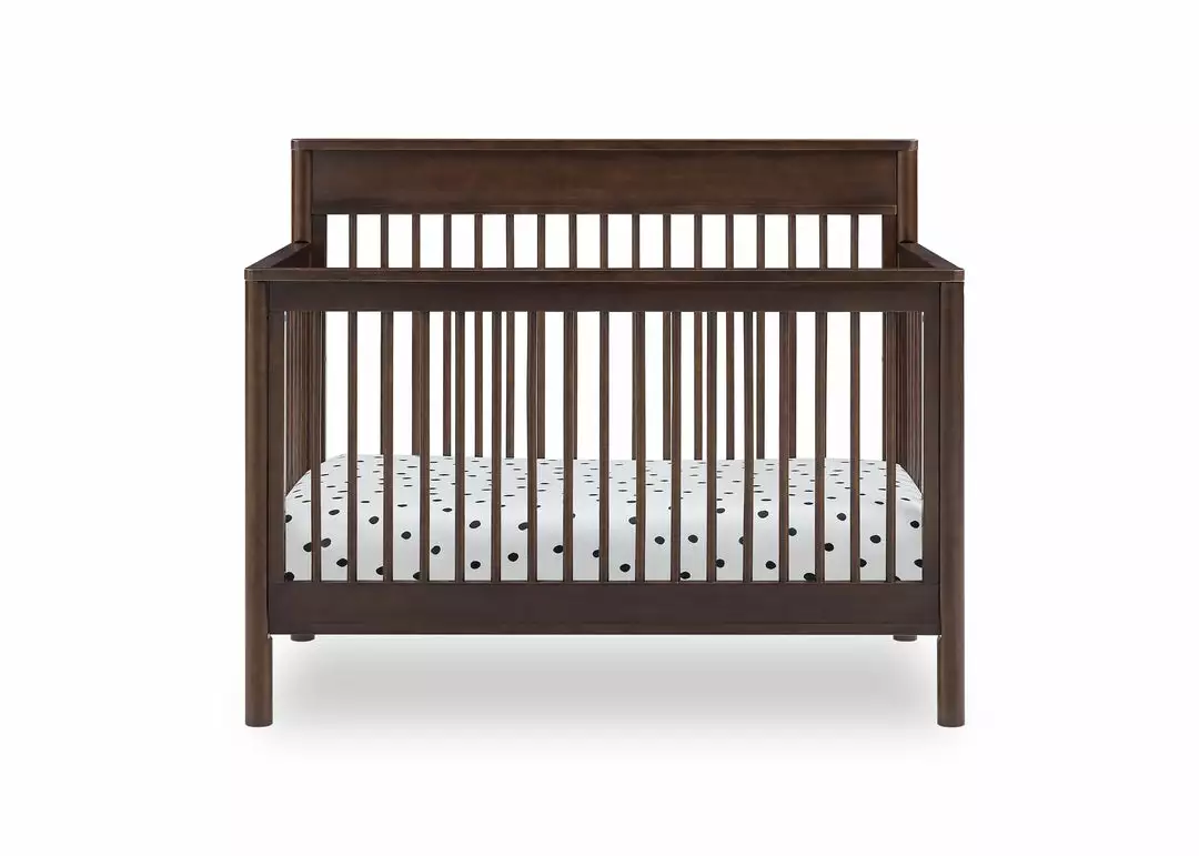 The Remy 6-in-1 Convertible Baby Crib by Delta Children will instantly elevate your nursery with its mid-century modern style. Clean lines, playful round spindles and cylindrical posts define this beautiful crib. Built to grow with your child, the Remy features an adjustable height mattress that can be lowered as baby begins to sit or stand, plus it converts from a crib to a toddler bed, daybed, sofa, and full size bed with and without footboard. Pair this crib with other pieces in the Remy Collection for a coordinated look.