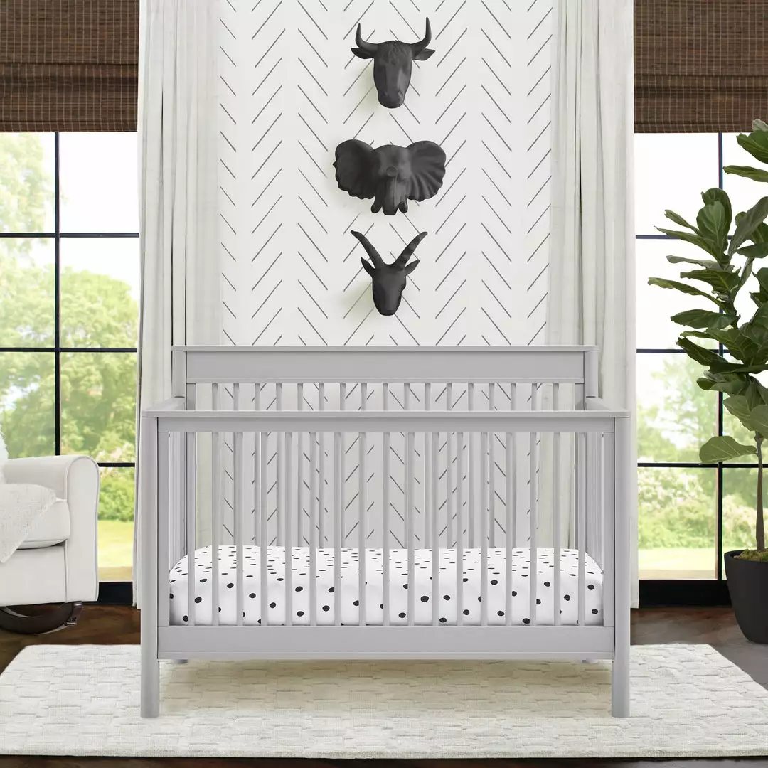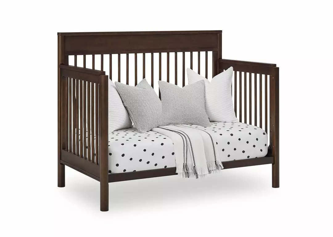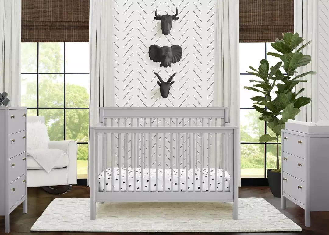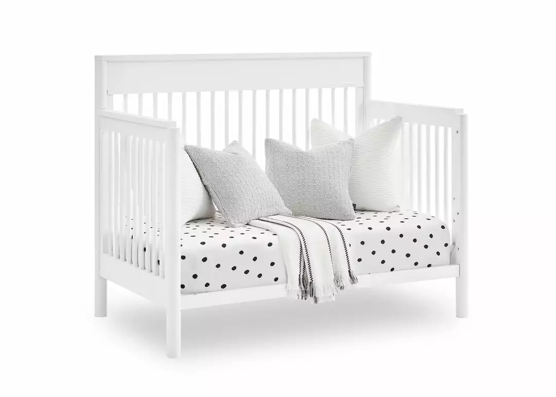 The Remy 6-in-1 Convertible Baby Crib by Delta Children will instantly elevate your nursery with its mid-century modern style. Clean lines, playful round spindles and cylindrical posts define this beautiful crib. Built to grow with your child, the Remy features an adjustable height mattress that can be lowered as baby begins to sit or stand, plus it converts from a crib to a toddler bed, daybed, sofa, and full size bed with and without footboard. Pair this crib with other pieces in the Remy Collection for a coordinated look.
