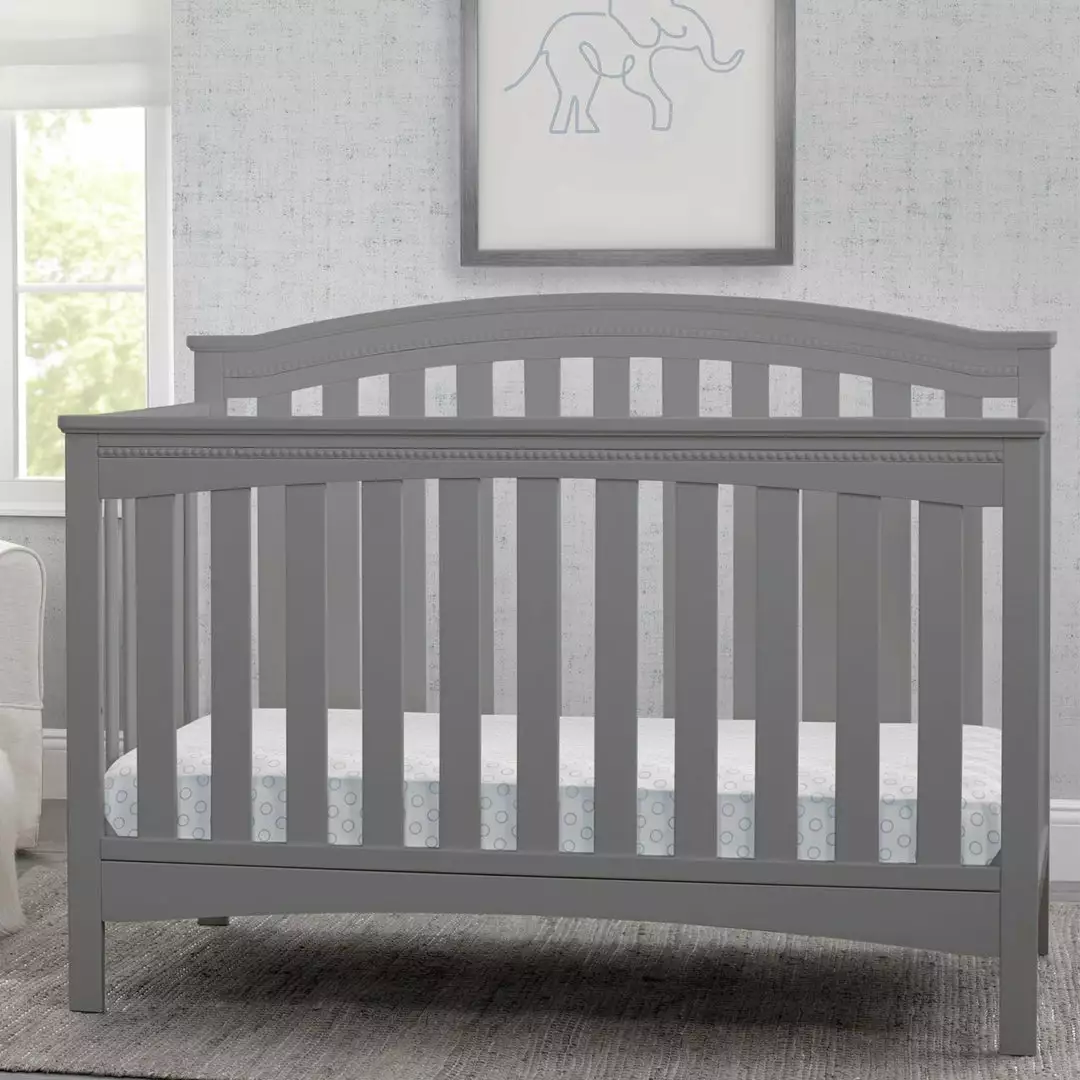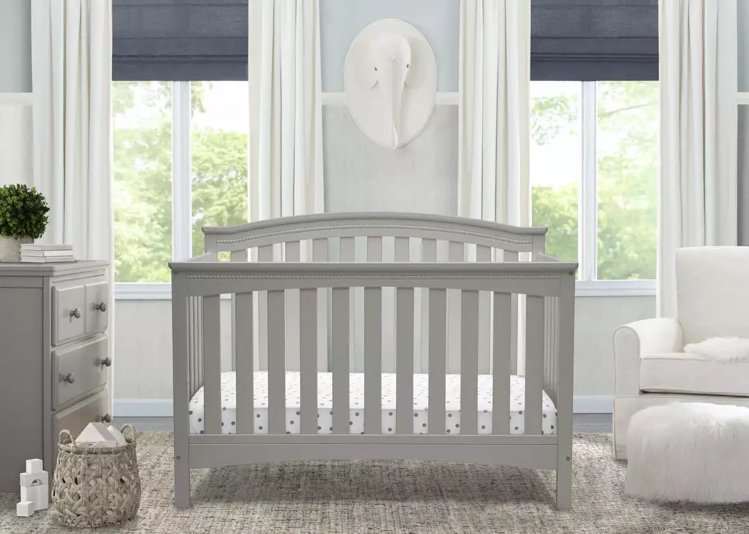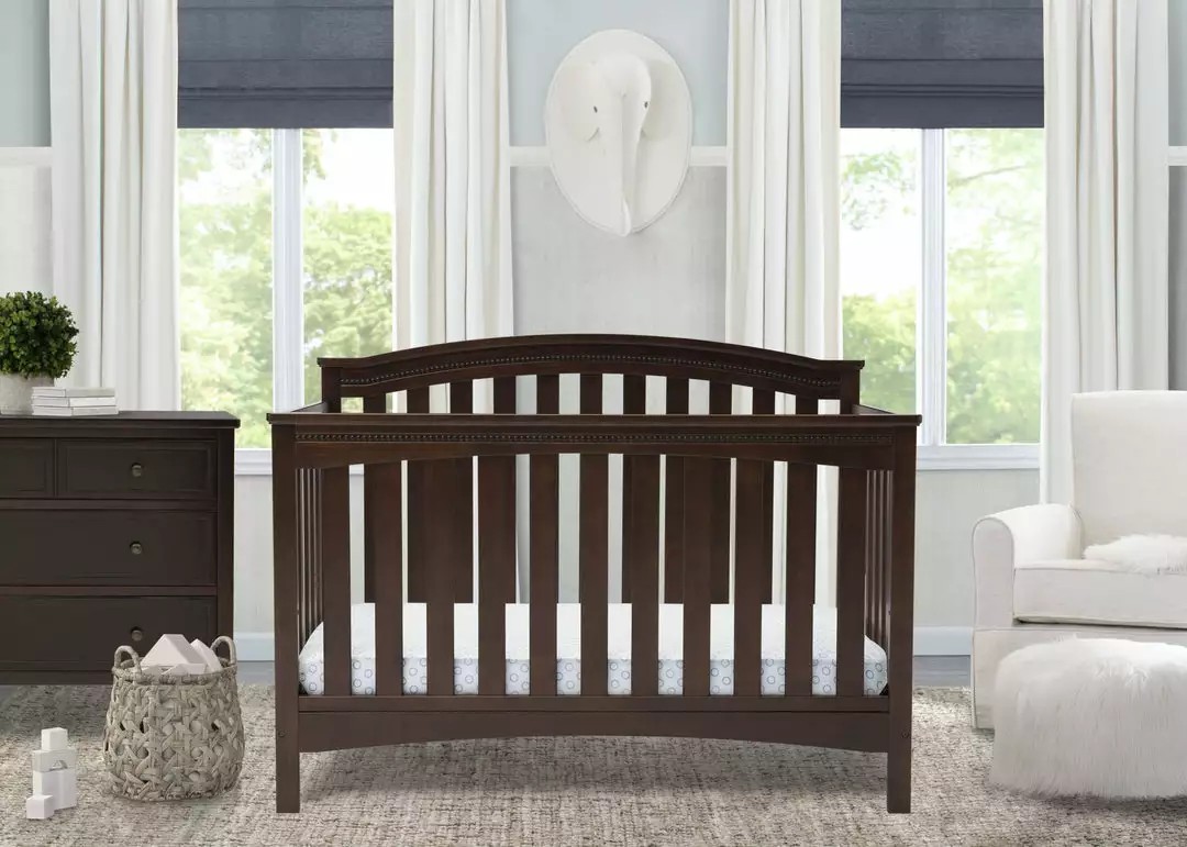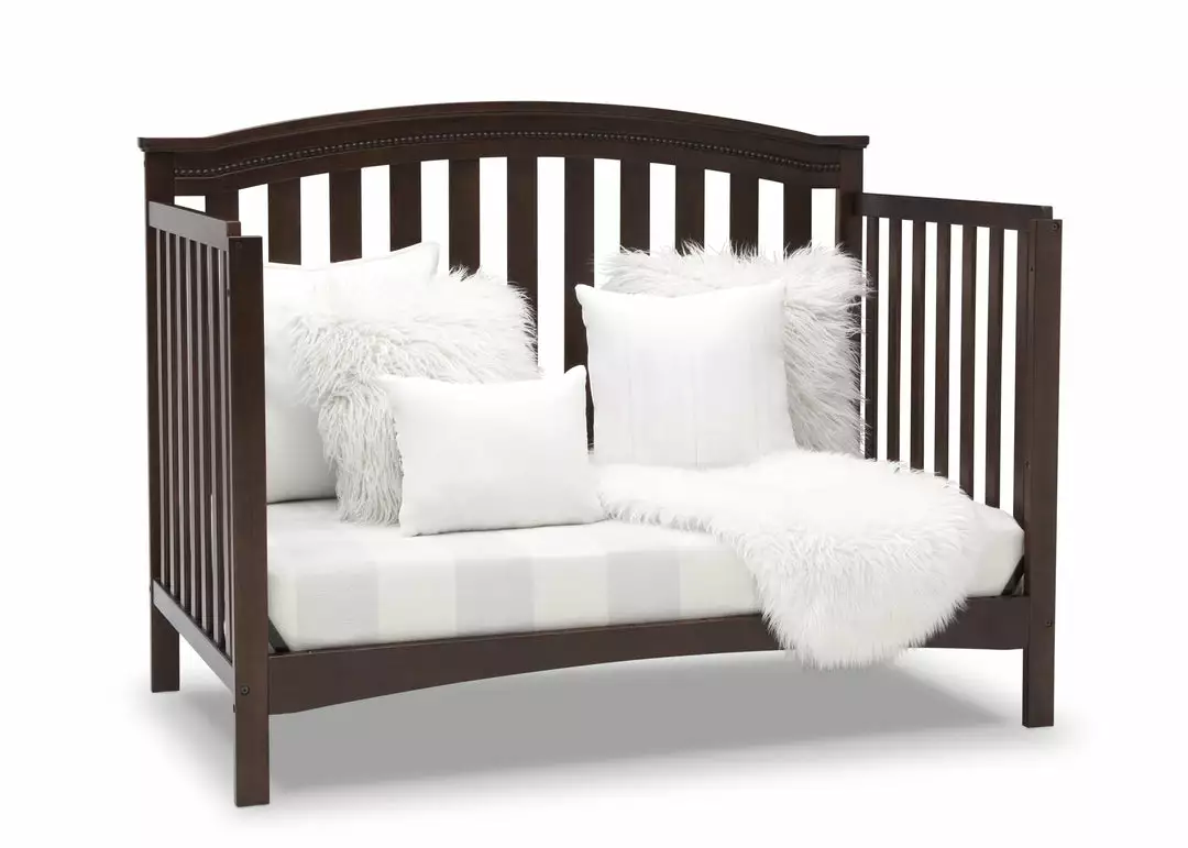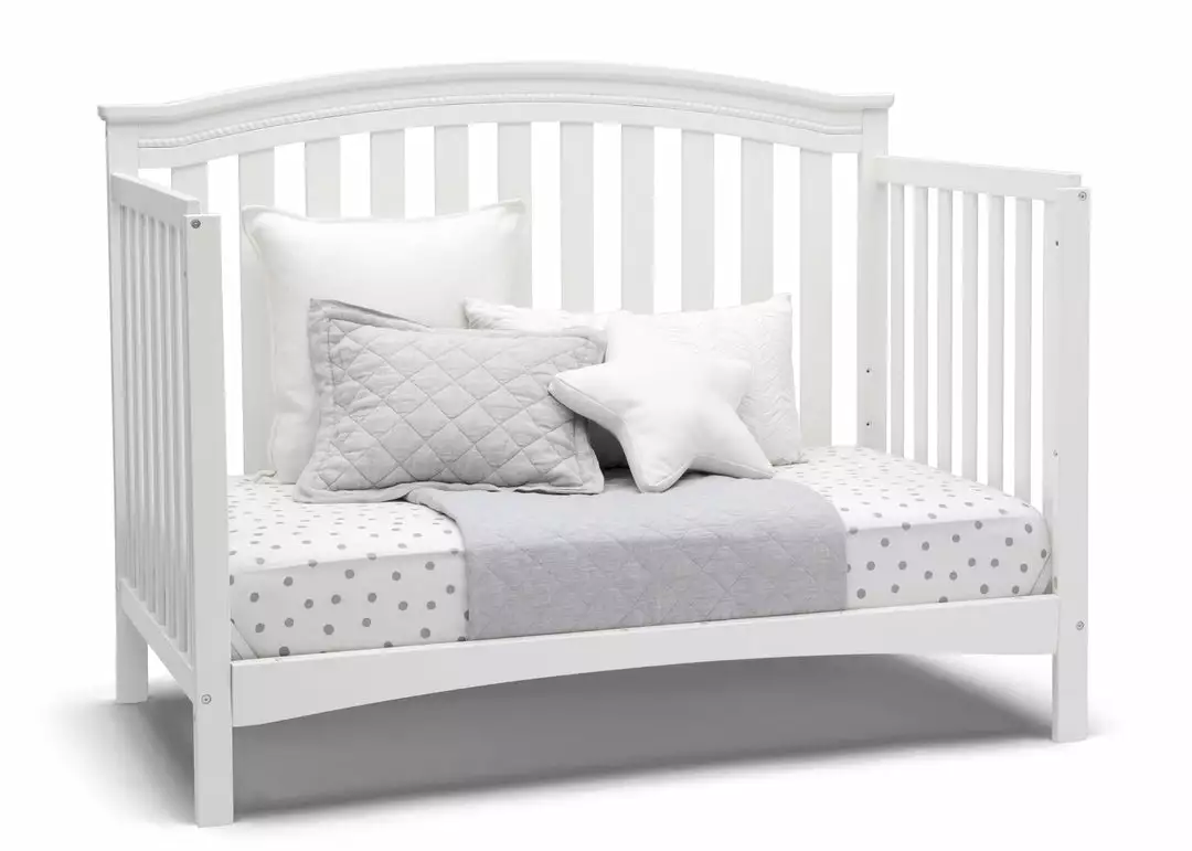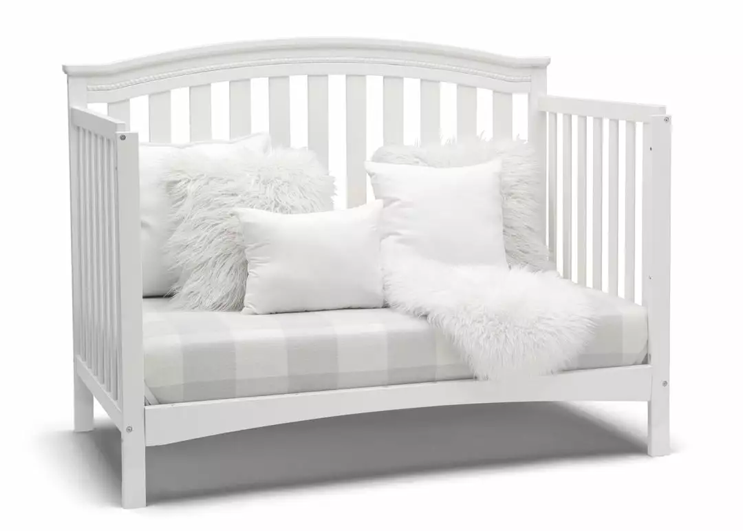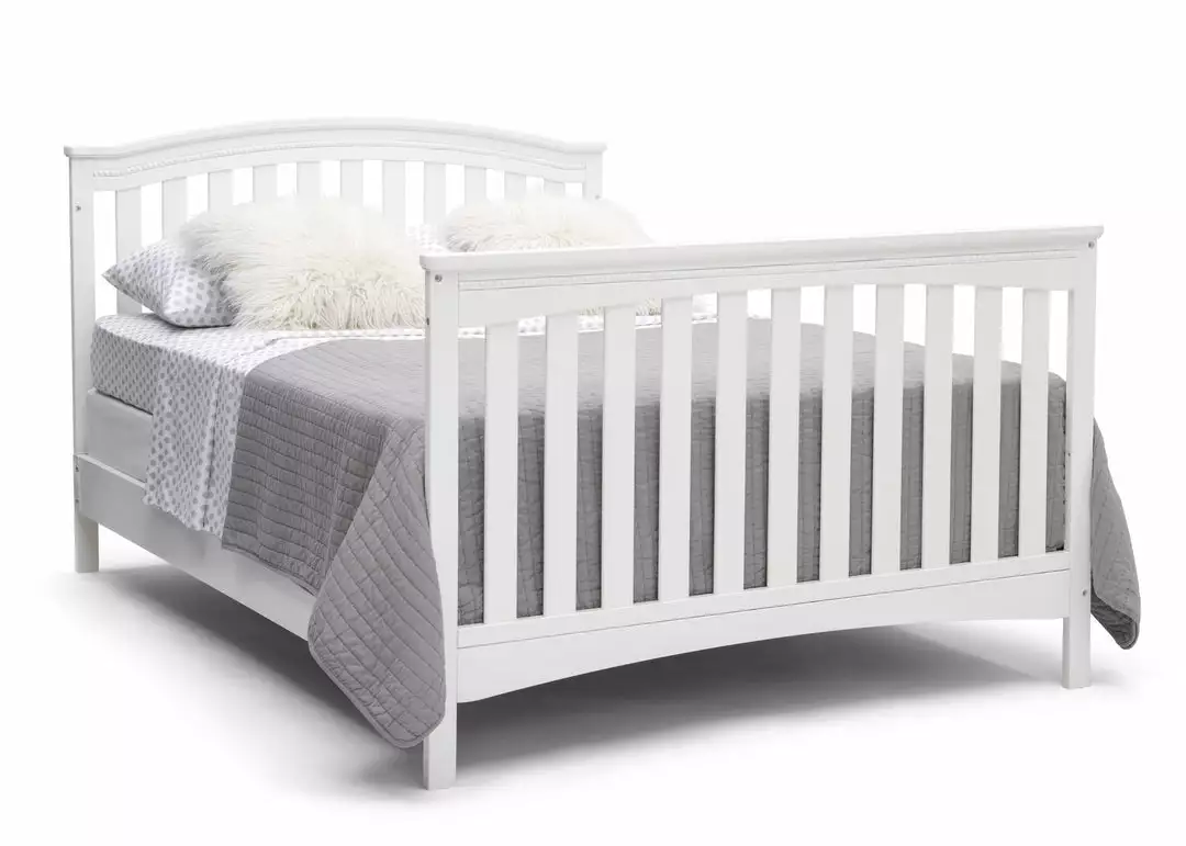 The Waverly 6-in-1 Convertible Crib by Delta Children features elegant crown molding and beadwork on both the headboard and footboard. Itâs stylish, well-priced, and will be loved from birth to toddlerhood to teendom. An adjustable three-position mattress platform keeps baby safe at all stagesâlower it as your baby begins to sit or stand. This timeless crib is also convertible, it converts into a toddler bed, daybed, sofa, full size bed with headboard only and full size bed with headboard and footboard. Complete your babyâs nursery with coordinating pieces from Delta Children.