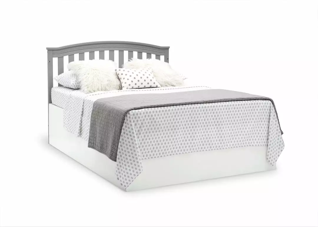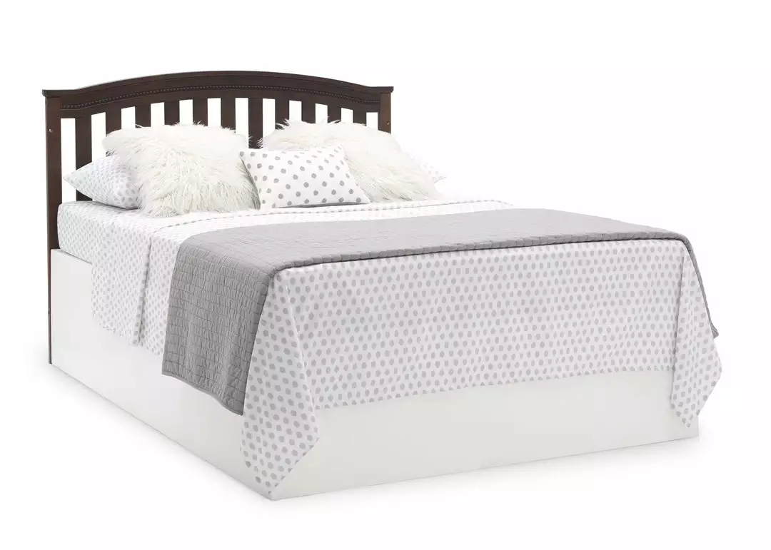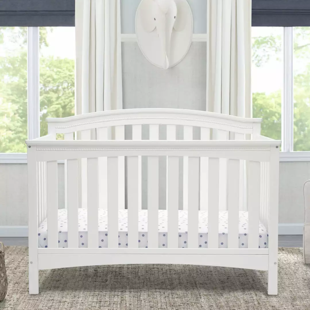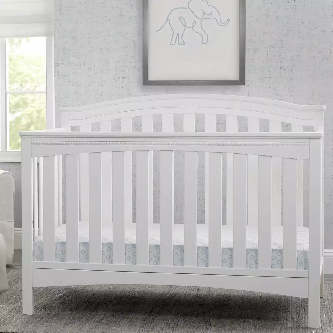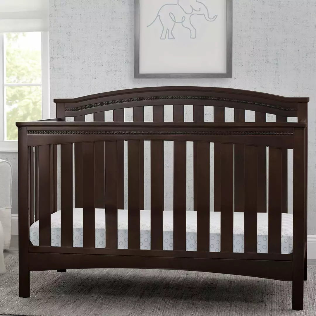 The Waverly 6-in-1 Convertible Crib by Delta Children features elegant crown molding and beadwork on both the headboard and footboard. Itâs stylish, well-priced, and will be loved from birth to toddlerhood to teendom. An adjustable three-position mattress platform keeps baby safe at all stagesâlower it as your baby begins to sit or stand. This timeless crib is also convertible, it converts into a toddler bed, daybed, sofa, full size bed with headboard only and full size bed with headboard and footboard. Complete your babyâs nursery with coordinating pieces from Delta Children.