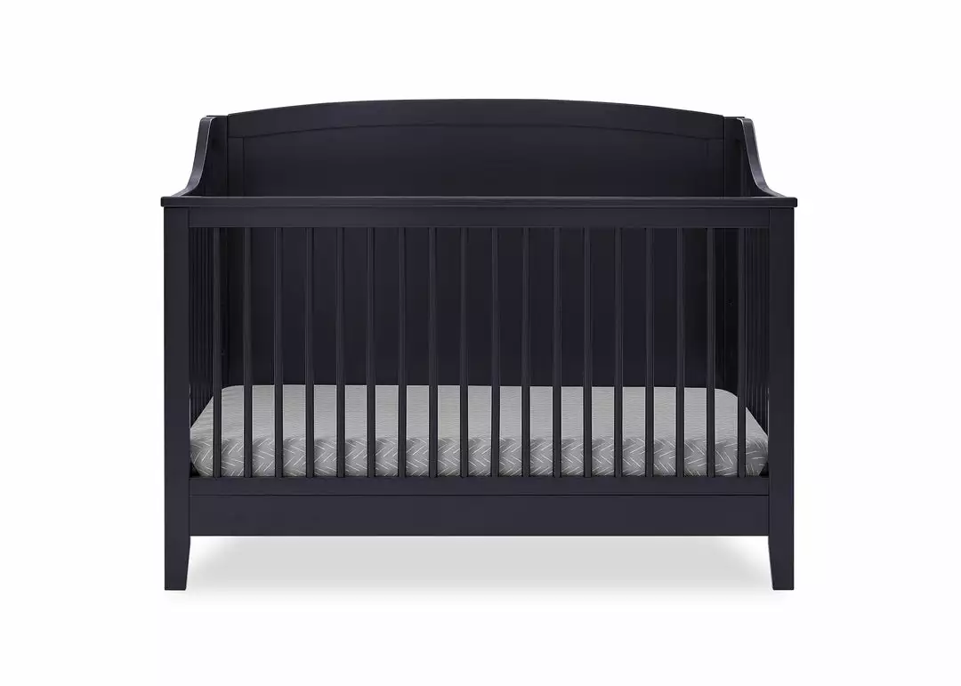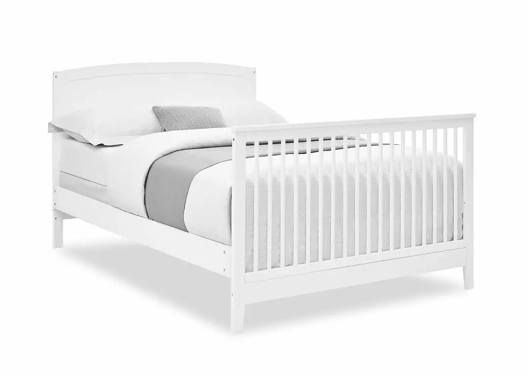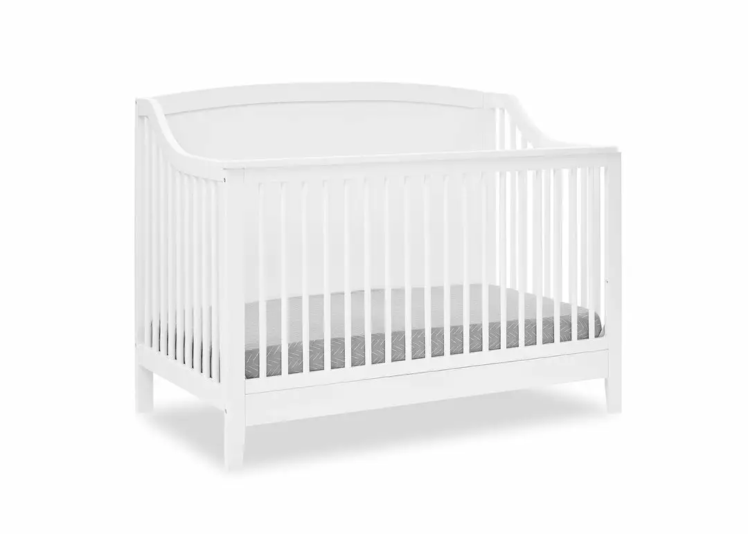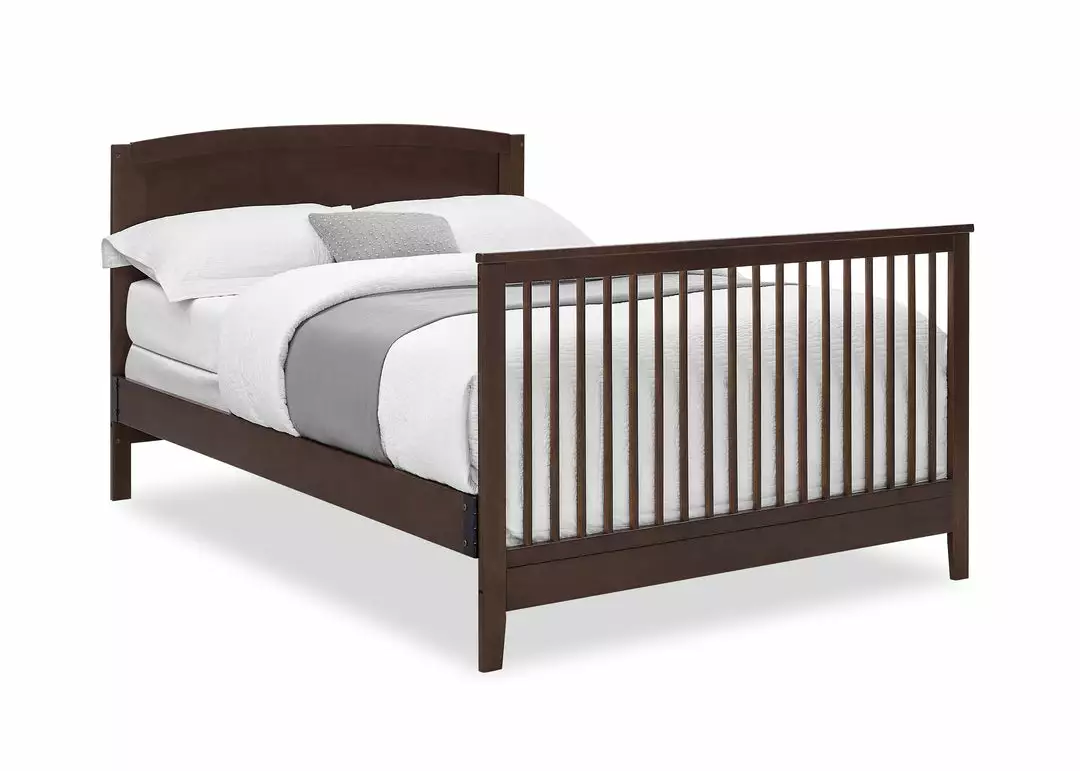 Bring your dream nursery to life with the Delta Children Campbell 6-in-1 Convertible Crib. A modern adaptation of a classic sleigh crib, it features timeless details like slight curves and a full panel headboard while the rounded spindles add a contemporary touch. Designed to adapt to your growing baby, the Campbell 6-in-1 Crib is equipped with an adjustable mattress support base that features three different height optionsâstart at the highest setting for newborns and lower as your baby begin to sit or stand. Plus, once your child is ready for their big girl/boy bed, this crib converts into a toddler bed, daybed, sofa and full size bed with or without footboard (Daybed/Sofa rail included; Toddler Guardrail #W100725 and Full Size Bed Rails #0050 sold separately). This crib is available in Bianca White, Walnut Espresso or Midnight Grey and coordinates with other items in the Delta Children Campbell Nursery Collection.