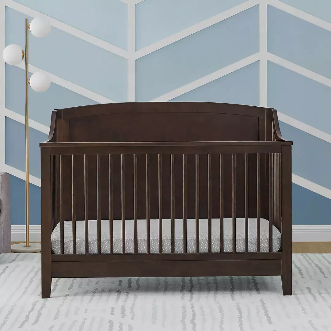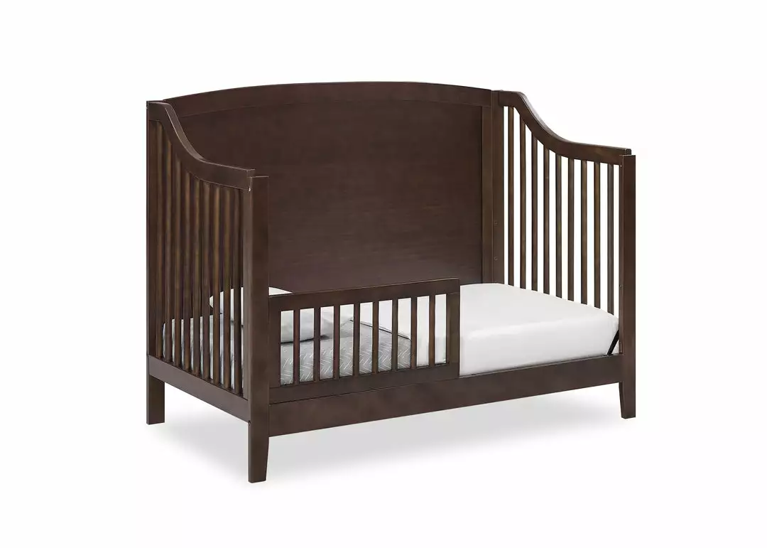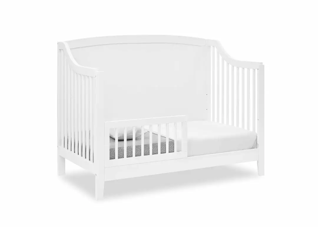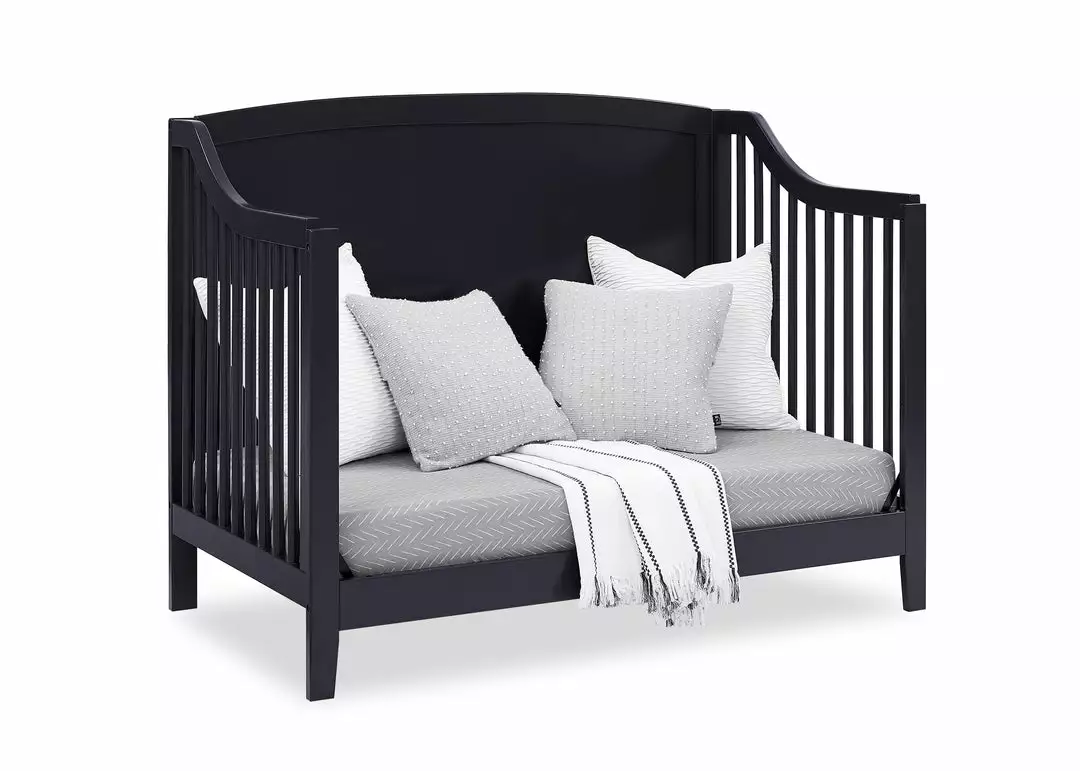 Bring your dream nursery to life with the Delta Children Campbell 6-in-1 Convertible Crib. A modern adaptation of a classic sleigh crib, it features timeless details like slight curves and a full panel headboard while the rounded spindles add a contemporary touch. Designed to adapt to your growing baby, the Campbell 6-in-1 Crib is equipped with an adjustable mattress support base that features three different height optionsâstart at the highest setting for newborns and lower as your baby begin to sit or stand. Plus, once your child is ready for their big girl/boy bed, this crib converts into a toddler bed, daybed, sofa and full size bed with or without footboard (Daybed/Sofa rail included; Toddler Guardrail #W100725 and Full Size Bed Rails #0050 sold separately). This crib is available in Bianca White, Walnut Espresso or Midnight Grey and coordinates with other items in the Delta Children Campbell Nursery Collection.
