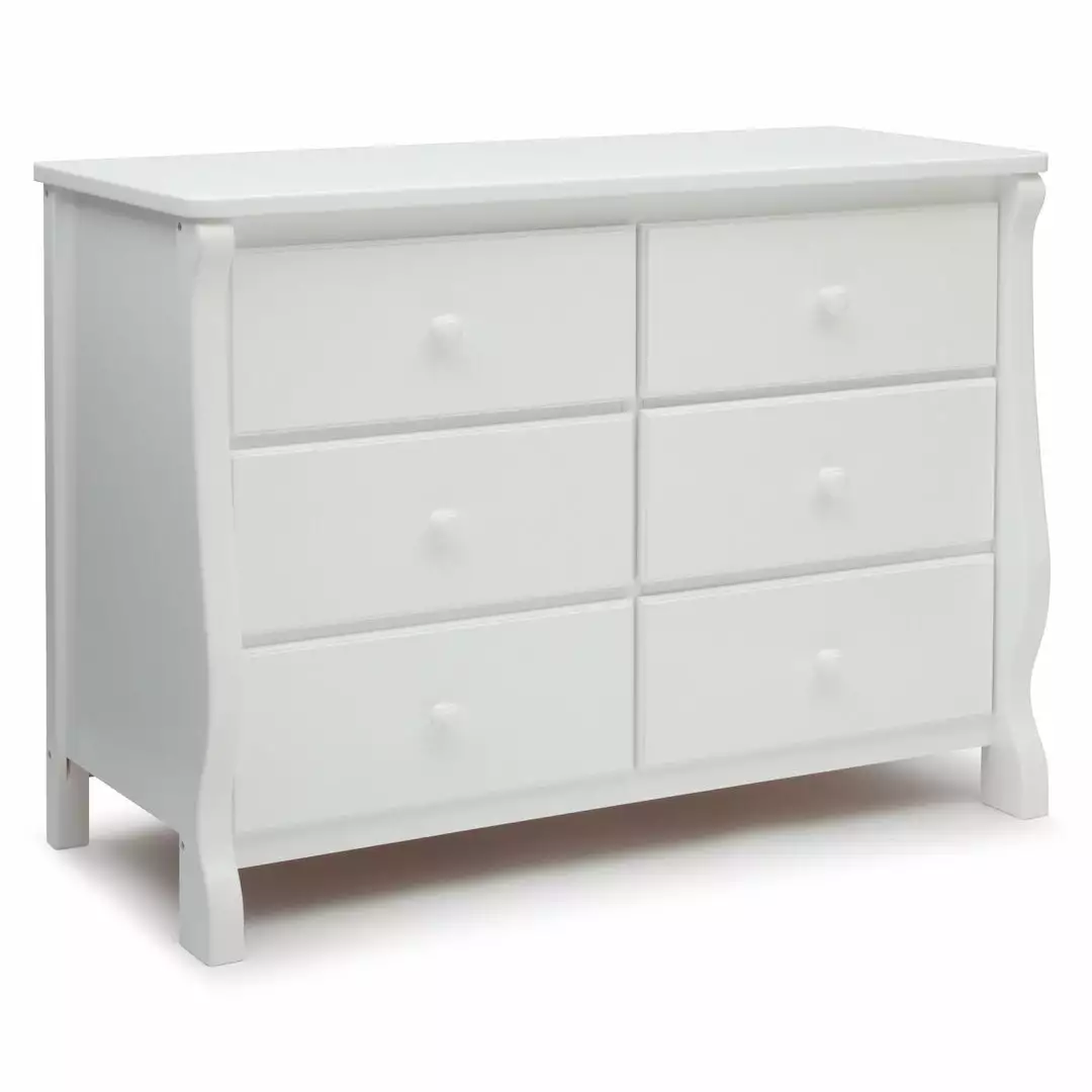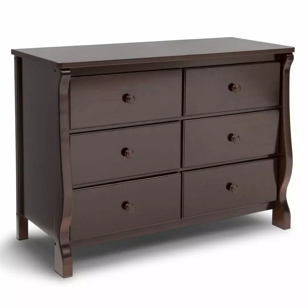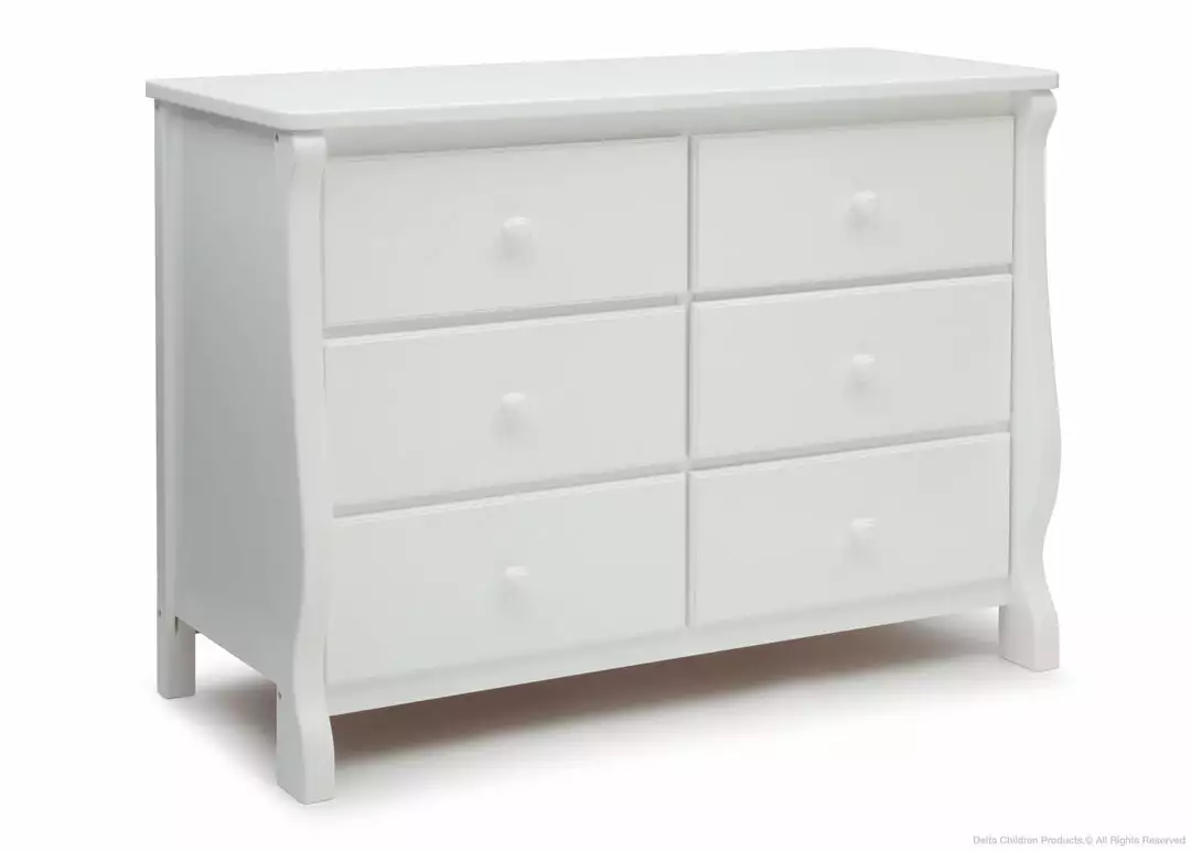 This Delta 6-Drawer Dresser is a gorgeous piece that combines simple, yet chic style with superb functionality. With a smooth surface top that can double as a bedside table, this versatile dresser has ample storage space that can serve from baby to adulthood. Spacious and made of sturdy construction, it comes with durable metal drawer glides for smooth drawer opening. Easy to assemble and easily fits within any decor. Complete your baby’s room with the Canton or Eclipse 4-in-1 Crib and Eclipse Changing Table.
