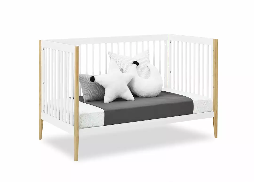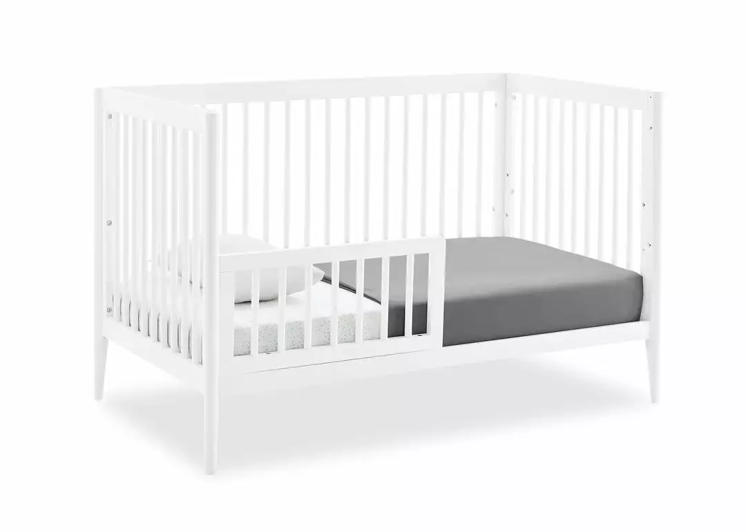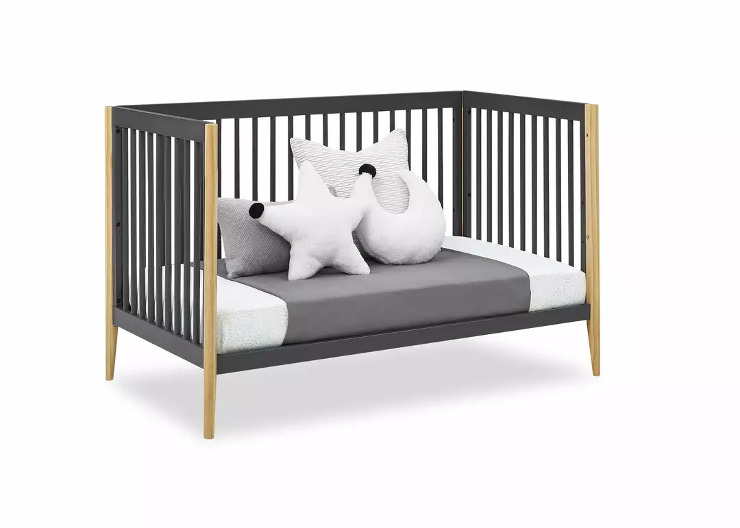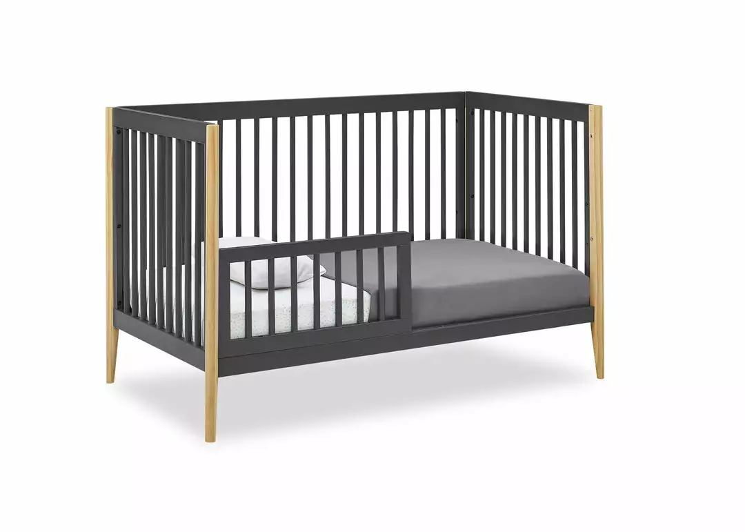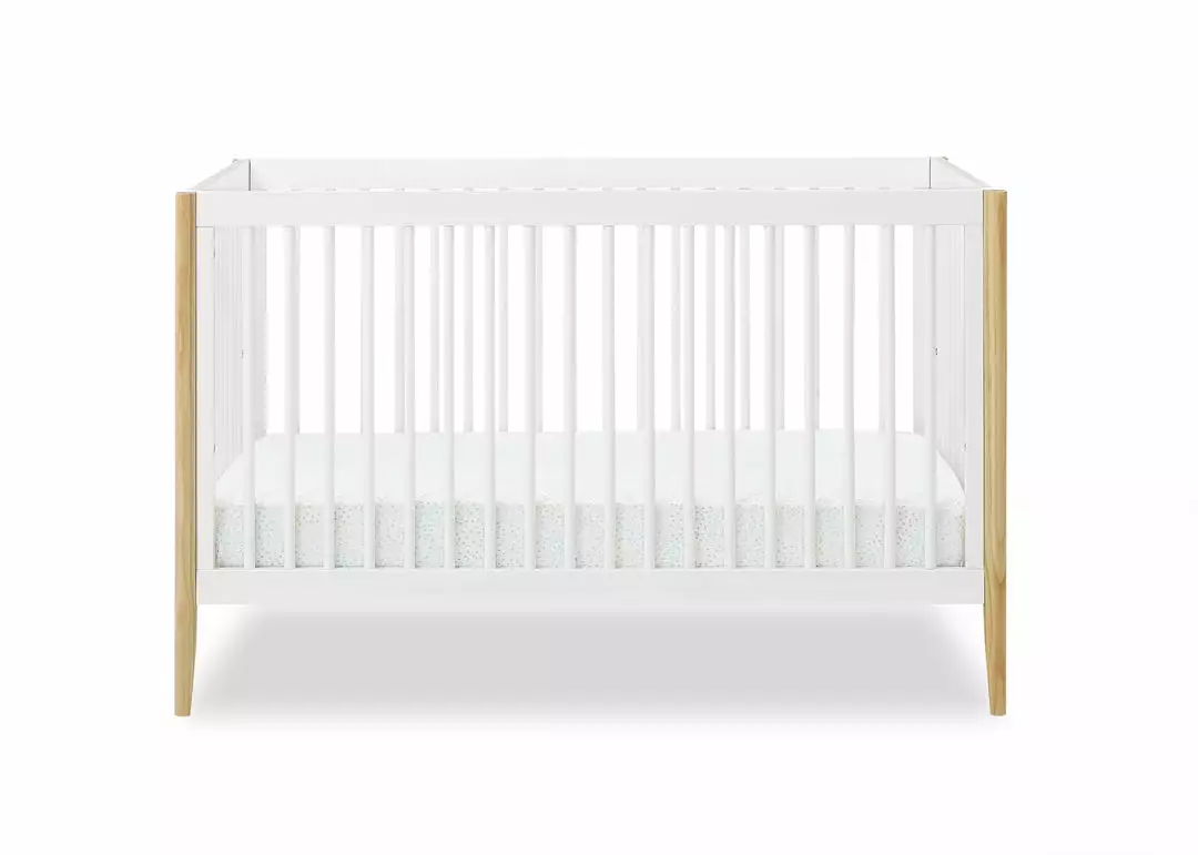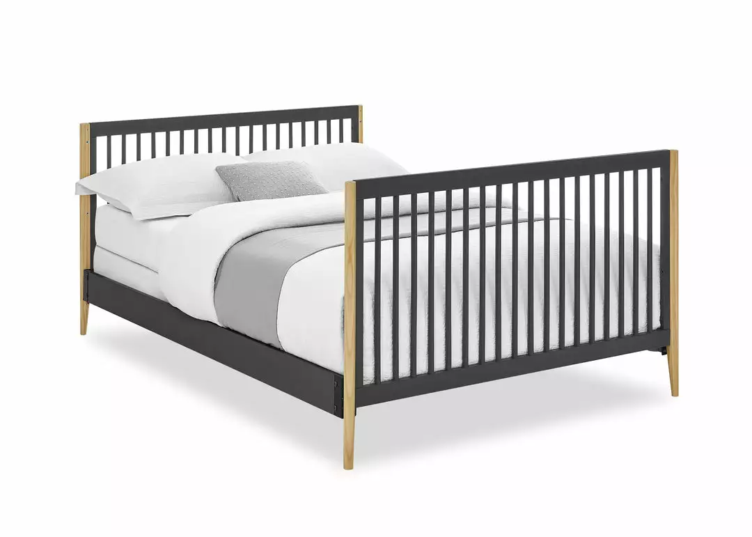 The Casey 6-in-1 Convertible Baby Crib by Delta Children will instantly elevate your nursery with its mid-century modern style. Clean lines, playful round spindles and cylindrical posts define this beautiful crib. Built to grow with your child, the Casey Crib features an adjustable height mattress that can be lowered as baby begins to sit or stand, plus it converts from a crib to a toddler bed, daybed, sofa, full size bed with headboard and footboard and full size bed with headboard only. Pair this crib with other pieces in the Casey Collection for a coordinated look.
