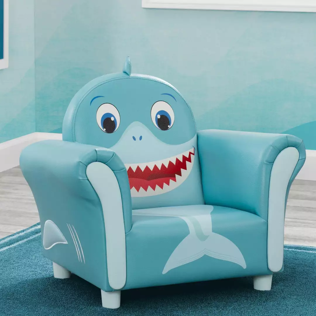 This Cozy Shark Chair by Delta Children is sure to make a splash! Full of under-the-sea charm, this jaw-dropping chair with a padded seat and faux leather fabric offers the perfect kid-sized spot for reading, relaxing or snuggling. Best of all, its impressive chompers and three-dimensional fin accent will make it wildly popular with your baby shark. Ready to take a bite out of cuddle time, this chair is some-fin special to add to your kidâs playroom or bedroom.