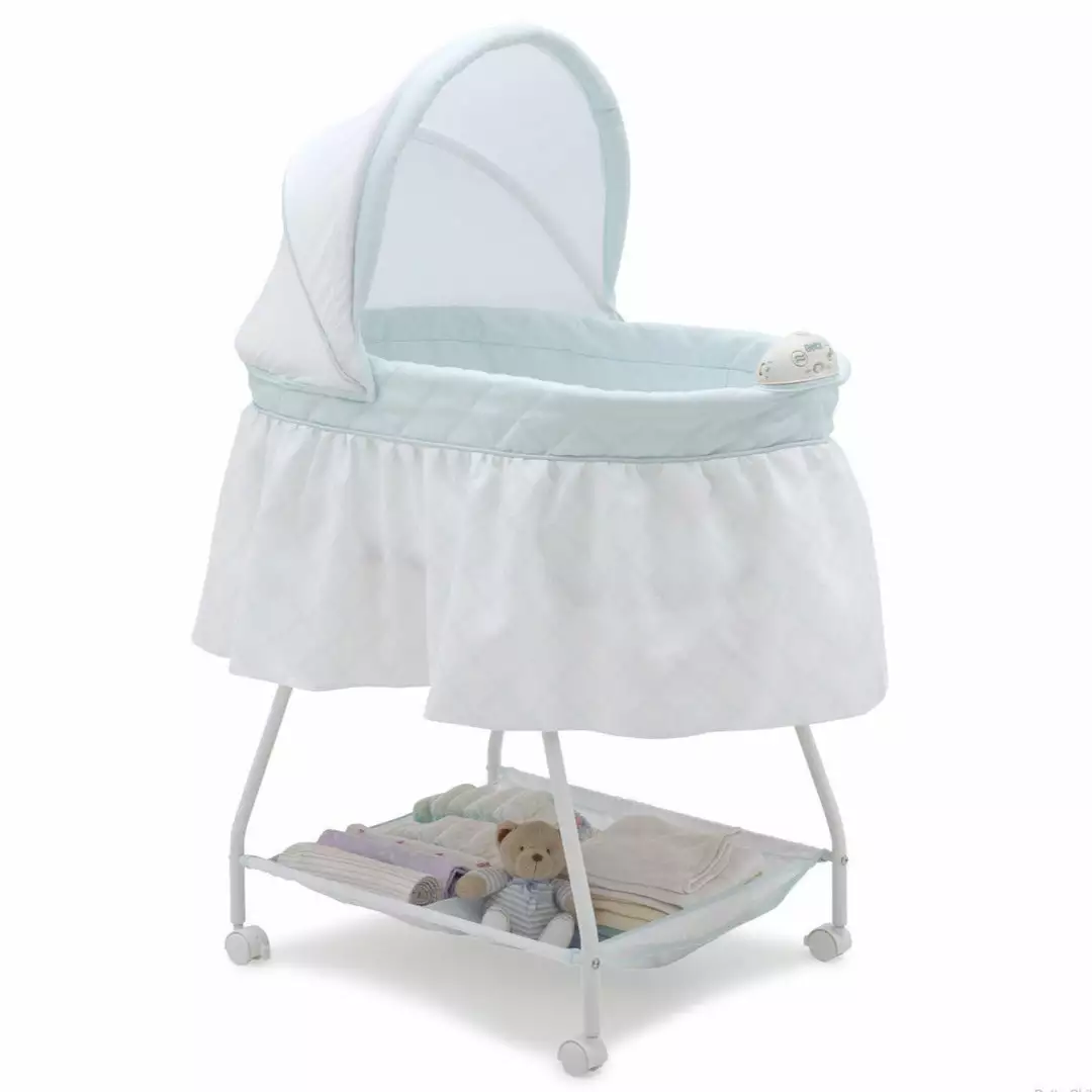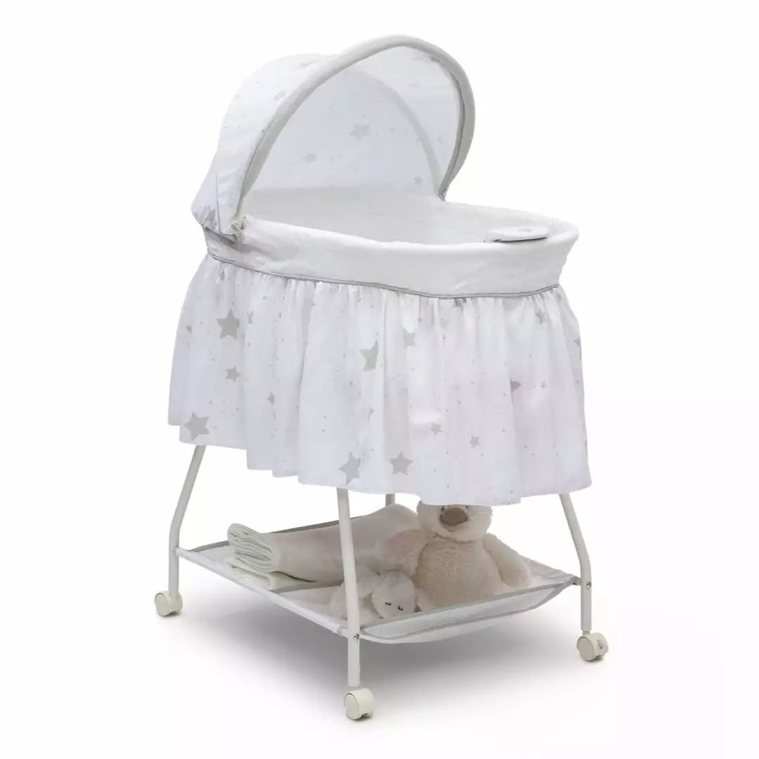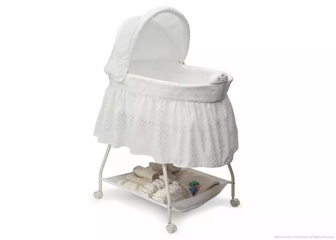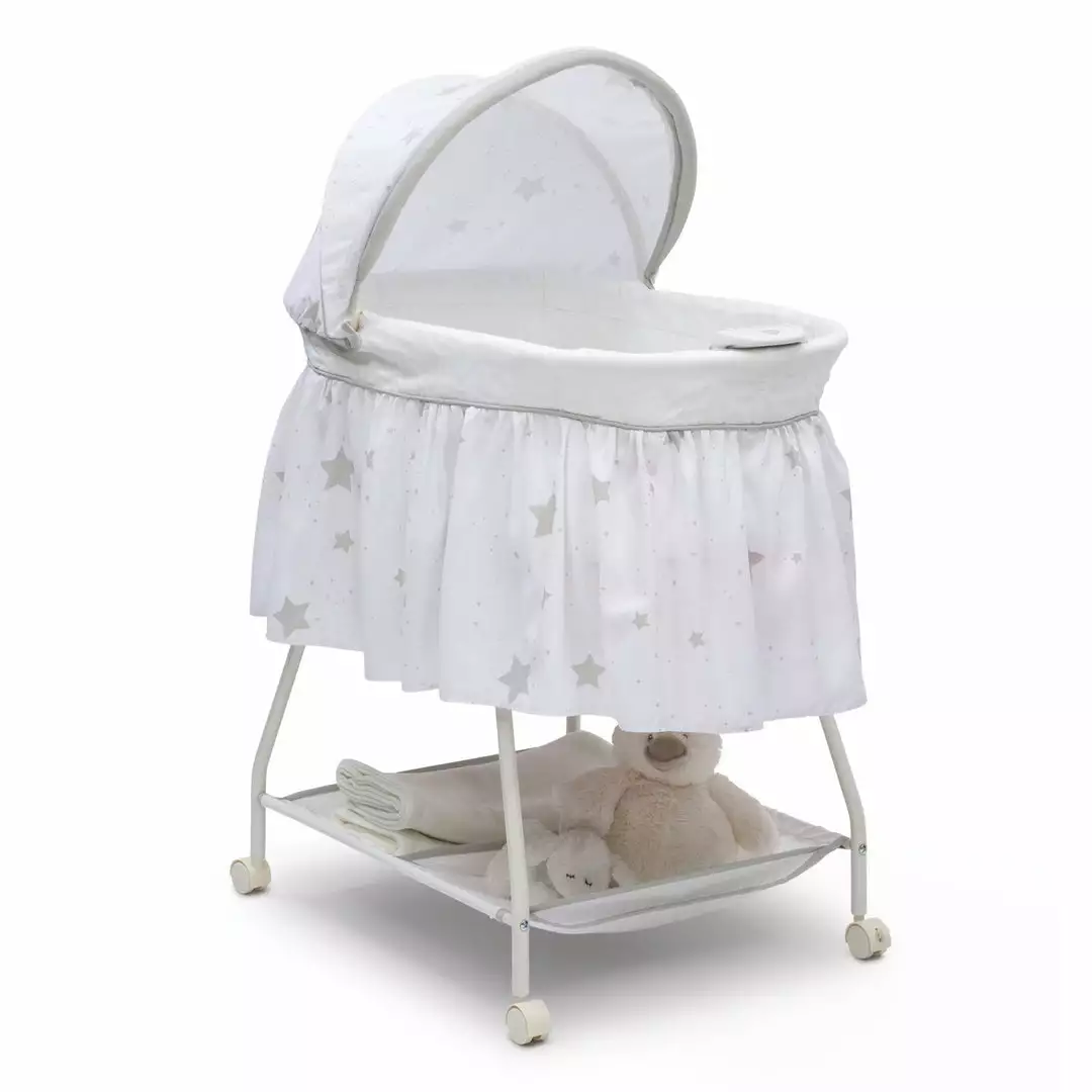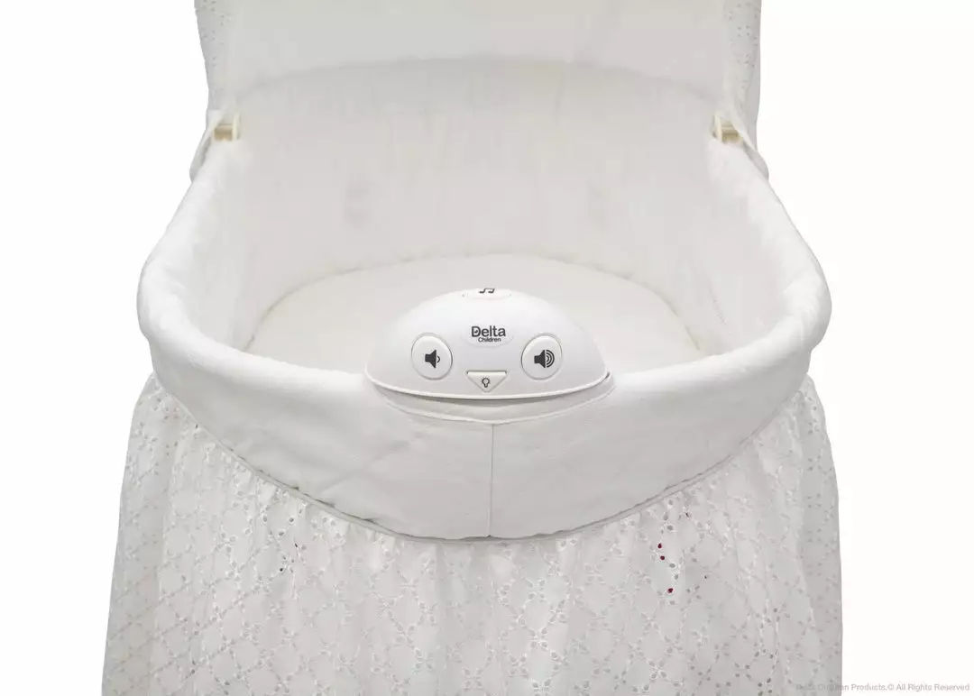 - LIGHTS AND SOUNDS: Features a calming nightlight and soothing music | Baby bassinet requires 4 AA batteries (not included)