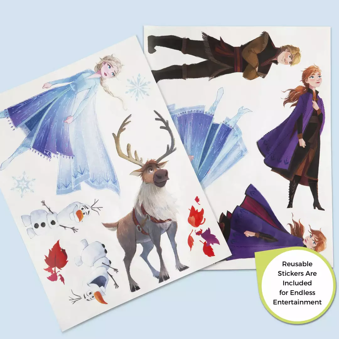 Create a space as enchanting as Arendelle with this Frozen II 4-Piece Playroom Solution by Delta Children! A versatile set that provides both seating and storage, it includes a wooden play table with 2 chairs and a 6-bin toy organizer. The wooden play table and 2 chairs are the perfect kid-size height and feature bold Frozen graphics. The 6-Bin Toy Organizer features a sturdy wooden frame that holds six fabric bins sized for every type of toy, so you can store books, blocks, and more. The toy bin also comes with reusable vinyl cling stickers that allow your child to decorate the sides themselves. Built from sturdy materials, these pieces will standup to years of playtime.