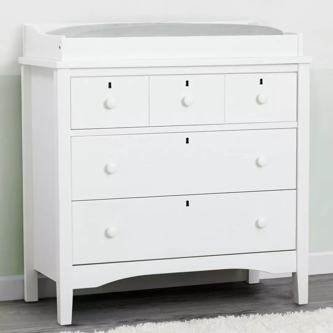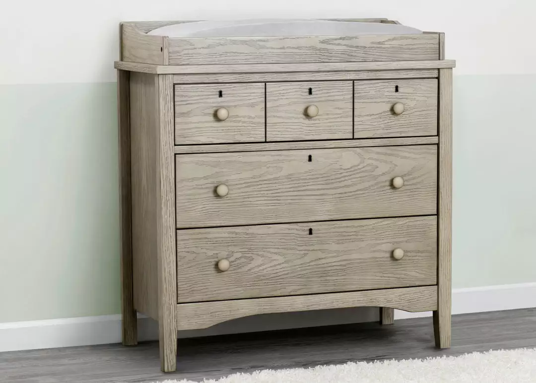Our Farmhouse 3 Drawer Dresser with Changing Top is a great option for your babyâs rustic-inspired nursery or kidâs bedroom. It features large drawers that provide ample storage space, and it comes with an included changing top that converts the dresser into a convenient changing table. When your child no longer needs a changing table, just remove the topper to reveal a more adult storage piece.