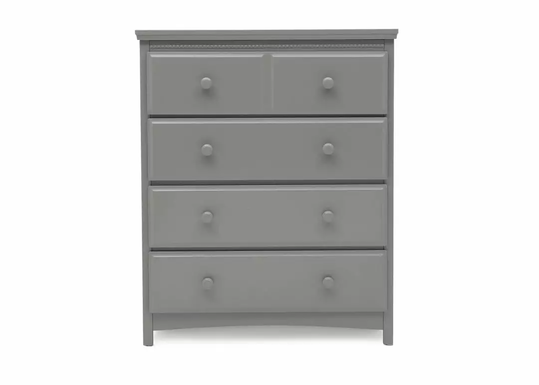 Classic styling and pearl detailing give the Emerson 4 Drawer Chest by Delta Children a timeless quality. Equipped with four sliding drawers that feature safety stops to prevent the drawers from falling out, this tall dresser offers a wealth of storage space. Its beautiful finish will never go out of style, while its sturdy wood construction makes it as durable as it is attractive. Round drawer pulls provide a charming finishing touch. A great piece for the nursery, your kid’s bedroom or your master bedroom, the Emerson is the smart choice for storage in any space. The Emerson 4 Drawer Chest is part of the Emerson Nursery Collection. Pair with the Emerson 4-in-1 Convertible Crib for a coordinated look. Coordinating collection pieces each sold separately.