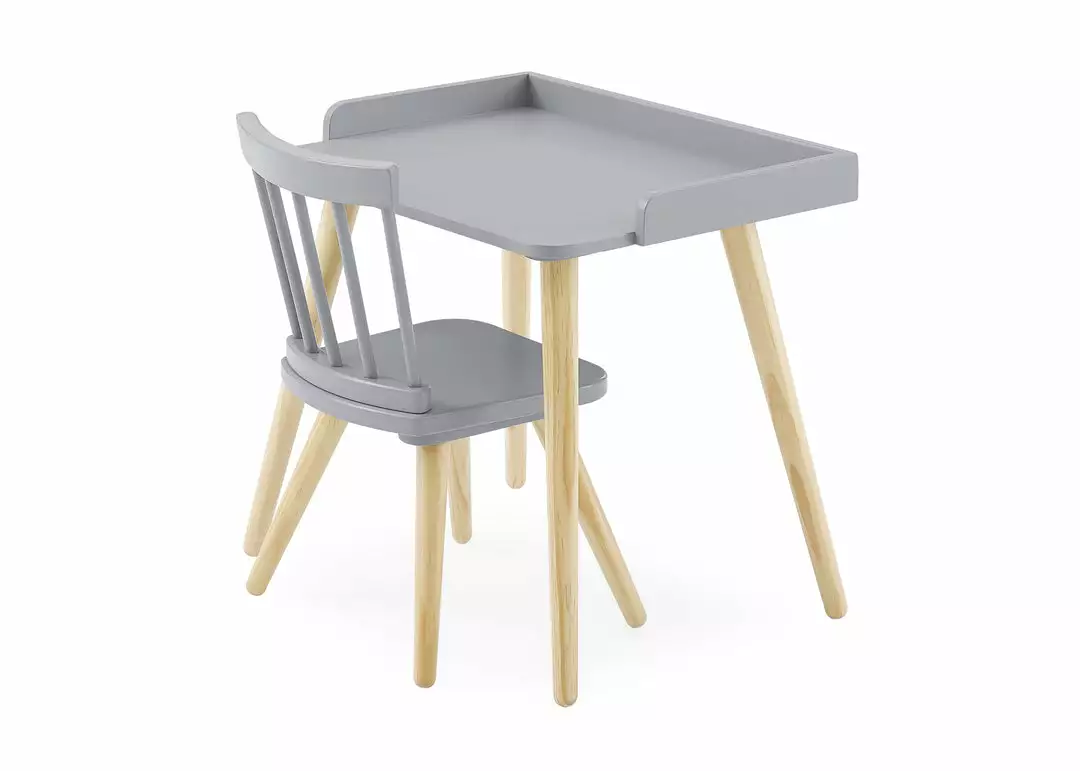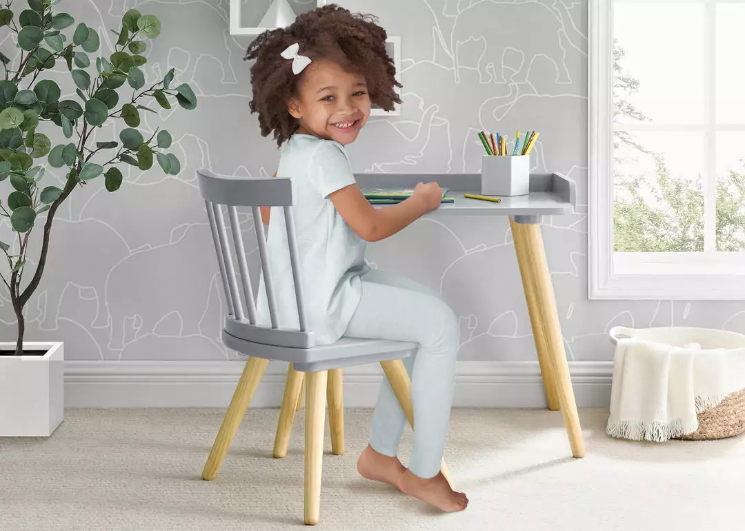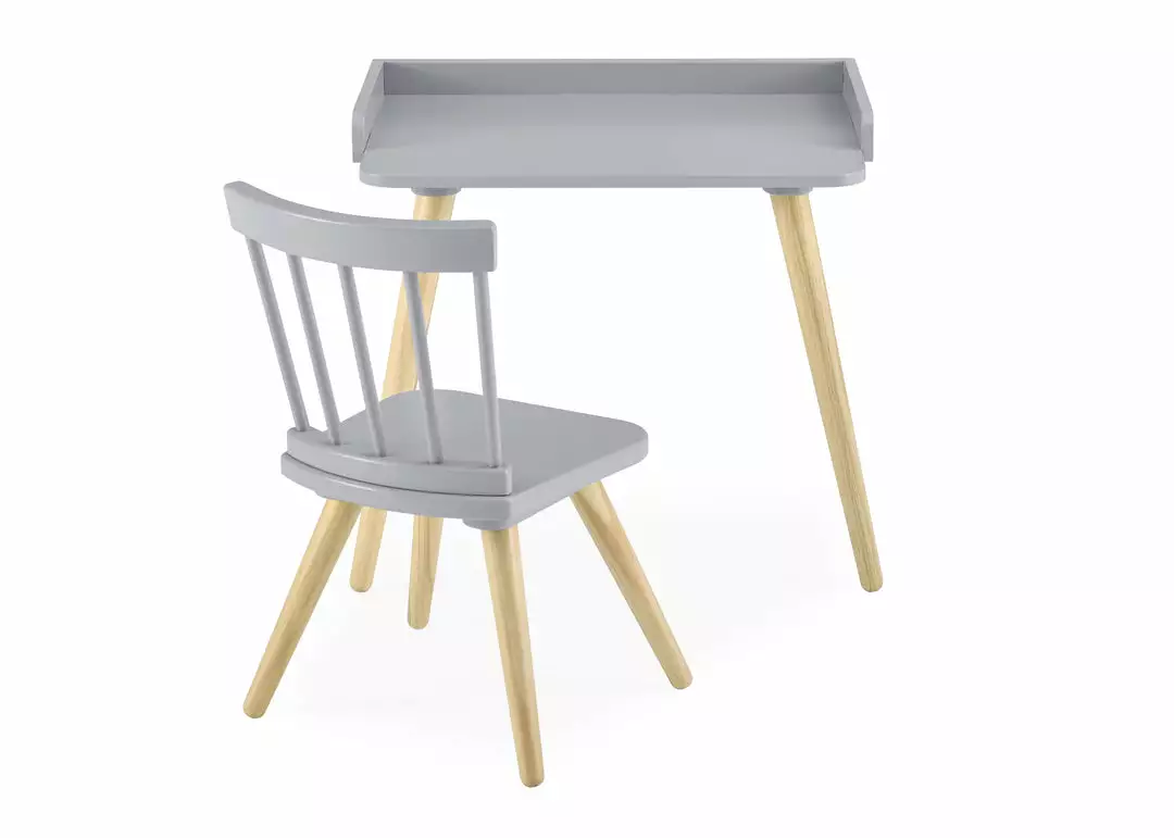 Give your child a stylish spot to draw, read or do homework with the Essex Desk & Chair Set by Delta Children. This mid-century modern desk with a solid-colored top and natural-colored tapered legs is a sleek, space-saving option that covers all the bases. The spacious desktop provides enough surface area for all their essentials, plus it comes with a coordinating chair. Desk is recommended for children ages 4 and up.