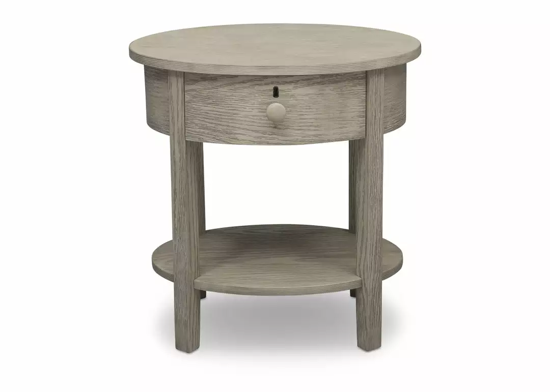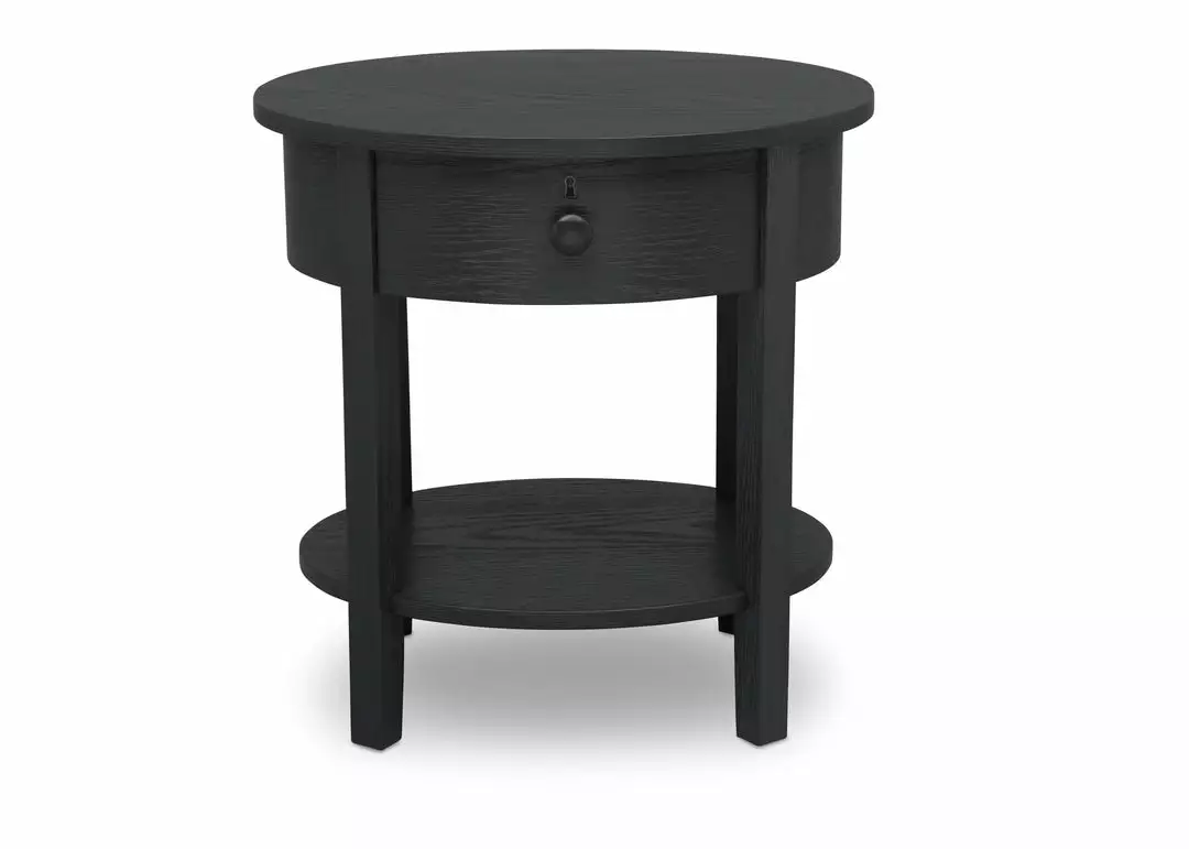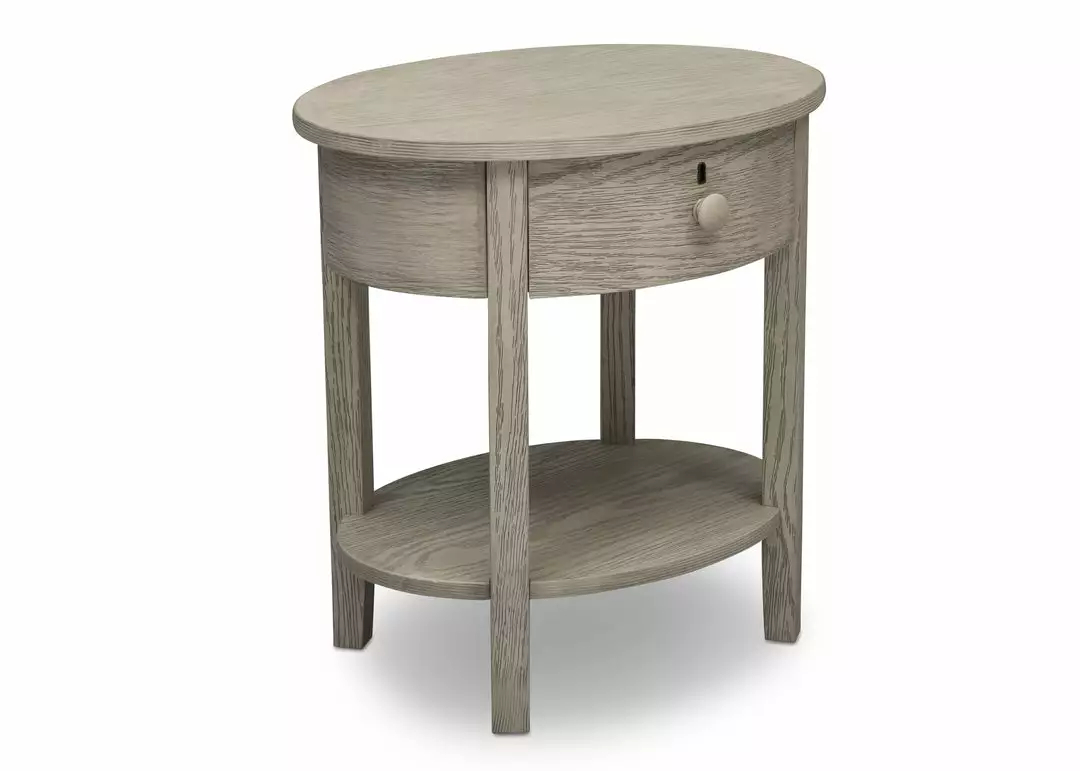 Designed with a playful oval silhouette and textured finish, the Farmhouse Nightstand will stay in style as your child grows. Both open and closed storage creates a functional display space for essentials, while tapered legs and keyhole detailing complete the look.