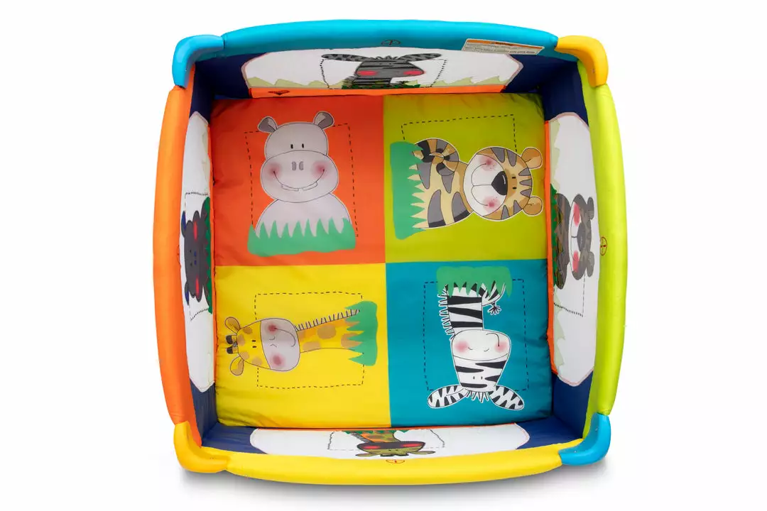 Playtime can take place anytime, anywhere, with this fuss free play yard. Featuring a compact fold and travel bag, it quickly offers baby plenty of space to play or nap while its printed mesh sides entice imaginative play and provide parents with a clear view.