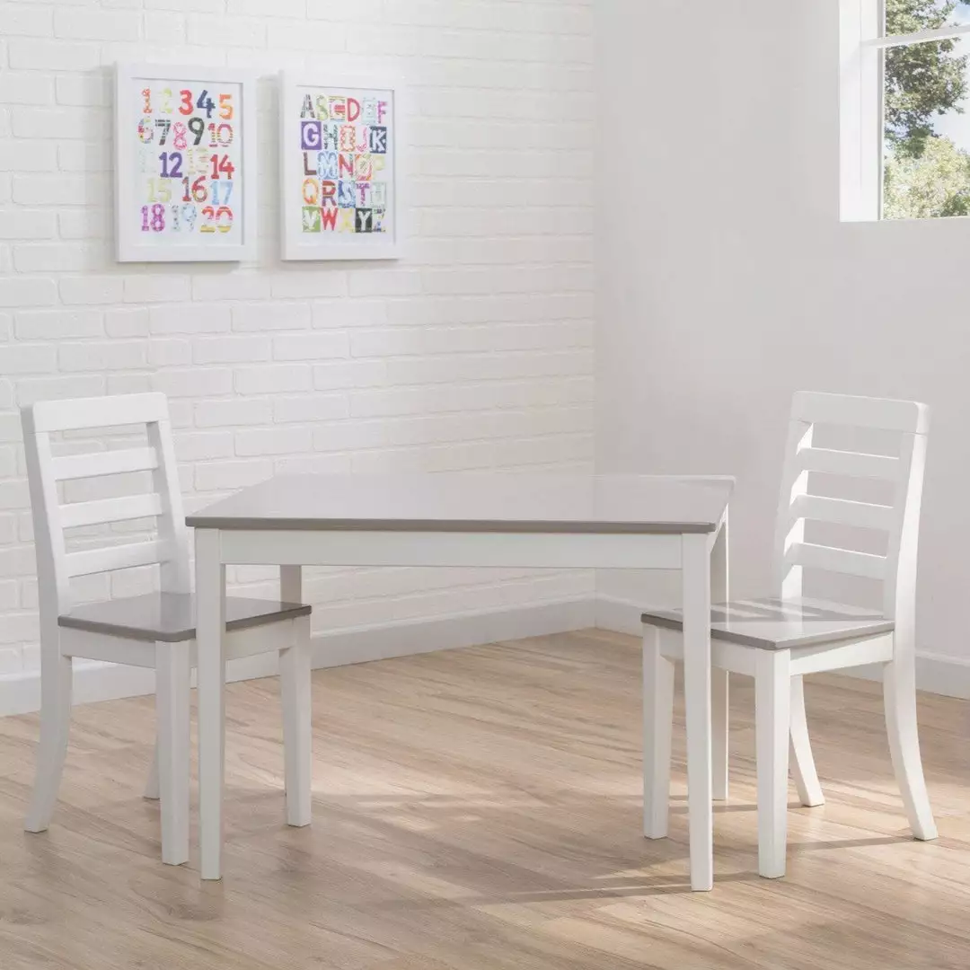 Stylish and simple yet wildly playful, the Gateway Kids Table & 2 Chair Set from Delta Children is the perfect spot for kids to get creative. Boasting a durable finish and clean lines, this wooden play table features a spacious rectangle tabletop and two coordinating chairs at just the right height for young children.