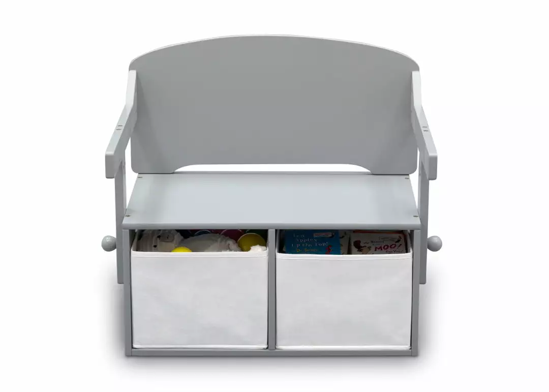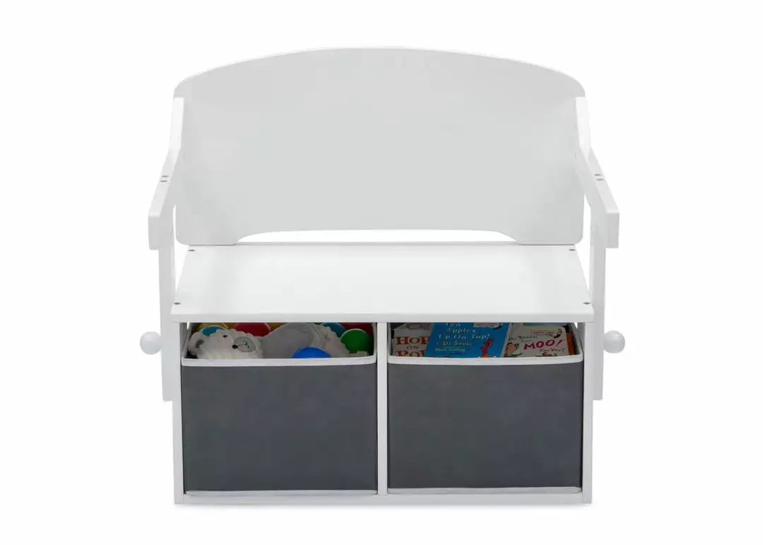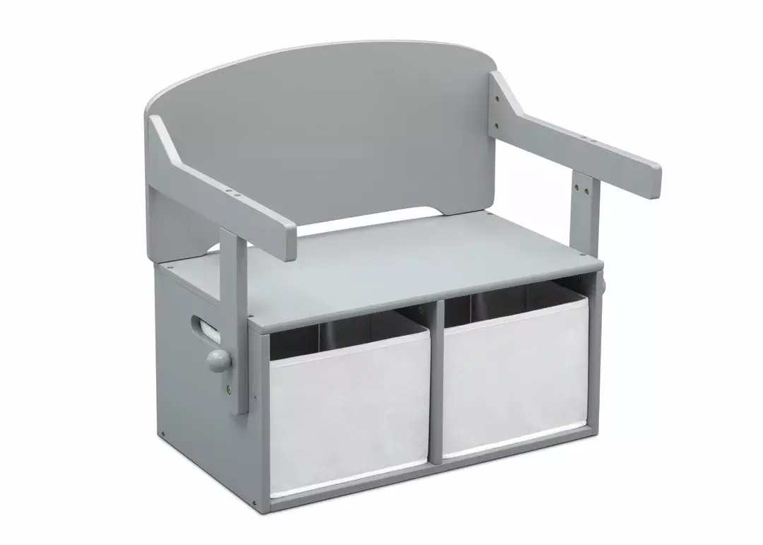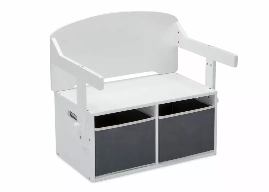 A perfect choice for your growing child, the MySize Kids Activity Bench features an innovative, 3-in-1 design that easily converts from a bench with storage, to a desk, in seconds. Perfectly sized just for them, this versatile activity bench offers kids a multipurpose work station for playtime, homework, crafts, and more. Plus, the clever construction also boasts ample storage with two fabric bins under the seat, ideal for keeping, books, toys or art supplies. Constructed from sturdy wood, this kids’ activity desk will stand up to years of learning and creative play. Available in a number of stylish color options, the MySize Activity Bench coordinates with other items from the MySize Collection from Delta Children.