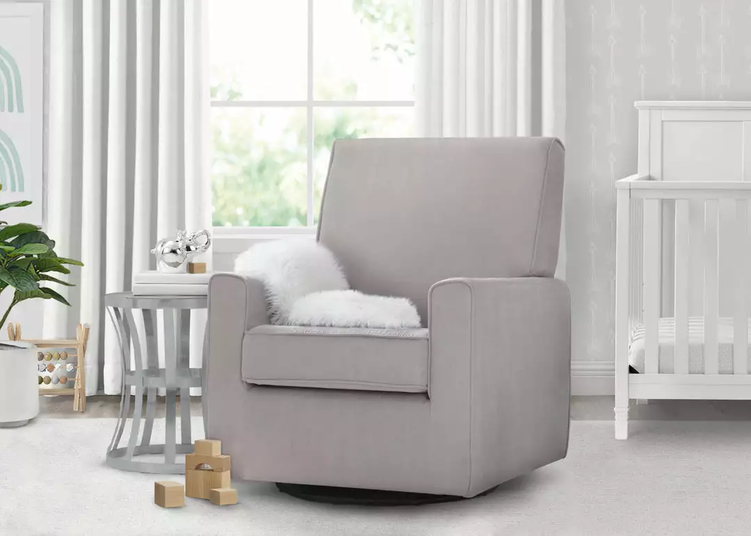 The Ava Glider goes beyond classic good looks. It starts with a sturdy wood frame along with a hidden gliding and swivel mechanism, and is finished with a super-soft cushion, sleek silhouette and microfiber fabric that stands up to stains. A cozy place to spend time with your baby, its beauty lasts a lifetime, effortlessly moving from the nursery to living room, or anywhere else you need a soft place to land.