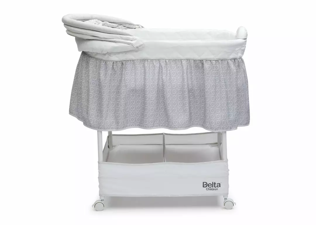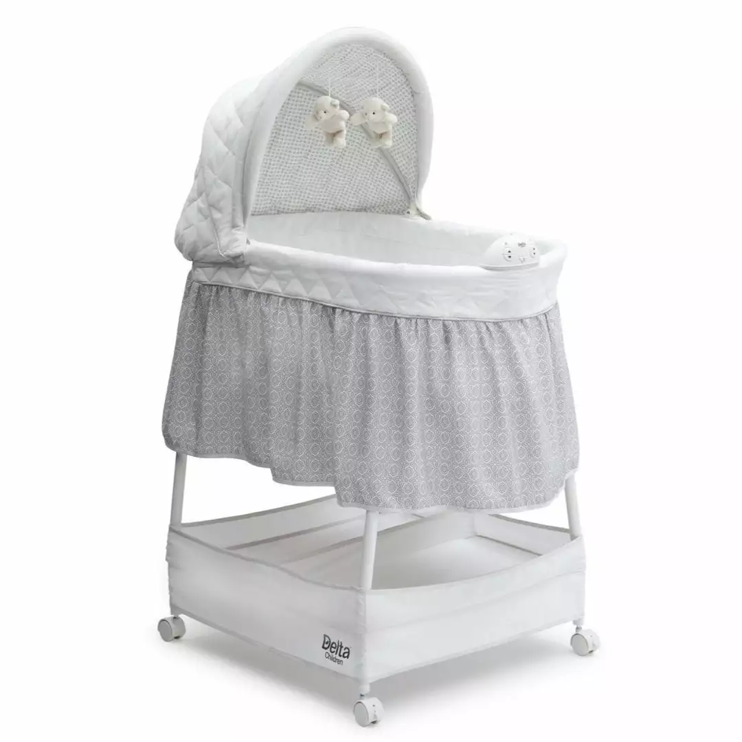 Make bringing home baby even more special with Delta Children’s Gliding Bassinet! Designed with a gliding base, it also features an electronic music module that plays soothing lullabies. Plus, it features a nightlight and gentle vibration, making bedtime a better experience for babies and parents.