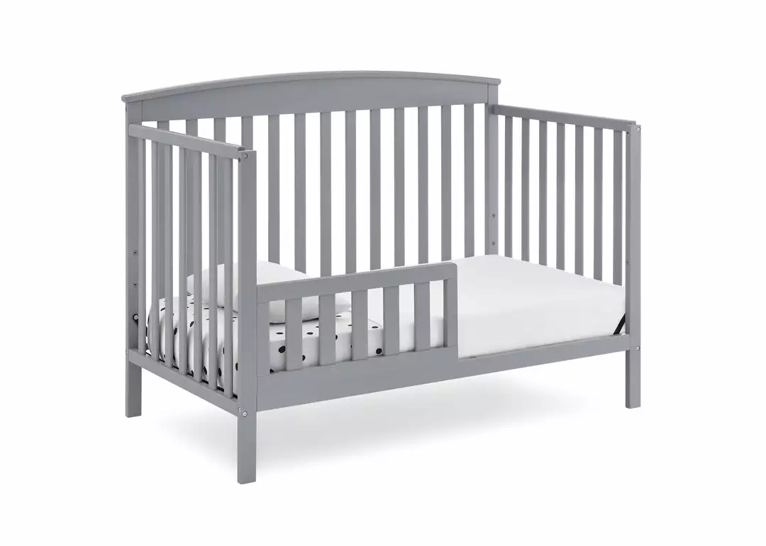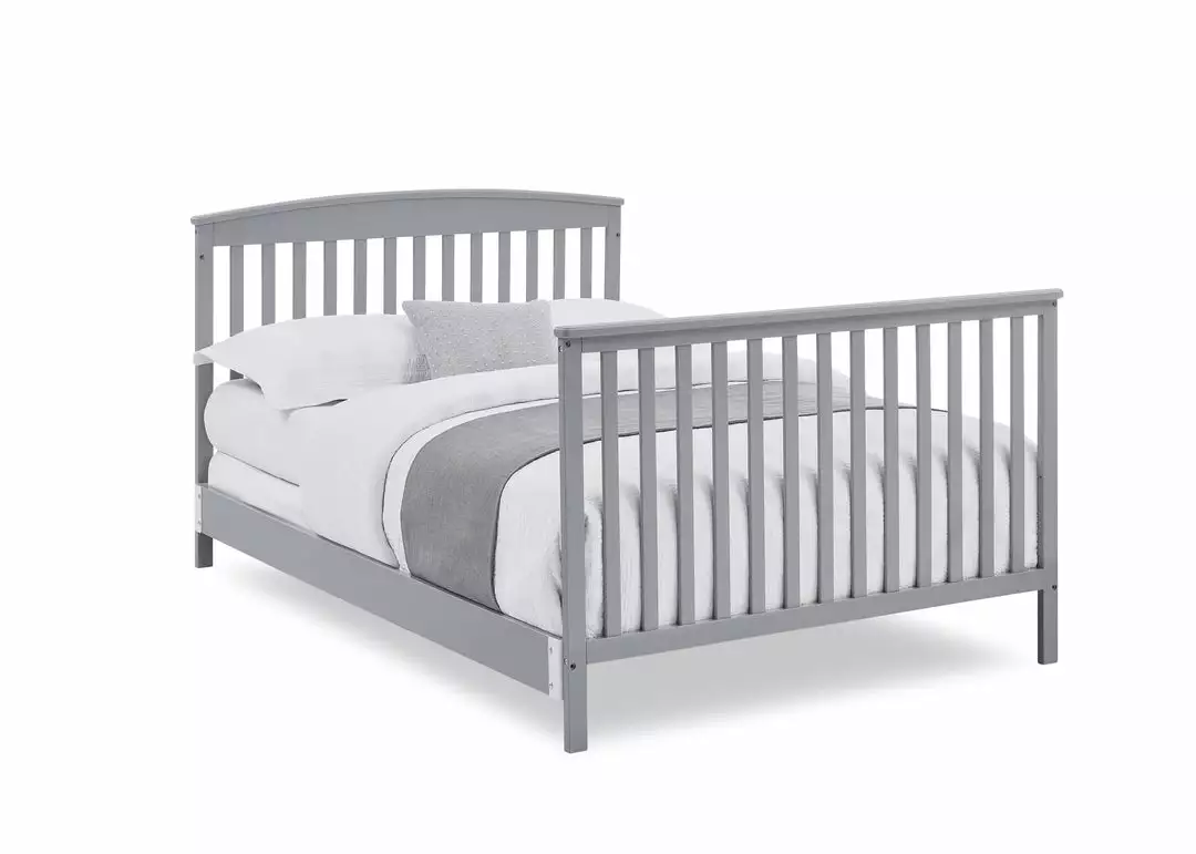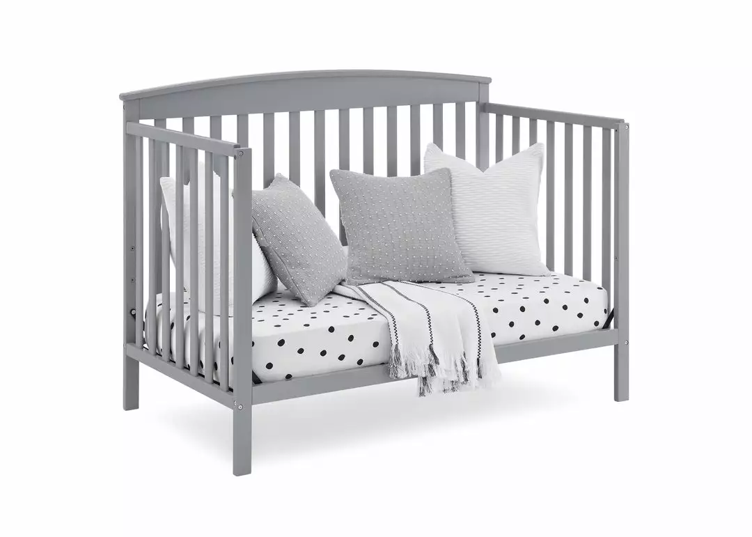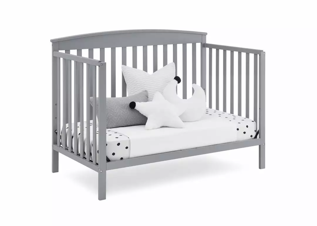 With a sturdy, built-to-last wood construction and slightly arched headboard, the Hanover 6-in-1 Convertible Baby Crib by Delta Children is a timeless choice for your little one’s nursery. Designed for many years of use, it easily converts from a crib to a toddler bed, daybed, sofa and full-size bed with or without footboard (conversion rails sold separately). Its adjustable mattress height with three positions makes it easy and safe to get baby in and out as they grow—start at the highest height level for newborns and lower as your child gets bigger. Available in Grey, Bianca White or Walnut Espresso, the Hanover 6-in-1 Convertible Crib by Delta Children coordinates with other items from Delta Children in the same finishes.