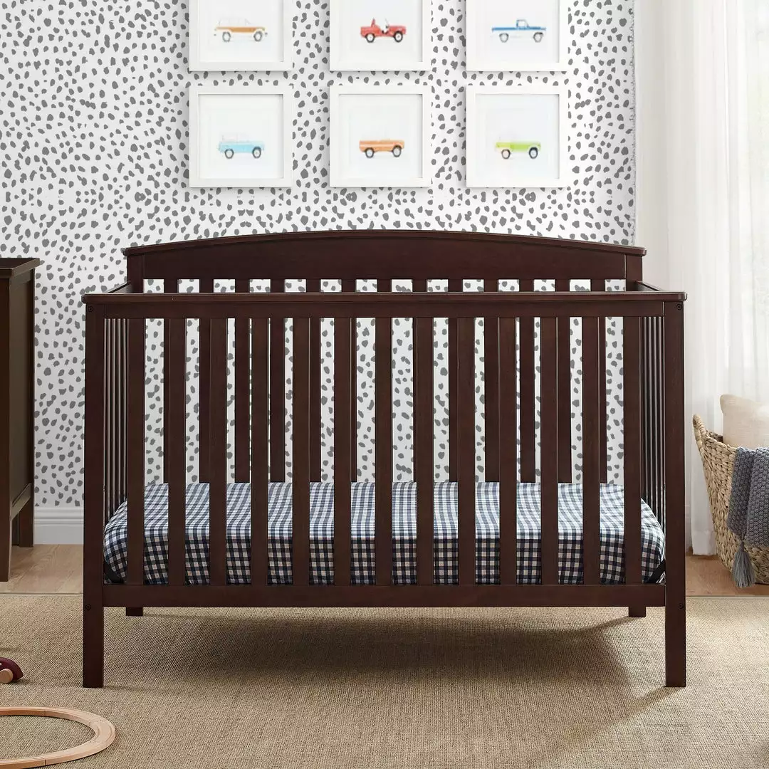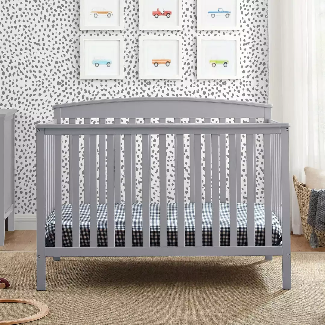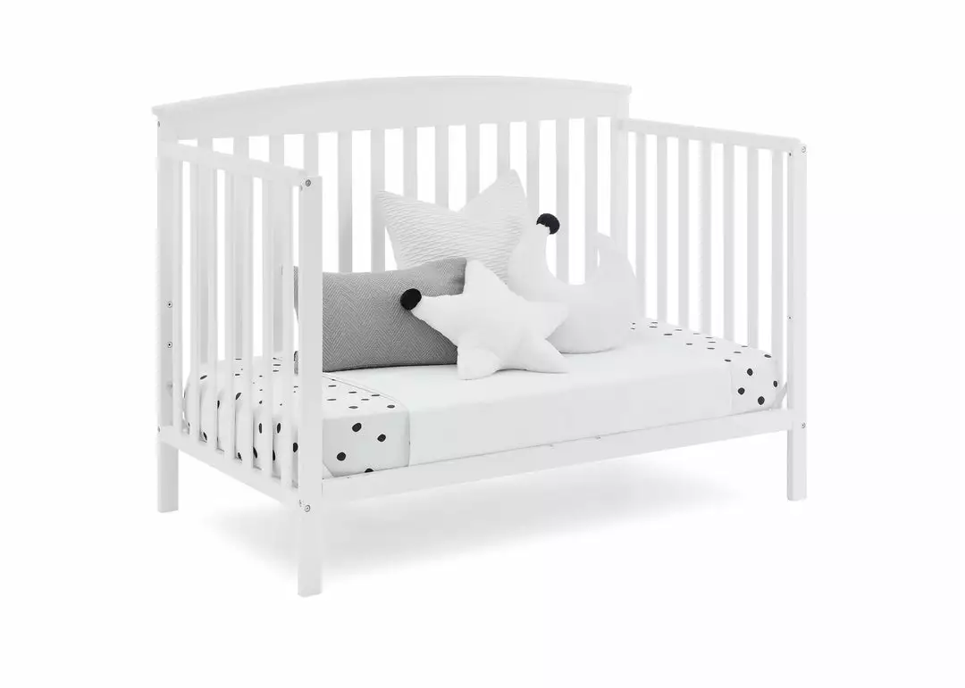 With a sturdy, built-to-last wood construction and slightly arched headboard, the Hanover 6-in-1 Convertible Baby Crib by Delta Children is a timeless choice for your little one’s nursery. Designed for many years of use, it easily converts from a crib to a toddler bed, daybed, sofa and full-size bed with or without footboard (conversion rails sold separately). Its adjustable mattress height with three positions makes it easy and safe to get baby in and out as they grow—start at the highest height level for newborns and lower as your child gets bigger. Available in Grey, Bianca White or Walnut Espresso, the Hanover 6-in-1 Convertible Crib by Delta Children coordinates with other items from Delta Children in the same finishes.