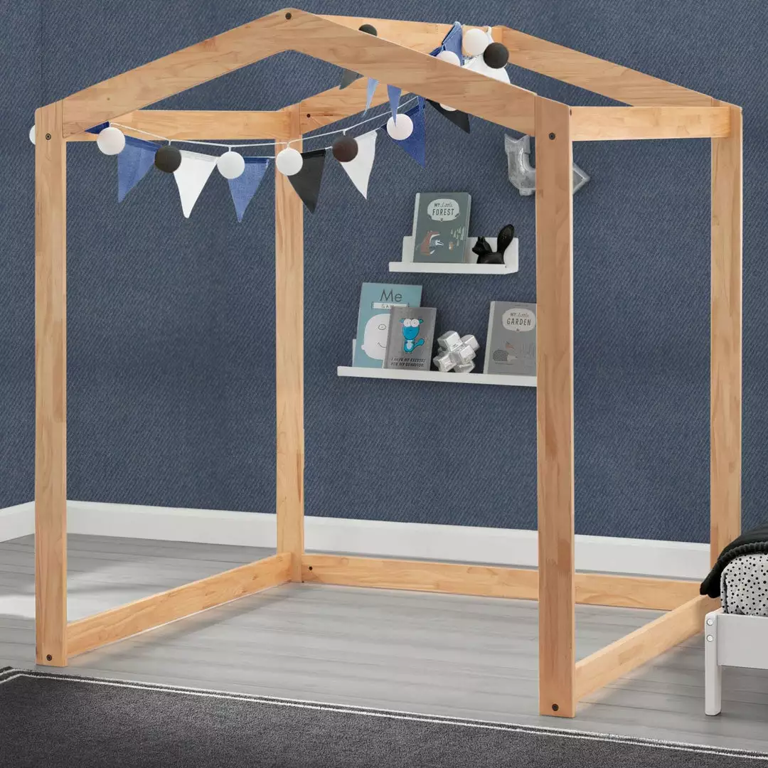 Youâll never be house poor with the Homestead Playhouseâa magical place to play or read, itâs designed to enrich imaginations. Roomy enough for multiple children, this large wood playhouse stands over 4 feet tall, and its sturdy construction ensures years of creative play!