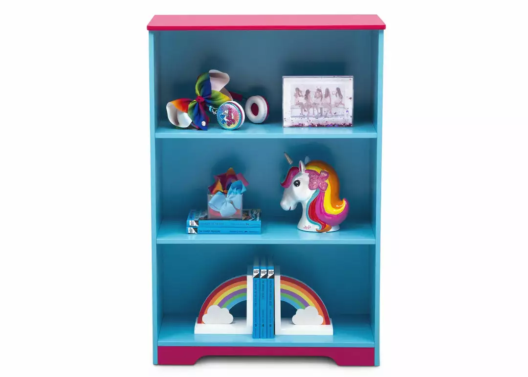 Your kiddo will love incorporating this JoJo Siwa Deluxe 3-Shelf Bookcase by Delta Children into her space. The three spacious shelves are at the perfect height level to allow kids to easily store books, photos and toys. Colorful artwork of JoJo, unicorns and JoJoâs signature bows packs super-cool style that will encourage little Siwanatorz to cleanup in record time. Built from sturdy wood, this durable bookcase will be able to withstand years of use, and is perfect as storage in the bedroom, playroom, living area–pretty much anywhere.
