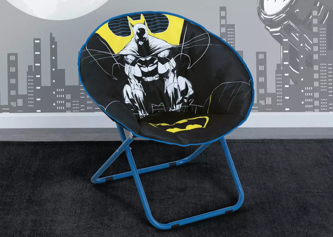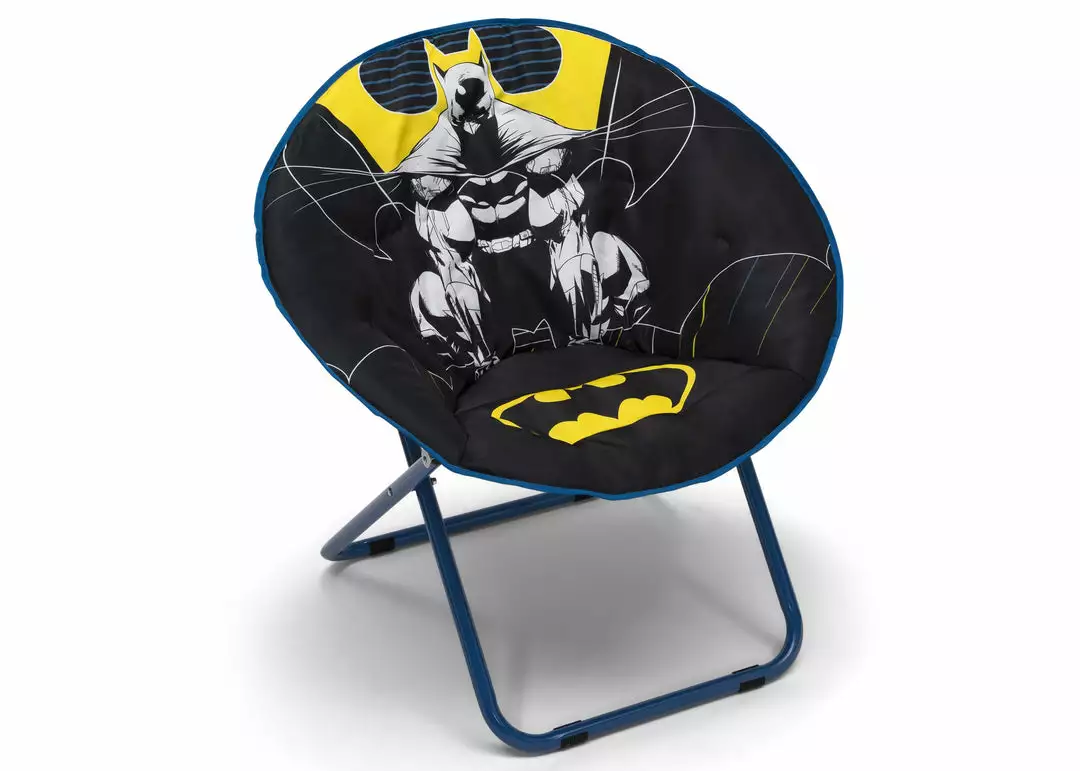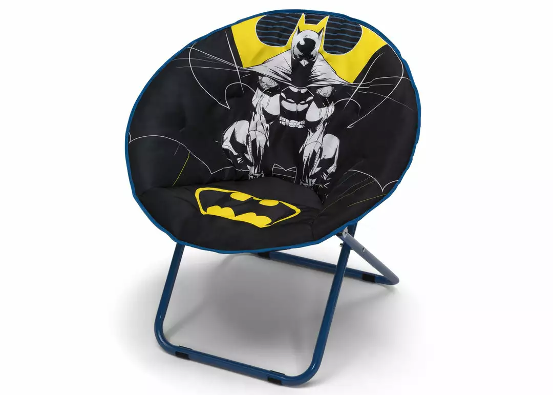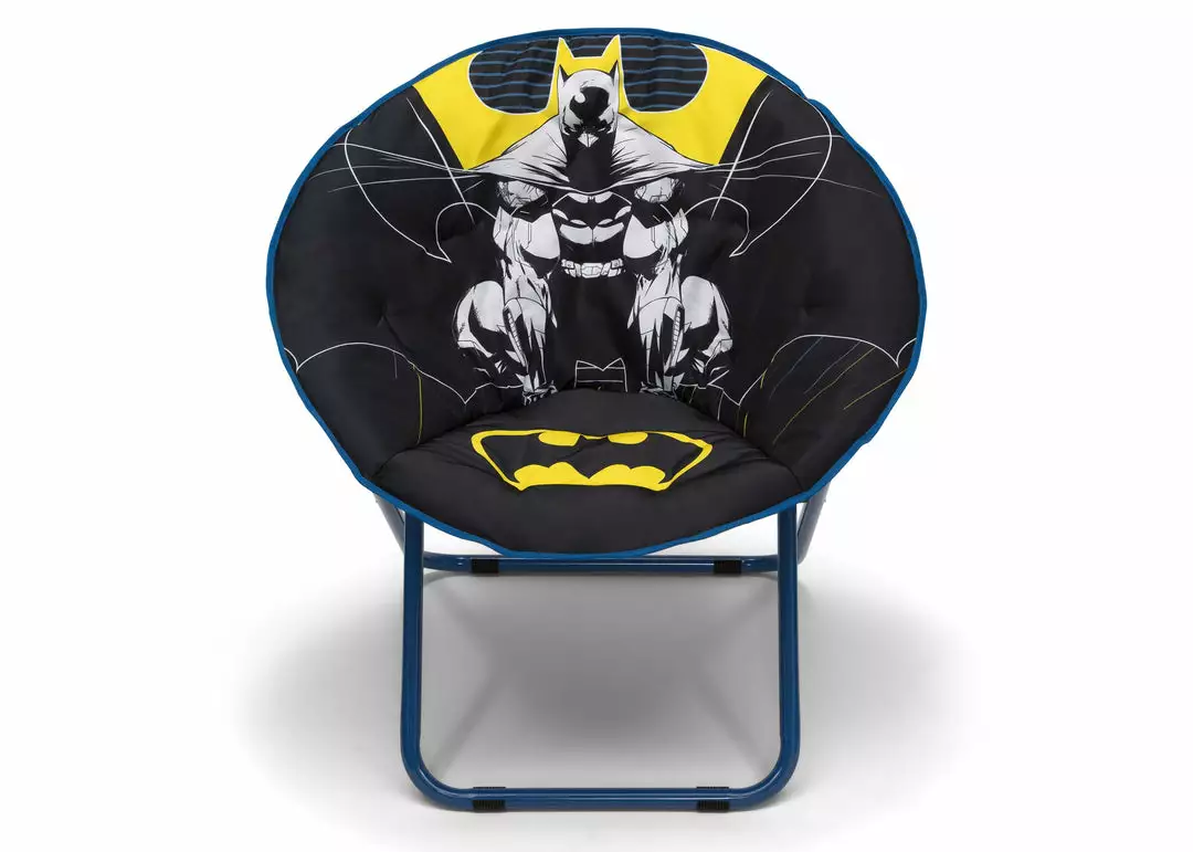 This Batman Saucer Chair by Delta Children features bold graphics fit for any Bat Cave, and is perfect for watching movies, lounging or studying in! Crafted with foldable metal legs and comfy fabric cushion packed with plush fill, this chair will be the most sought-after seat in the house! When not in use, the chair’s metal frame easily folds flat for space-saving storage and transport for your convenience. Comes ready to use with no assembly required.