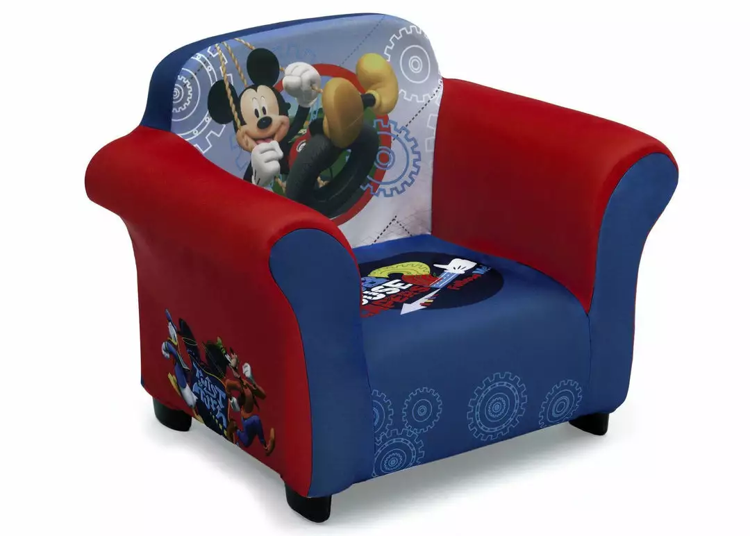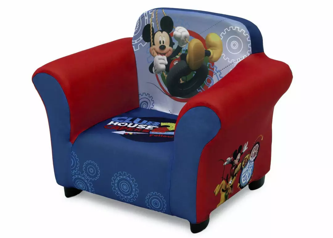 Your little one will have the coolest clubhouse ever with this Mickey Mouse Upholstered Chair from Delta Children. This cozy chair features a durable frame and plush foam padding covered by a removable slipcover. The colorful slipcover with cool graphics of Mickey and friends is machine washable for easy cleanup. The perfect kids-only spot for reading, watching movies or just relaxing, it makes any activity extra special.