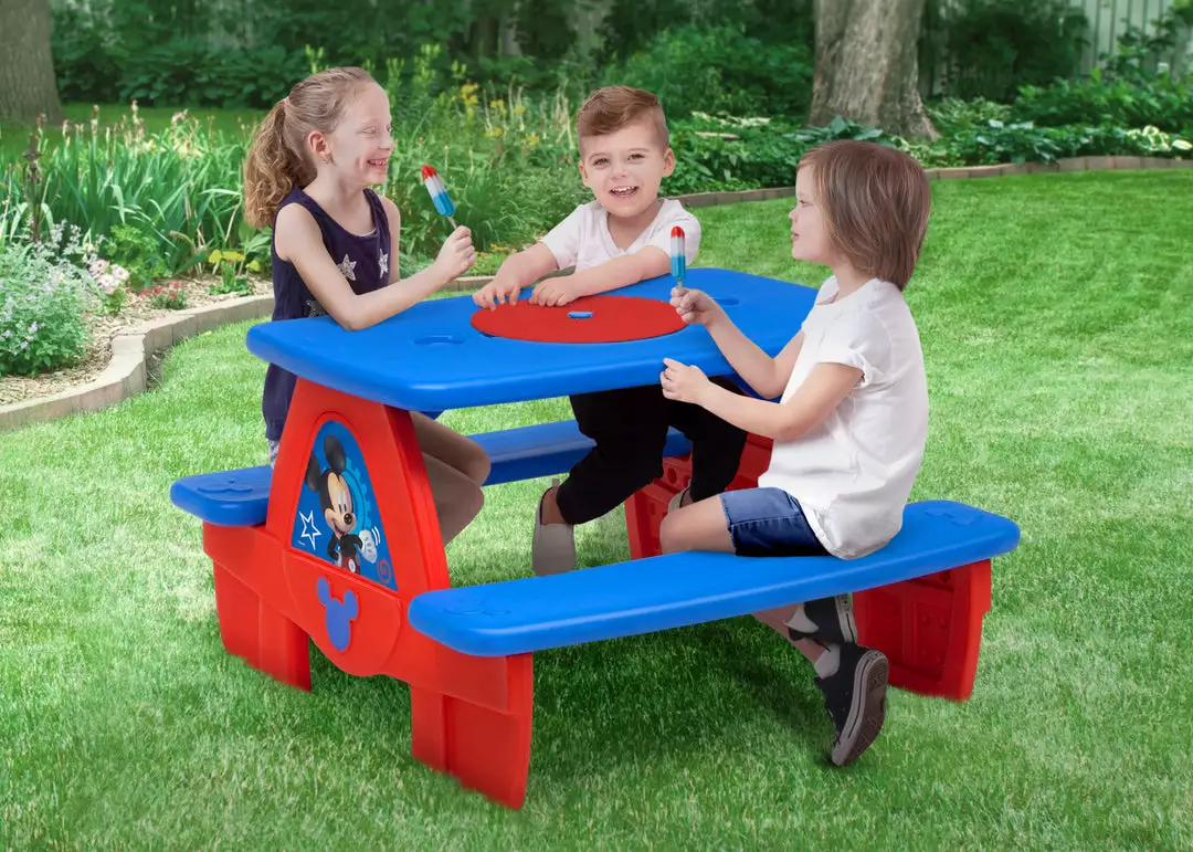 Delta Children Mickey Mouse 4 Seat Activity Picnic Table With LEGO Compatible Tabletop Outdoor