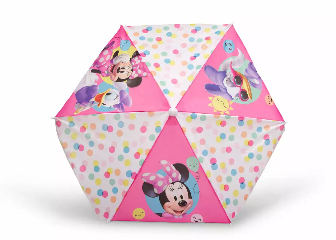 Be prepared for backyard barbecues and playdates with the Disney Minnie Mouse 4 Seat Activity Picnic Table with Umbrella and Lego Compatible Tabletop by Delta Children. Made from weather-resistant plastic, this durable picnic table sits four kids comfortably, and can be used outdoors or indoors for eating, playing, art activities or games–there are so many ways to use this sturdy picnic table! Colorful graphics of Minnie Mouse add playful style and the included umbrella provides much needed shade on sunny days while four built-in cupholders keep drinks securely in place. Designed to boast and encourage your child’s imagination the table also features a removable building block board that is compatible with LEGO blocks (LEGO blocks not included). Easy to assemble, the table snaps together in minutes, so you’ll be ready for fun in no time!