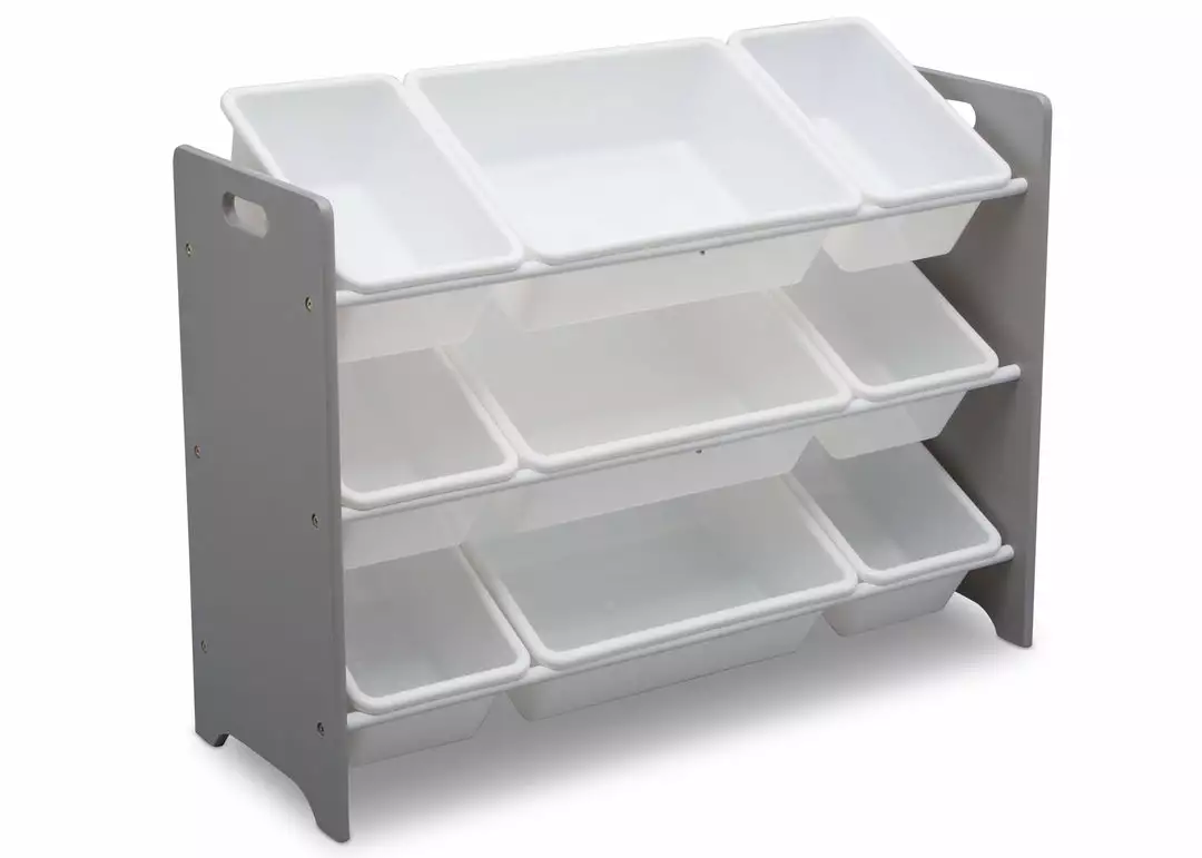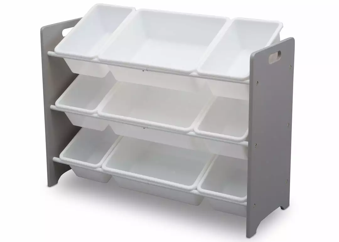 When playtime is done, the cleanup begins, and the MySize 9 Bin Plastic Toy Organizer from Delta Children makes it easier than ever to tidy up. Featuring nine (9) plastic storage bins in varying sizes, this toy organizer for kids is more versatile than traditional toy boxes, since kids can clearly view and select their favorite toys. The frame of this toy organizer is constructed from sturdy wood to ensure durability and encourage years of creative play. Available in a number of beautiful colors. Coordinates with other items in the MySize Collection from Delta Children.