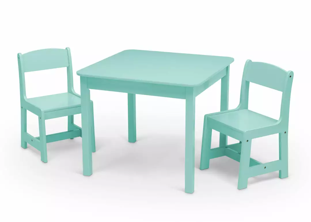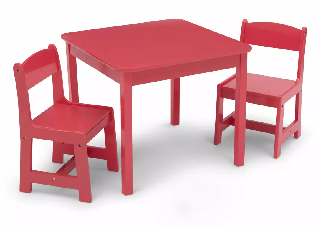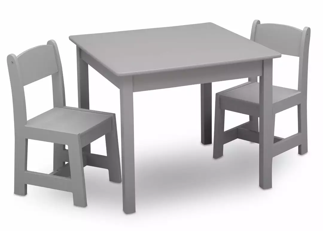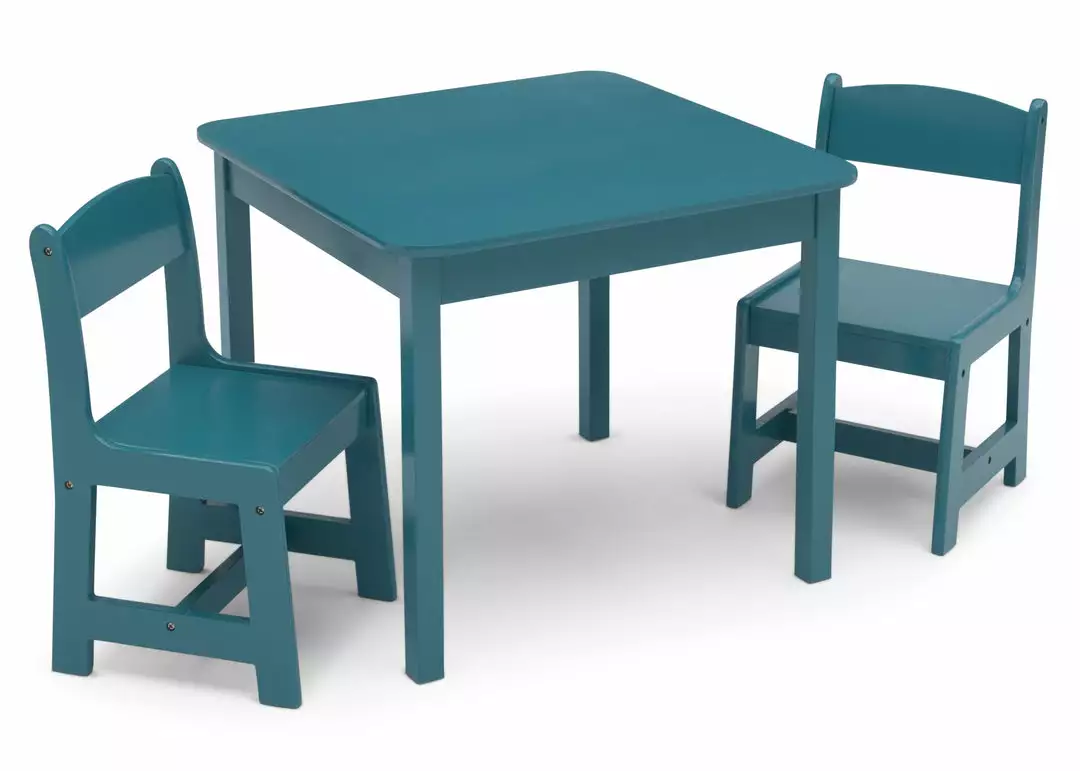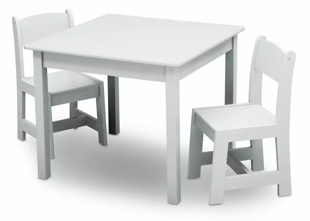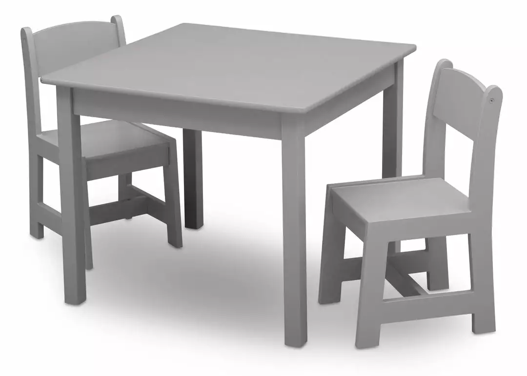 The perfect foundation for fun and learning, the MySize Table & 2 chairs Set BY Delta Children features a smooth, wood top that make it extremely durable and easy to clean. Whether your child uses it for art projects, tea parties, snack time or homework, this kids play table and chair set will enhance their sense of wonder no matter what activity they use it for. Sized just right for your growing child, The MySize Table & 2 Chairs Set will provide years of creative fun. The table’s beautiful finish will complement existing bedroom, playroom or living room decor, easily allowing you to create a space that works for kids and adults alike. Available in a number of beautiful colors. Coordinates with other items in the MySize Collection from Delta Children.
