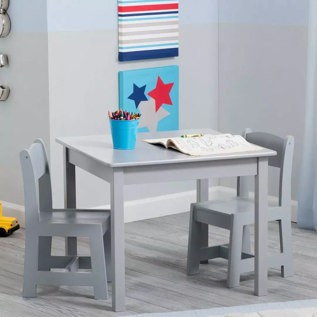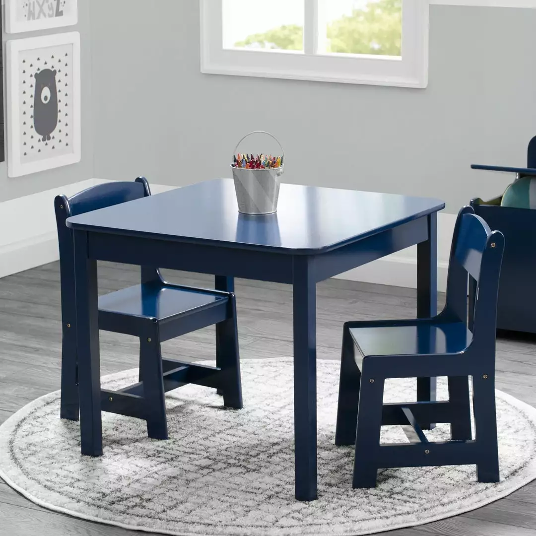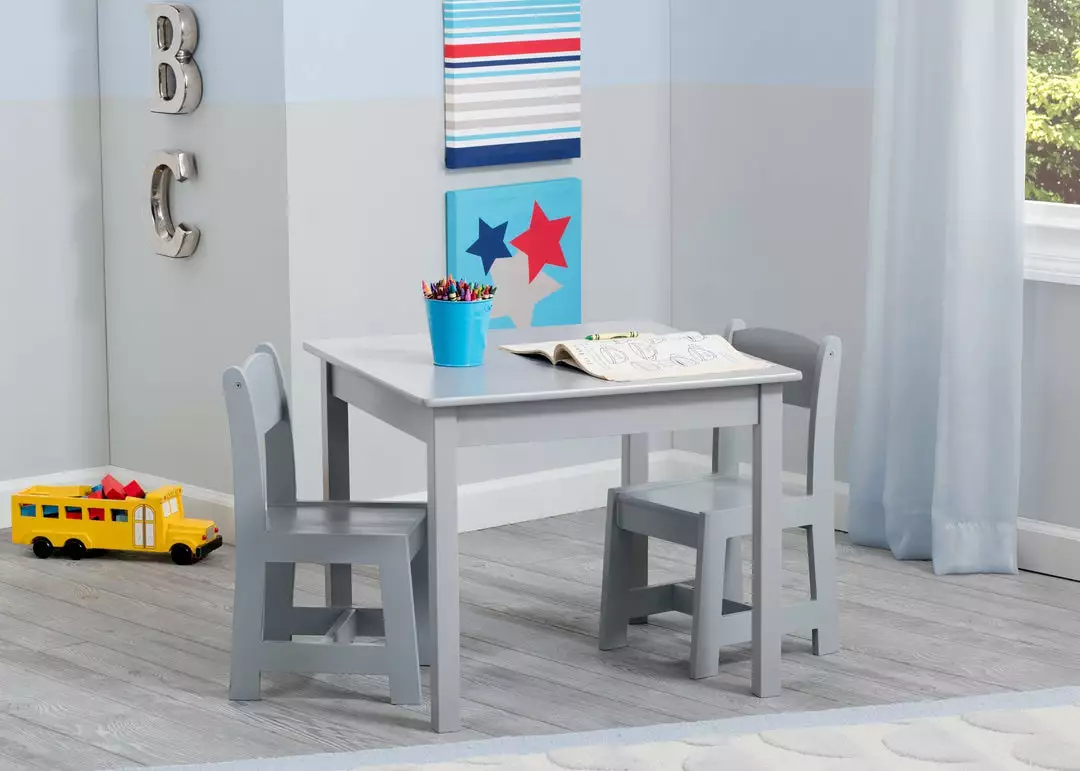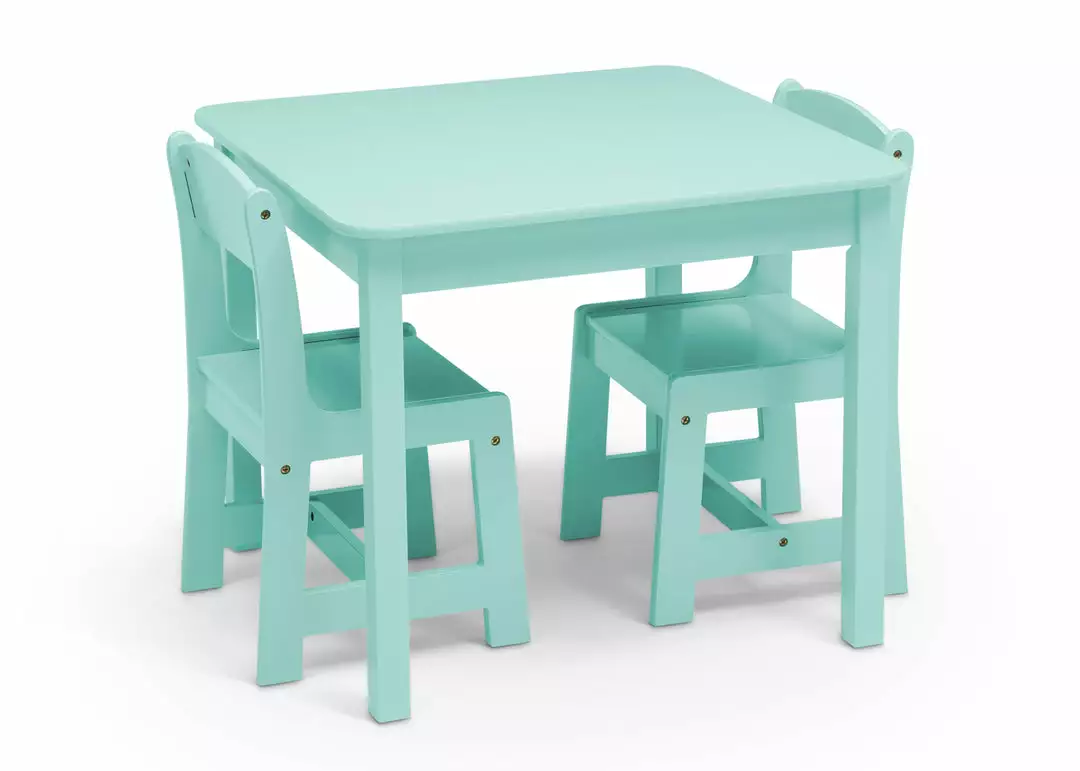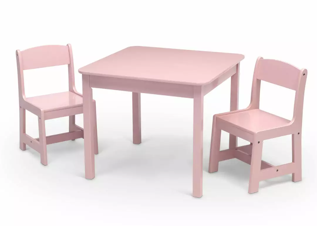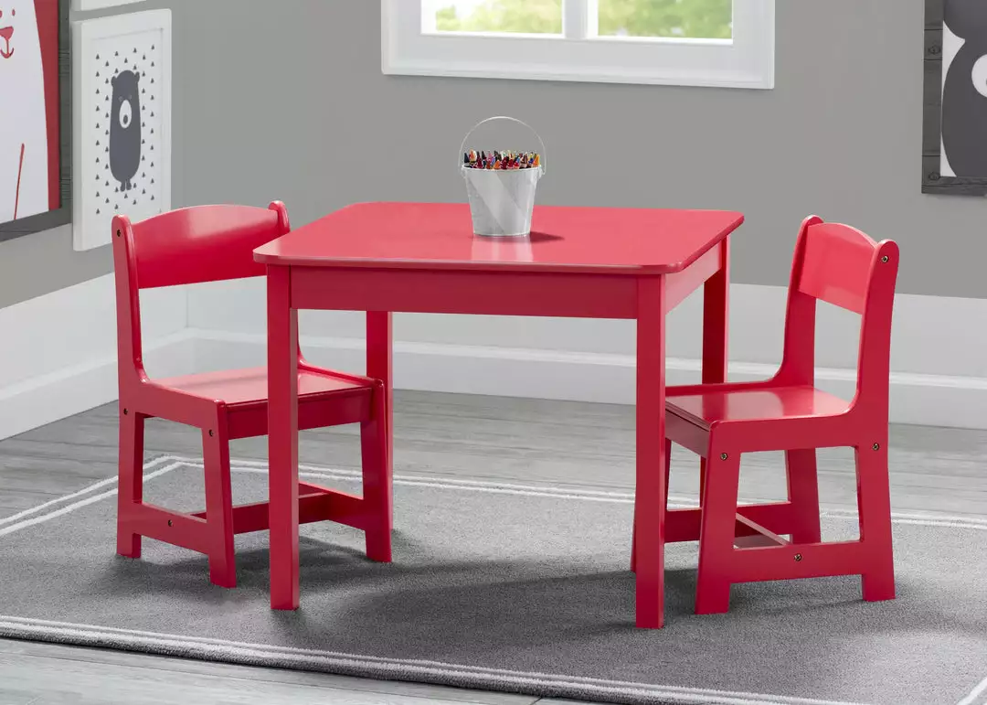 The perfect foundation for fun and learning, the MySize Table & 2 chairs Set BY Delta Children features a smooth, wood top that make it extremely durable and easy to clean. Whether your child uses it for art projects, tea parties, snack time or homework, this kids play table and chair set will enhance their sense of wonder no matter what activity they use it for. Sized just right for your growing child, The MySize Table & 2 Chairs Set will provide years of creative fun. The table’s beautiful finish will complement existing bedroom, playroom or living room decor, easily allowing you to create a space that works for kids and adults alike. Available in a number of beautiful colors. Coordinates with other items in the MySize Collection from Delta Children.