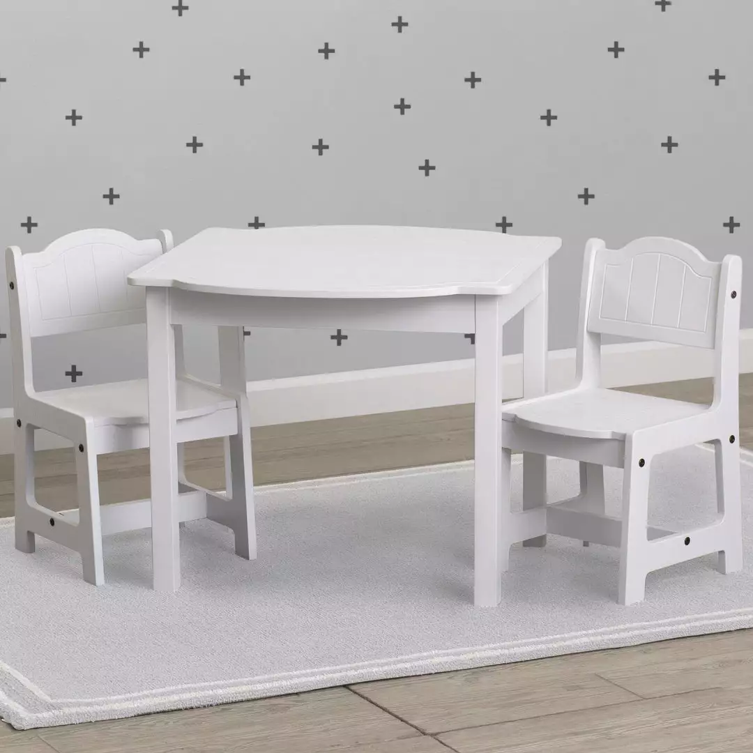 Create an inspiring place for young kids to play, learn or eat with the Newport Table and 2 Chair Set by Delta Children. Sized just right for your growing child, it will provide years of creative fun. The classic, elegant look of this wood table and chair set is inspired by costal charm with its gentle curves and shiplap-like paneling. Beautiful and practical, this set will complement existing bedroom, playroom or living room decor, which makes this set a piece you’ll be proud to display in your home. Coordinates with other items in the Delta Children Newport Collection.