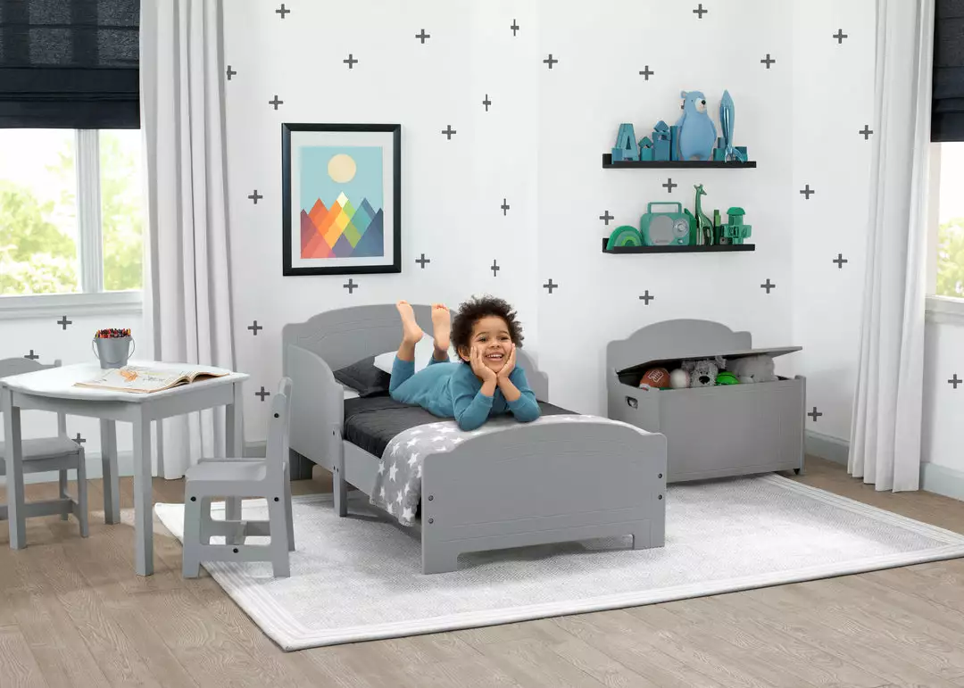 SKU: delta-children-6617432588488 Categories: Kids' Bedroom, Toddler Beds Tags: $0 - $99, Grey, Natural, Solid Color, Toddler Beds, White, Wood-toddlerbed