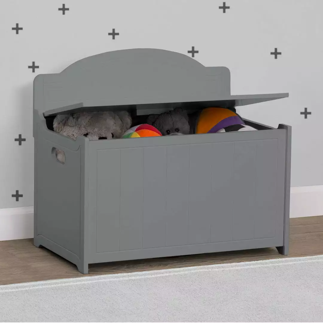 The Newport Wood Toy Box by Delta Children is a stylish storage option for the living room, playroom or your child’s bedroom. The classic, elegant look of this wood toy box is inspired by costal charm with its gentle curves and shiplap-like paneling. Outfitted with a spacious interior, this toy bin provides plenty of space to store toys large and small. Cutout handles on either side allow you to easily move the toy box from room to room. Designed with a slow-closing lid to prevent little hands from getting pinched, the Newport Toy Box by Delta Children is a safe choice for your little one. Coordinates with other items in the Delta Children Newport Collection.