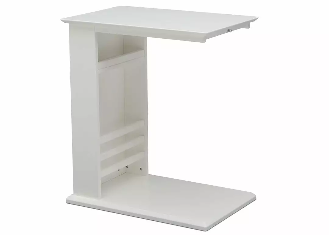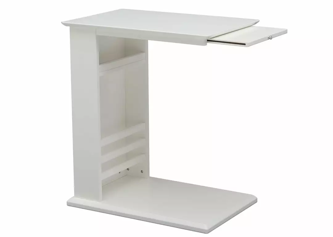 - VERSATILE DESIGN: This side table features book/magazine storage space and one pullout shelf with metal knob