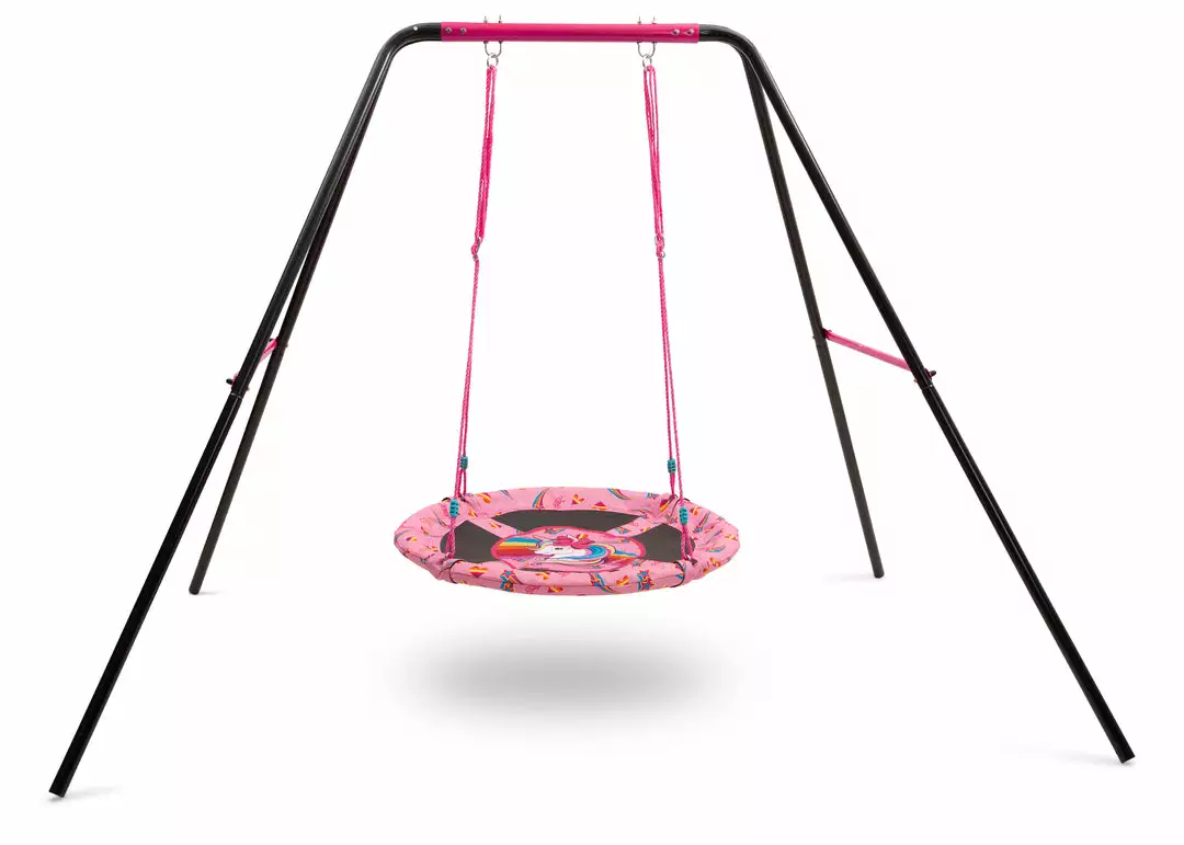 It doesn’t get any sweeter than this Jojo Siwa Saucer Swing for Kids by Delta Children. This saucer-shape swing can fit up to two children (250 pounds total) and is easy to hang just about anywhere, simply attach the included rope and hardware to your existing swing set or a tree. With swinging, spinning and soaring, this disc swing is the ideal toy to encourage gross motor skills, coordination, balance, cooperative play, outdoor play and exercise. And, don’t worry about leaving it outside, its weather-resistant construction can withstand years of outdoor use. Get it today and encourage kids to dream crazy big with some help from JoJo Siwa! This swing is recommended for ages 3+. Includes all hardware needed for installation.