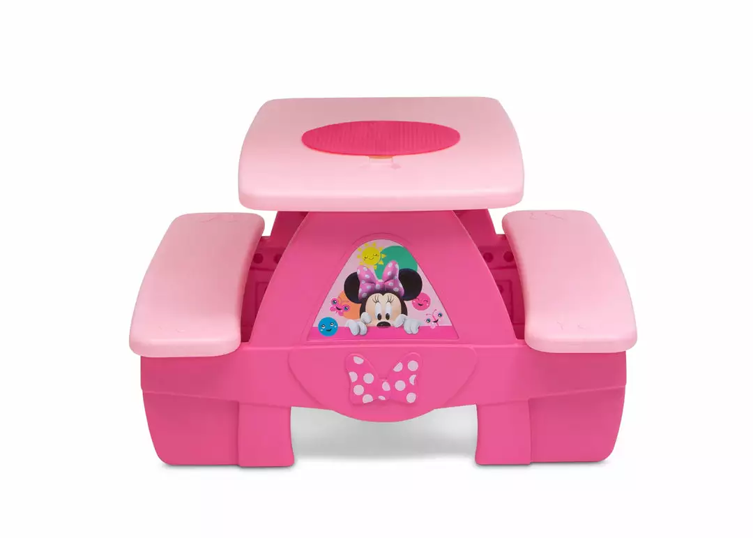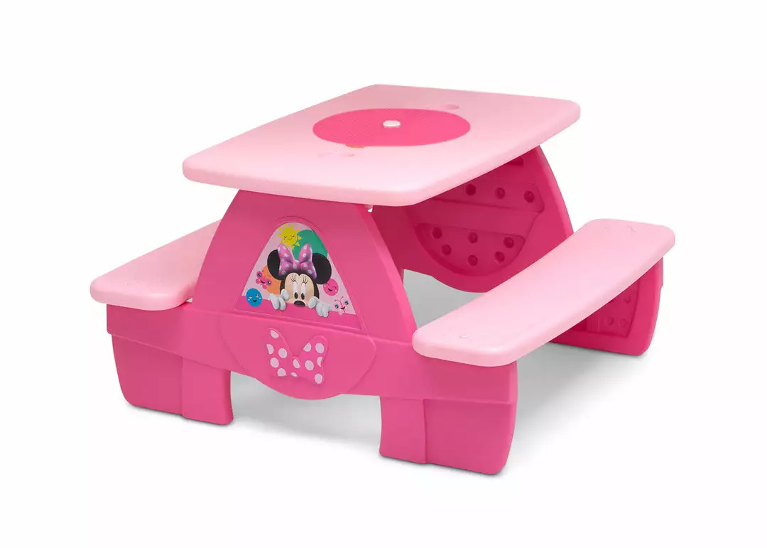 Delta Children Outdoor Minnie Mouse 4 Seat Activity Picnic Table With LEGO Compatible Tabletop