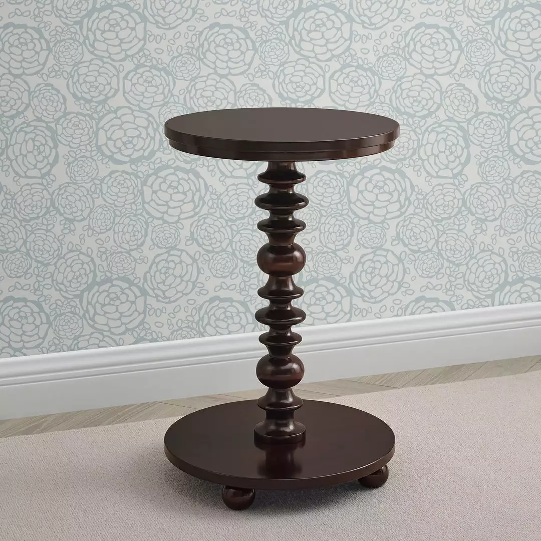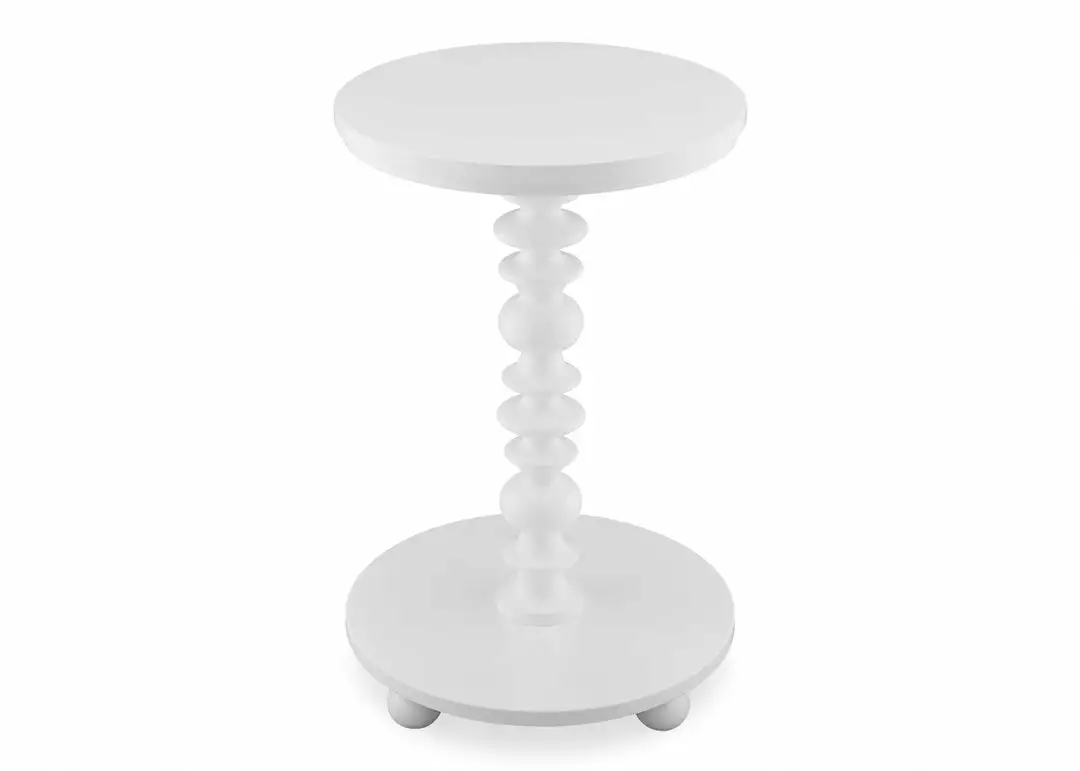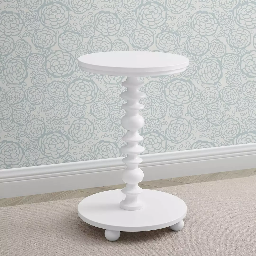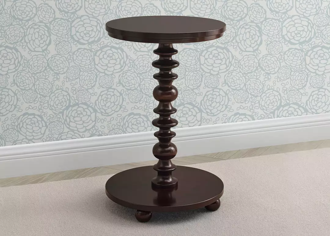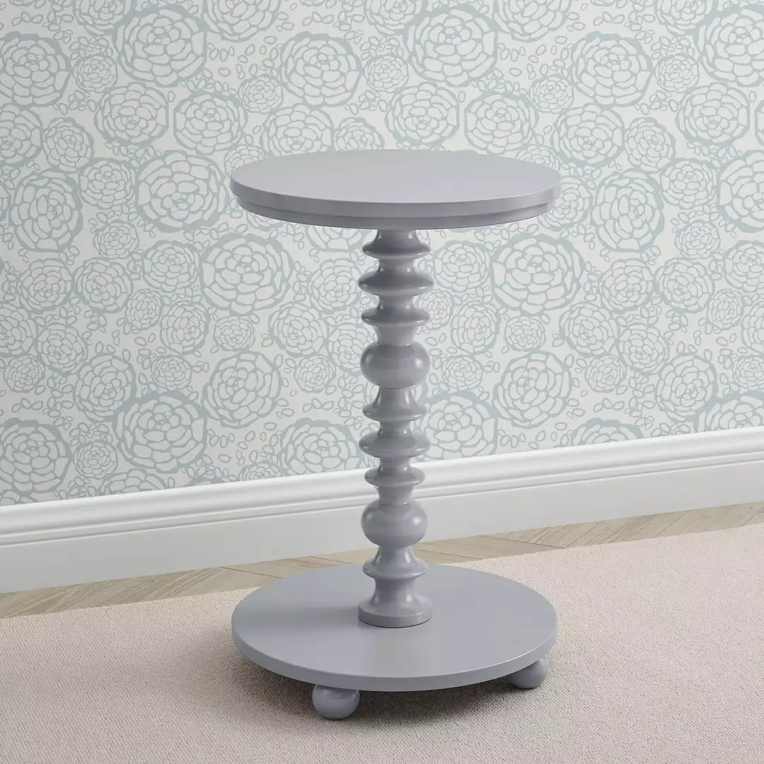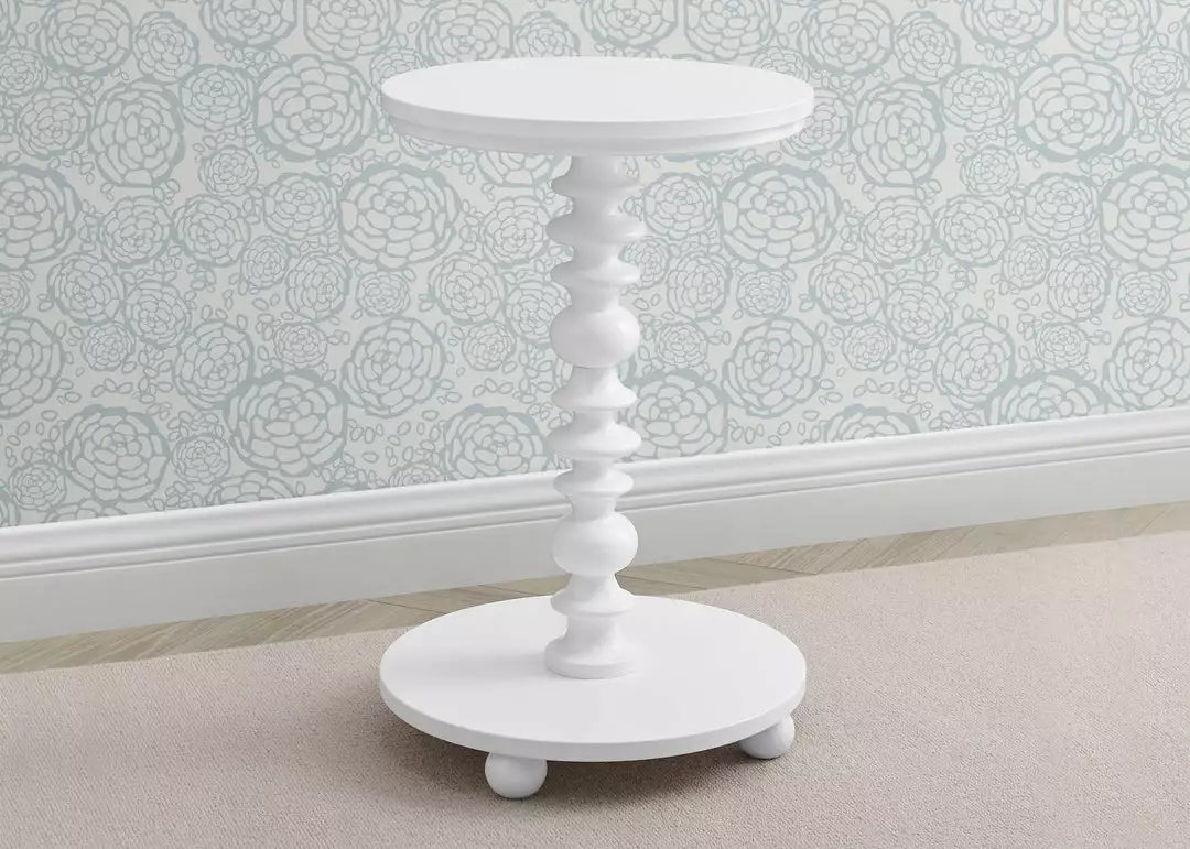 The Palmer End/Side Table by Delta Children is a well-rounded option for your baby’s nursery, your living room or bedroom. Featuring an elegant and charming design, this accent table pairs a round top and feet with intricate wood turnings in classic Jenny Lind style. Extremely versatile, use the Palmer End/Side Table in any room–its top is large enough to fit a lamp, stack of books and other knick-knacks while its height makes it the perfect companion to any glider, sofa or chair. Available in Grey, Bianca White and Dark Chocolate.