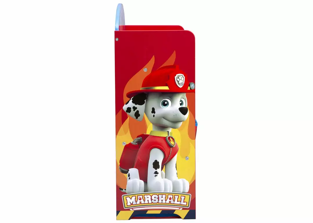 Rescue the playroom or bedroom from clutter with this Nick Jr. PAW Patrol Deluxe Book & Toy Organizer from Delta Children. Perfect for keeping your little one’s toys and reading materials organized, it features three medium sized bins, two large bins, and a book rack for displaying books and magazines on the top. Adorned with colorful graphics of Chase, Marshall, Rubble, Skye and Everest, it showcases all your child’s favorite pups from PAW Patrol.