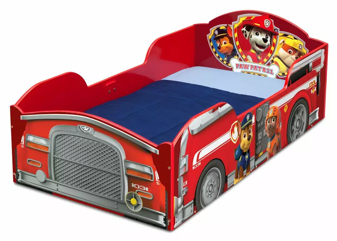Bring the excitement of an action-packed rescue adventure to your child’s room with the Nick Jr. PAW Patrol Wood Toddler Bed by Delta Children. Featuring colorful fire truck graphics and everyone’s favorite canines, Marshall, Chase, Rubble and Zuma, it’s a must-have bed for any PAW fan. Plus, it’s designed with high sides that serve as guardrails—giving your child the independence they crave while keeping them safe at night.