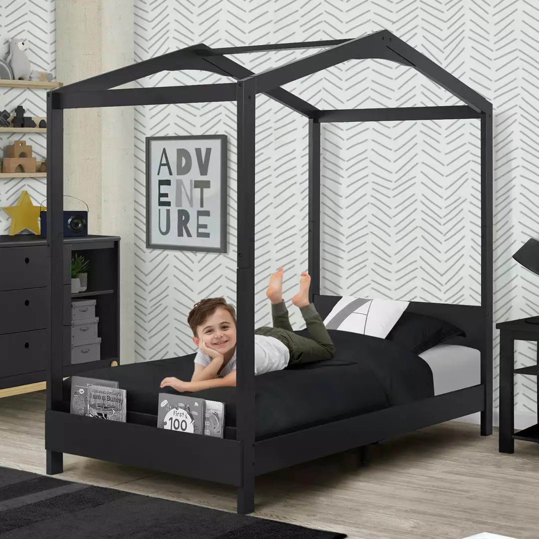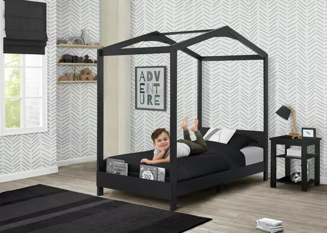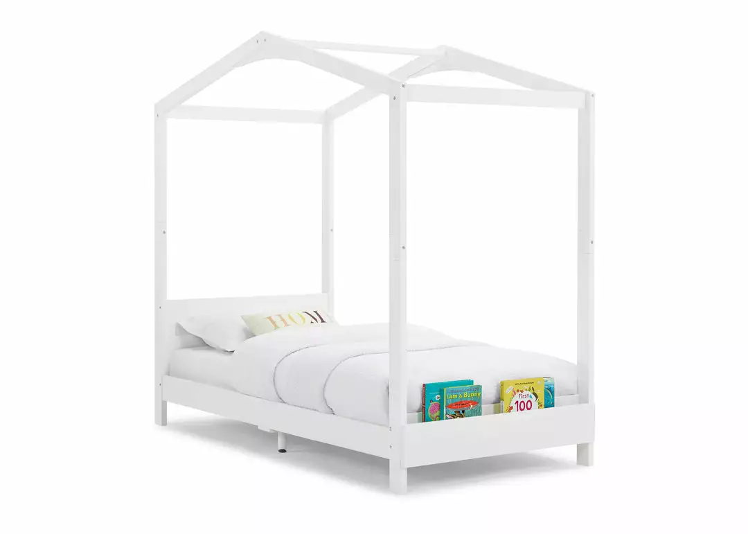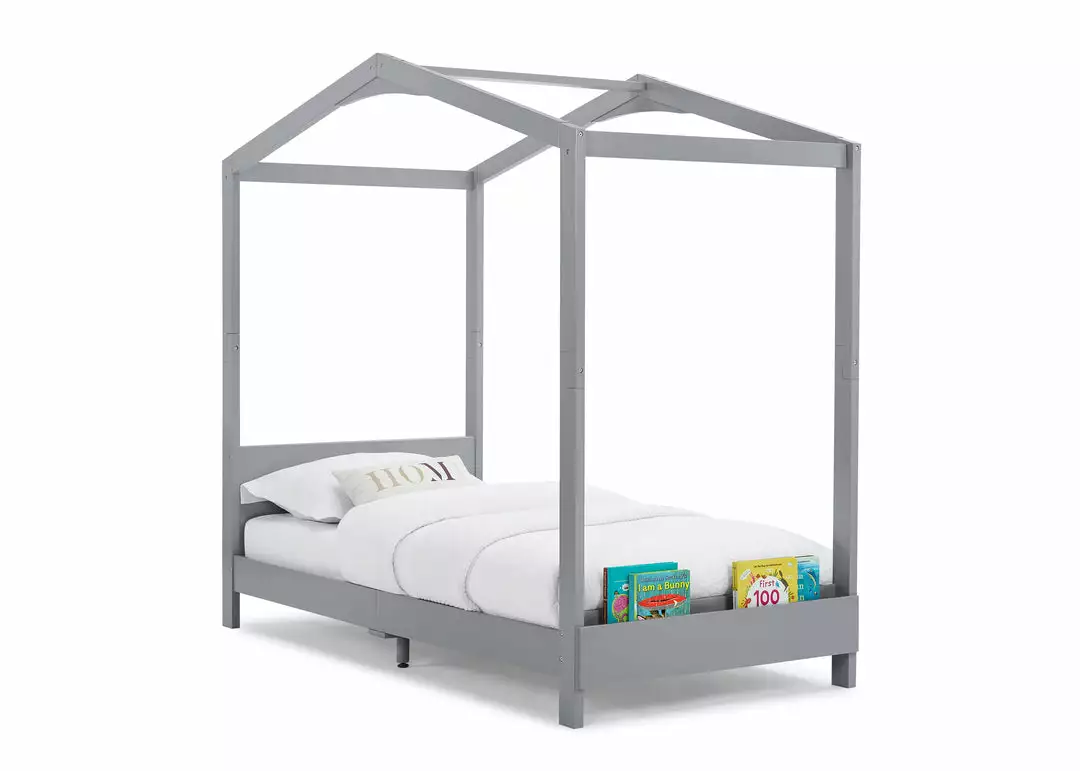 The Poppy House Twin Bed by Delta Children features a classic house shape that will inspire your child’s imagination—they’ll play house, build next level blanket forts or pretend to campout in their bedroom, but most of all they’ll love heading to bed each night. They’ll adore this magical retreat for all of its whimsical accents, and you’ll love it for its low height that’s easy to get in and out of and built-in book storage at the footboard. Available in multiple child-safe finishes, this playful twin bed for kids is made from quality materials is expertly designed to withstand the test of time.
