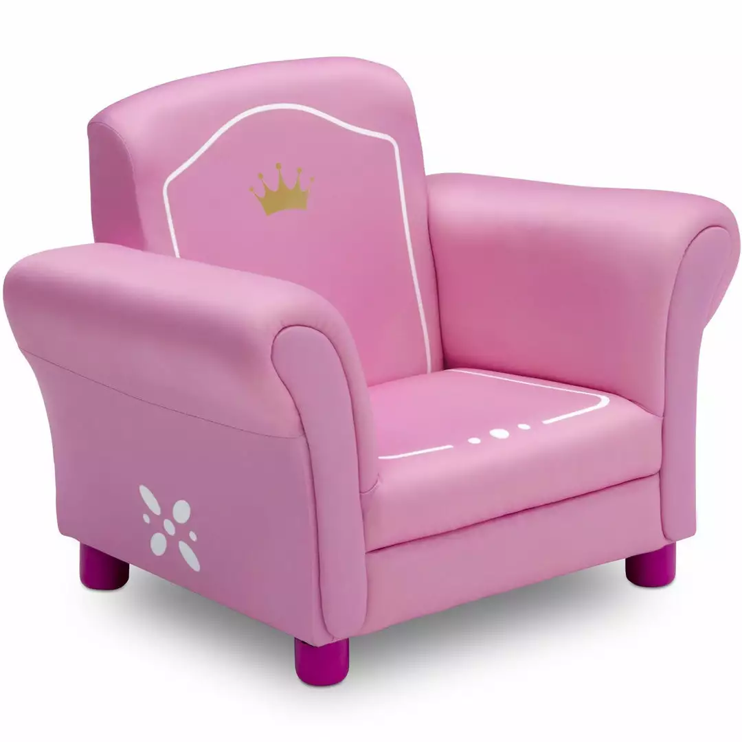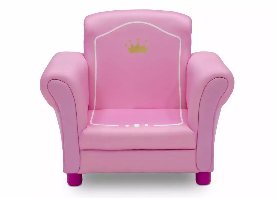Every princess needs a throne, and the Princess Crown Kids Upholstered Chair from Delta Children is the perfect option! It brings whimsical and magical design to your little one’s space with its gold crown emblem, pink hue and floral accents on the sides. The chair’s wood frame ensures durability while its padded armrests and cushion help create a cozy, kid-sized chair that will look great anywhere in the house. The Princess Crown Kids Upholstered Chair coordinates with other items in the Princess Crown Collection from Delta Children.
