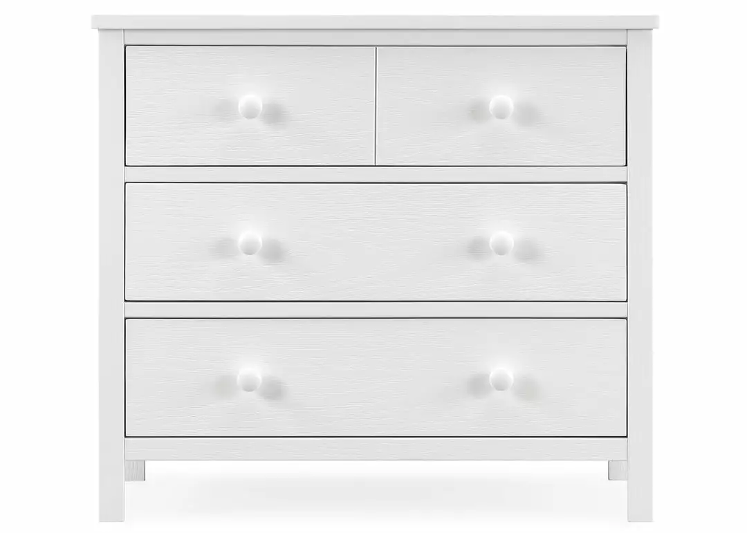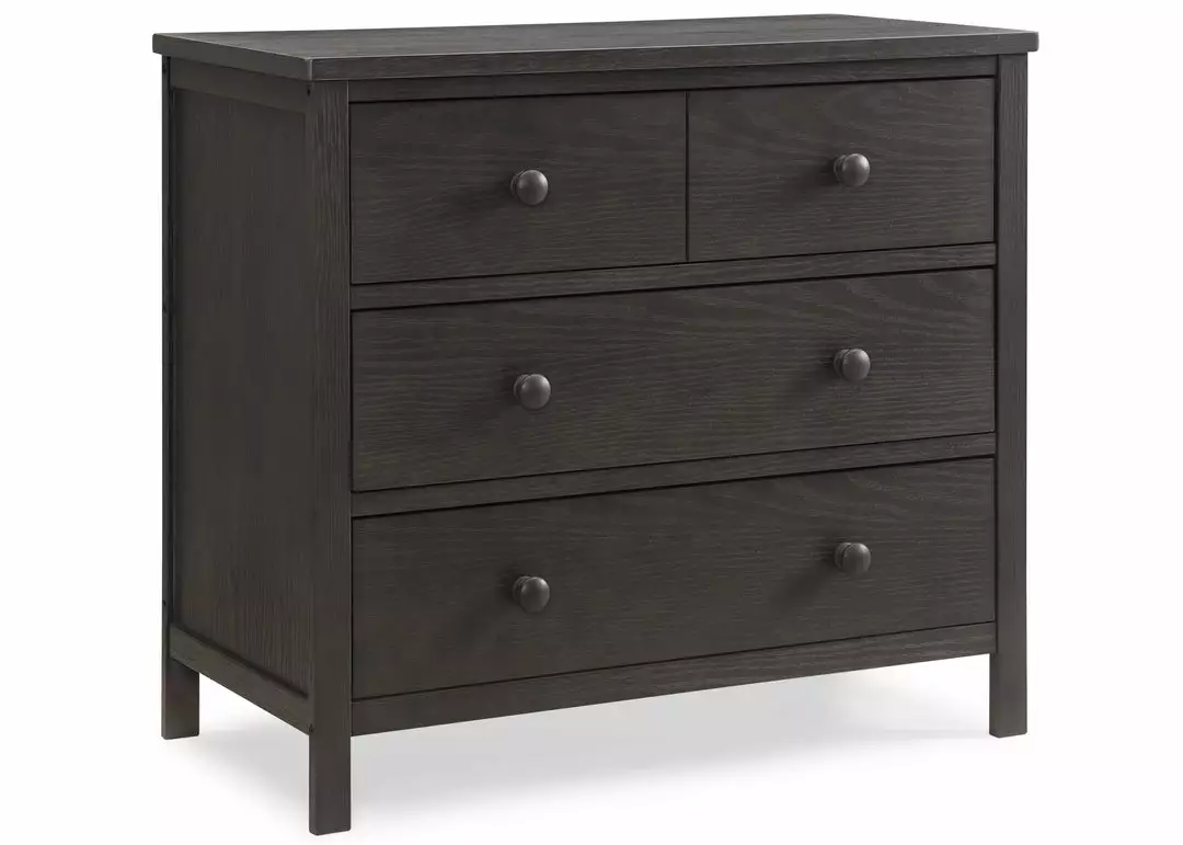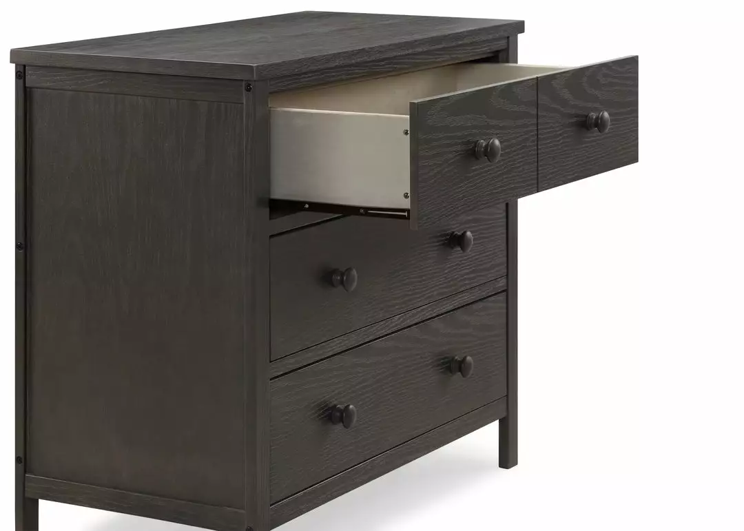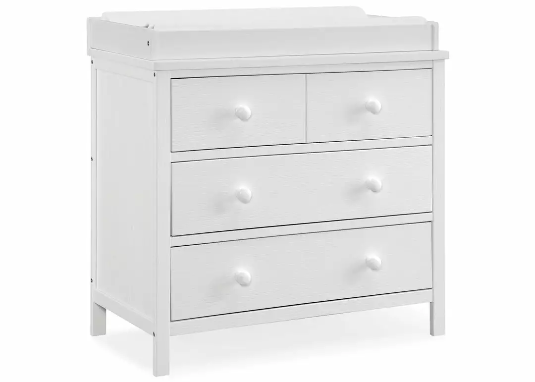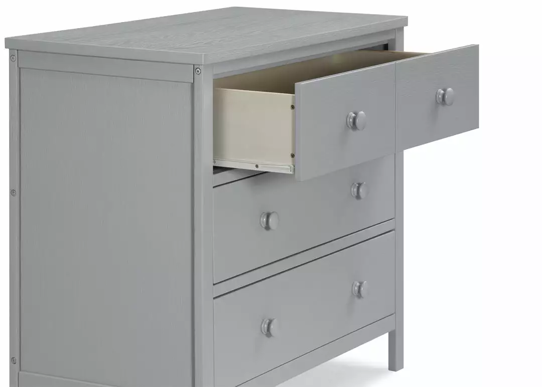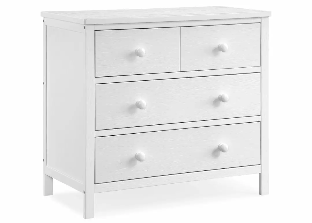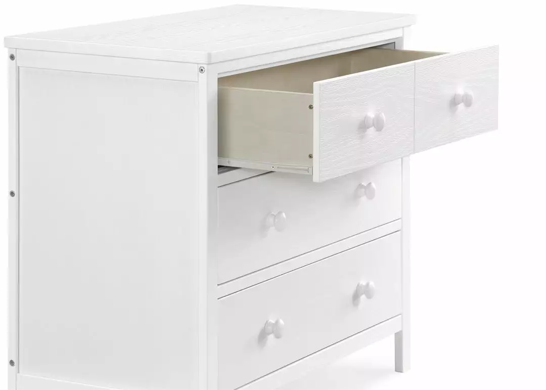 The Sweet Beginnings 3 Drawer Dresser by Delta Children features classic and timeless style that can go with a variety of decor styles. The dresser’s softly textured finish is hand applied and flawlessly coordinates with all of the items in the Sweet Beginnings collection. Constructed with quality pine wood and composites, this sturdy dresser is built to last your child from birth till their teen years. The dresser also has a smooth metal glide system with safety stops that prevent drawers from pulling out, so it is easy and safe for kids to manage on their own.