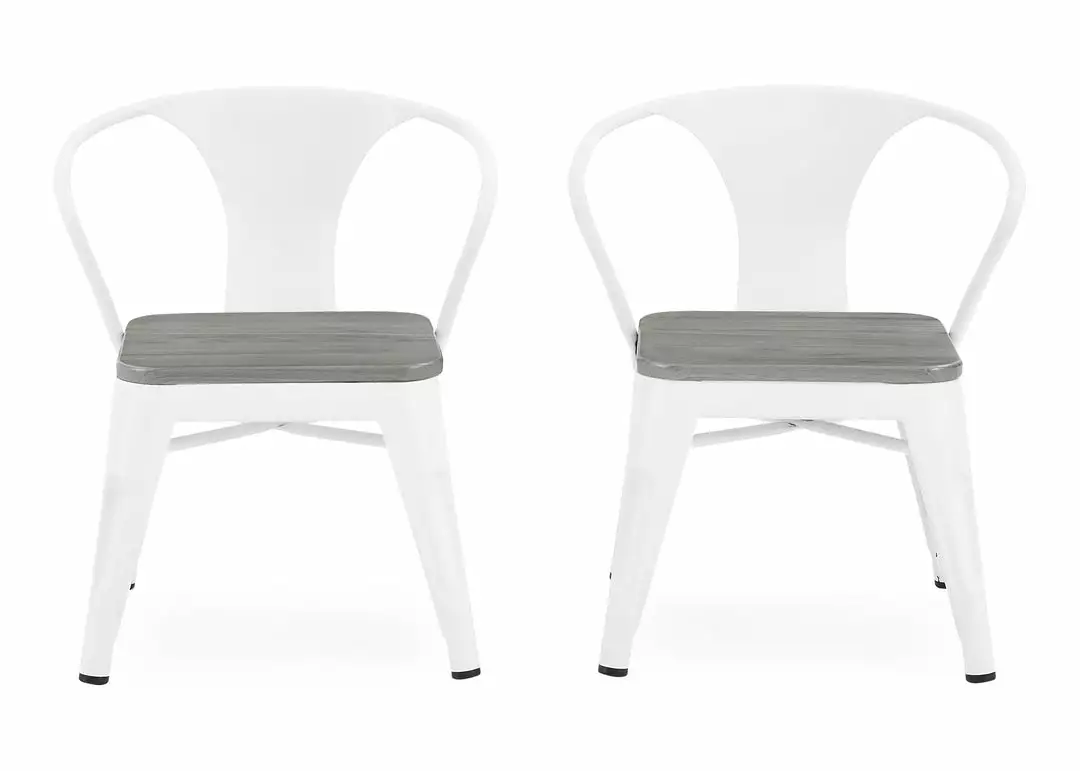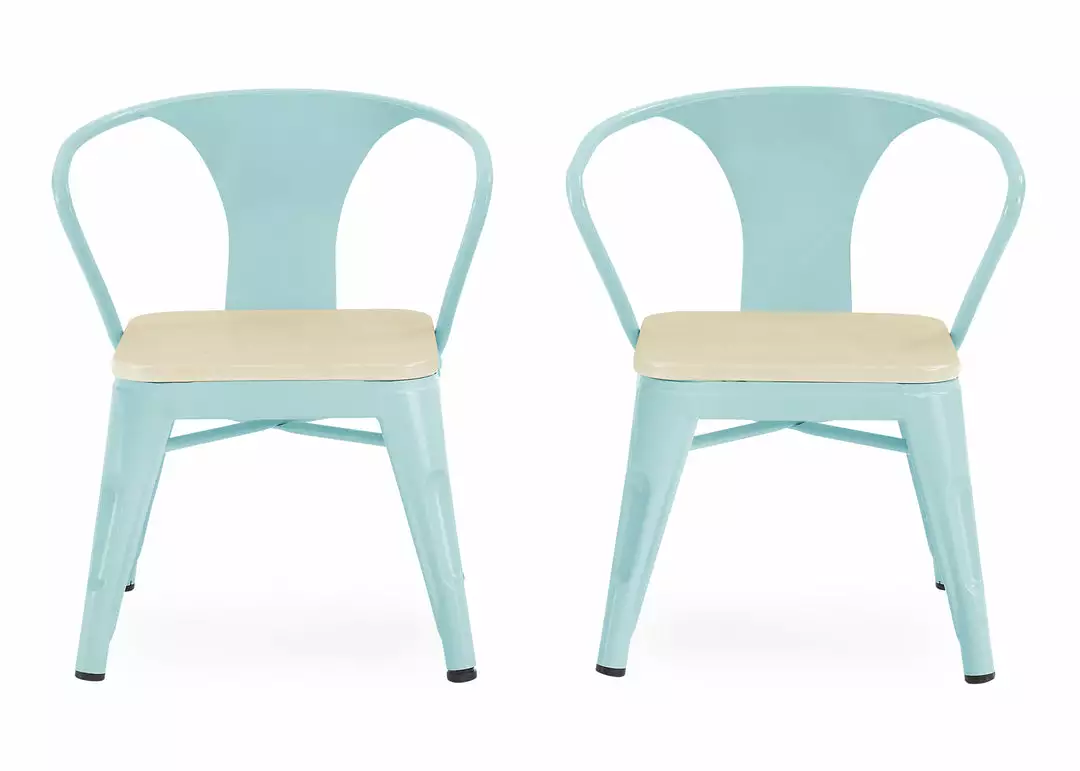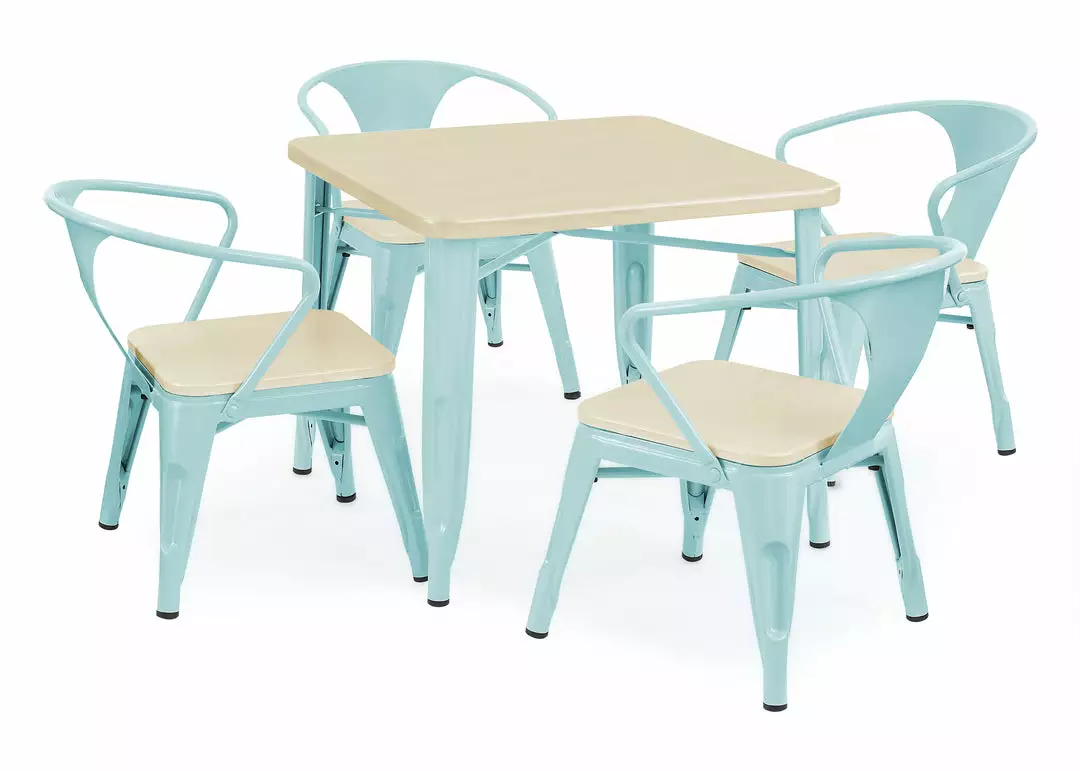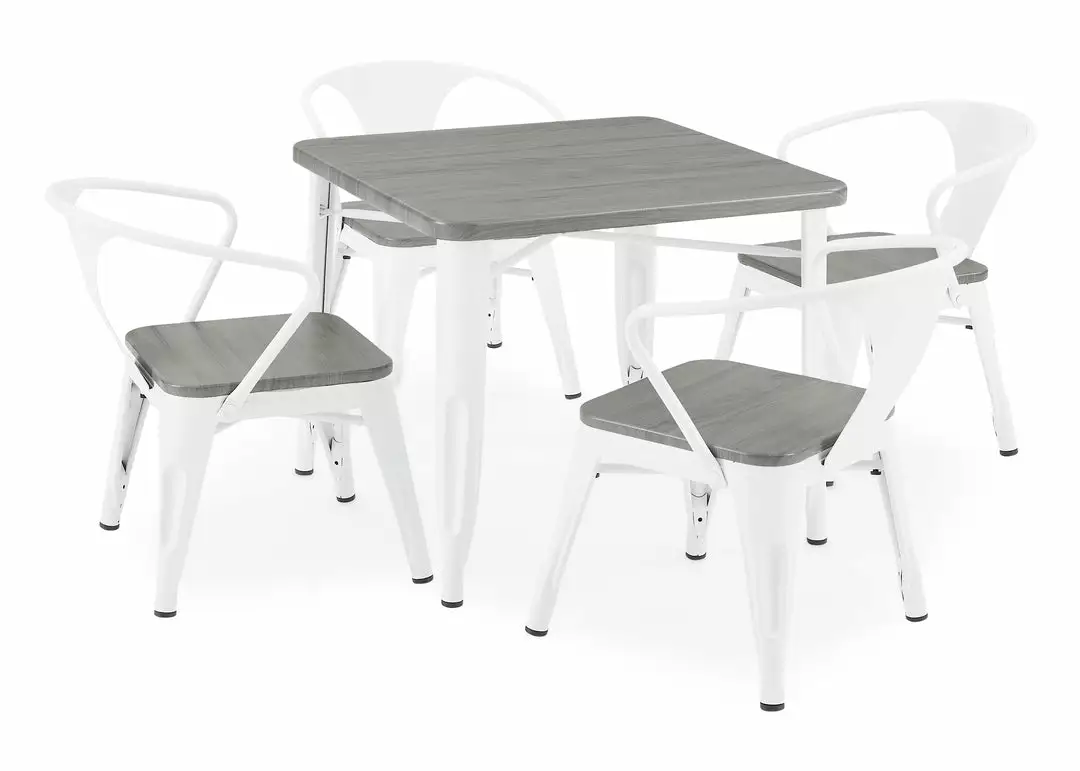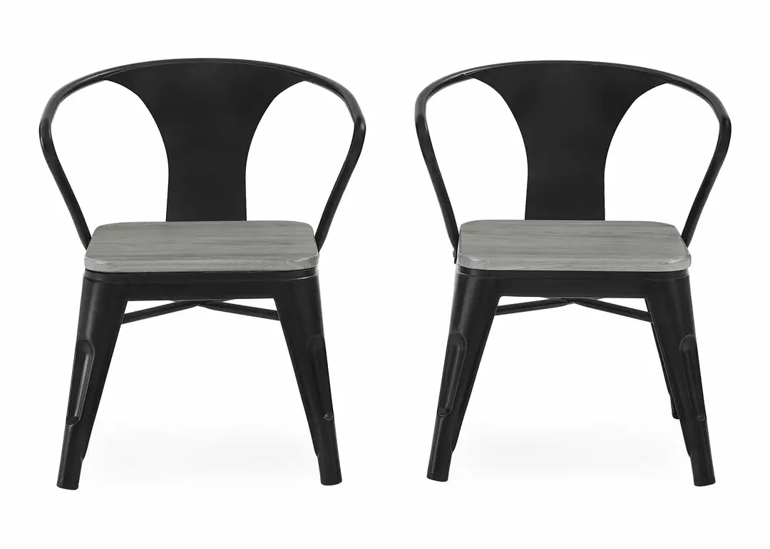 The perfect foundation for fun and learning, the Bistro Table and 4 Chair Set by Delta Children features a printed wood grain and painted metal legs. Whether your child uses it for art projects, tea parties, snack time or homework, this kids’ play table and chair set will enhance their sense of wonder no matter what activity they use it for. Sized just right for your growing child—the generous 20-inch height of this sturdy play table and 11.25-inch seat height ensures it can be used for many years. The table’s fun mixed material construction will complement existing bedroom, playroom or living room décor, easily allowing you to create a space that works for kids and adults alike. Rubber feet on table and chair’s legs protect the floor from scratches. Recommended for ages 3+.