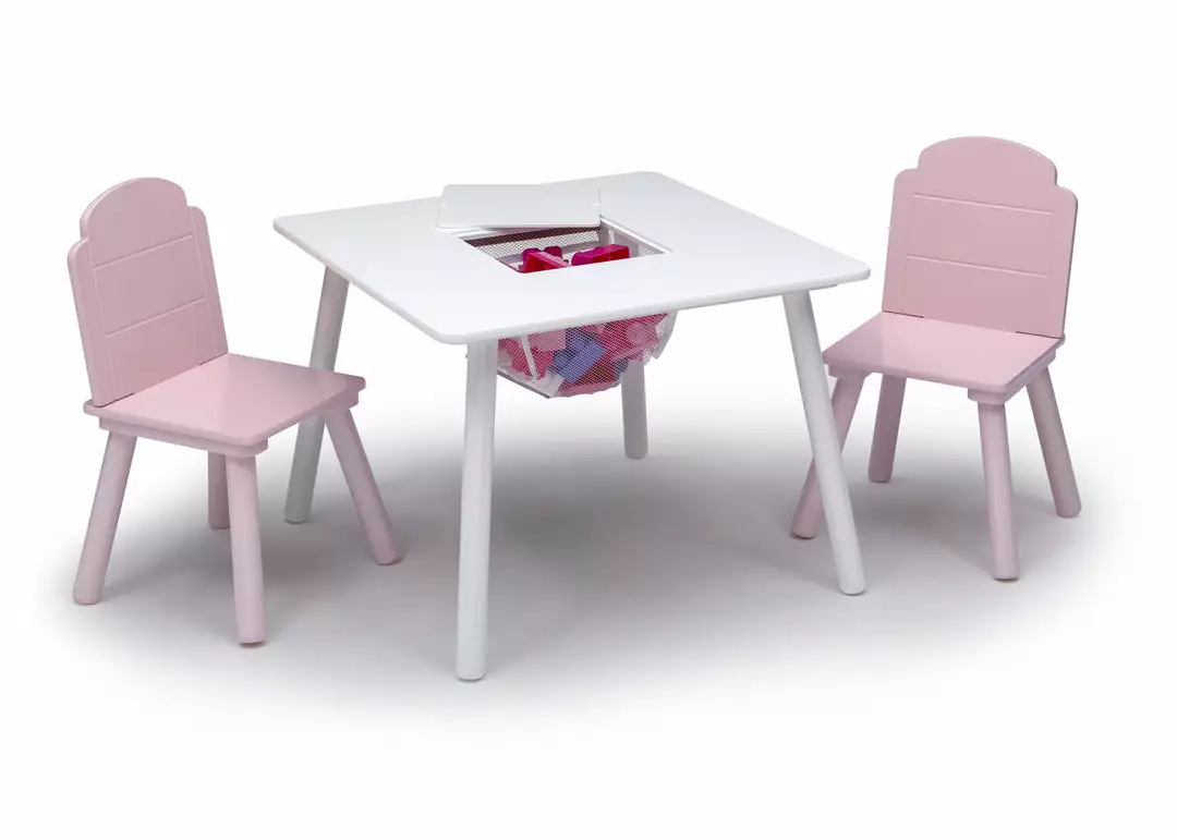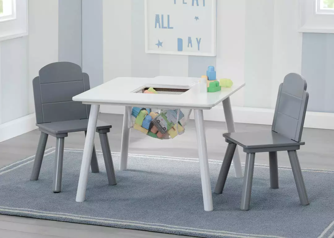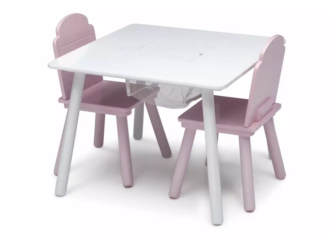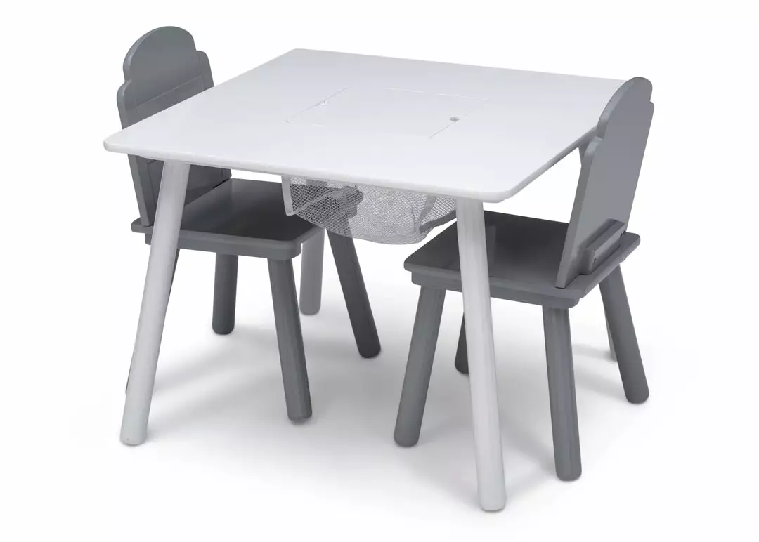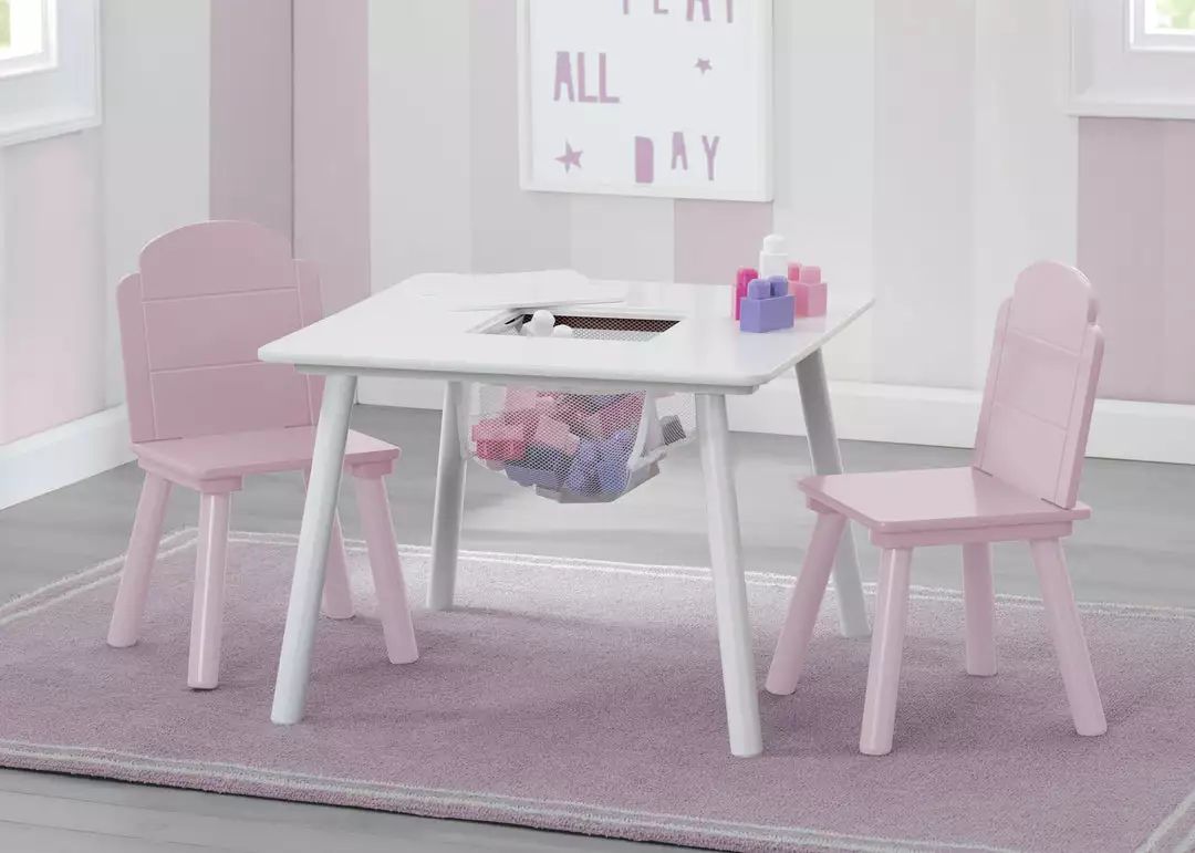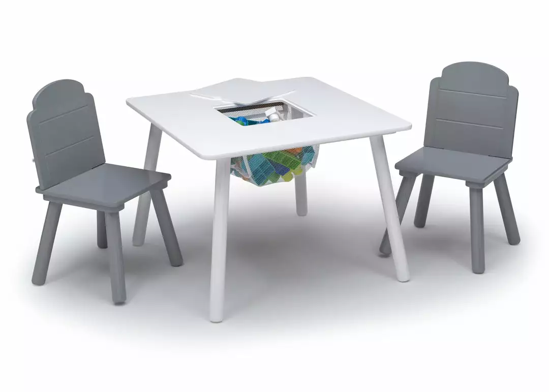 The Finn Table and Chair Set from Delta Children will spark years of creative play and learning. Perfectly sized for your growing child, this set features a sturdy wood table and 2 chairs with a sweet scalloped shape and grooved detailing.
