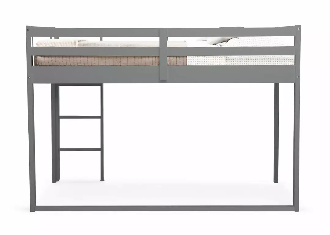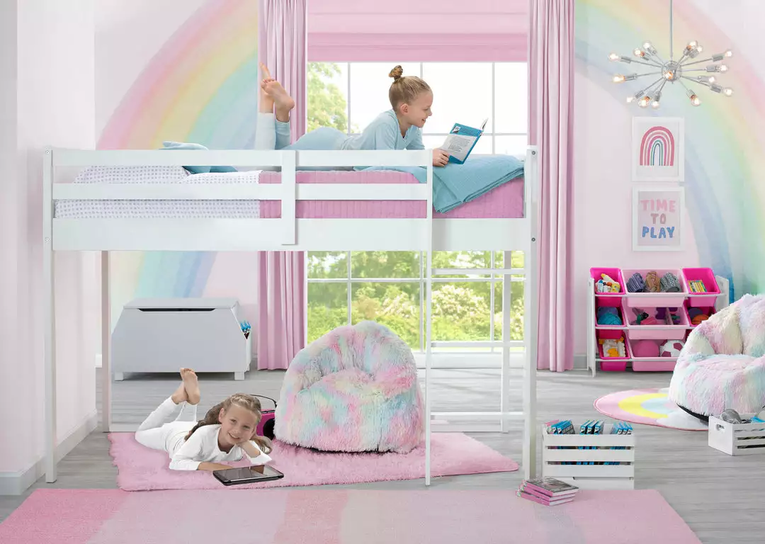 Free up your floor space while increasing storage and play space with this Low Twin Loft Bed with Guardrail and Ladder by Delta Children. Its timeless and modern design will work with any décor, while the versatile wood frame provides space underneath to store toys, create a remoting learning workstation or a fun fort hangout, anything is possible–your child’s imagination makes this loft bed their very own. Built to withstand everything your little one can throw at it, the bed’s sturdy wood construction with non-slip ladder and guardrails on all sides offers ultimate safety and security. Add our coordinating character tent to complete your child’s space (sold separately). Bed measures 77.6″L x 41.5″W x 53.5″H, fits a twin-size mattress (sold separately). Holds up to 250 lbs.