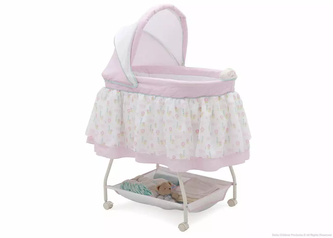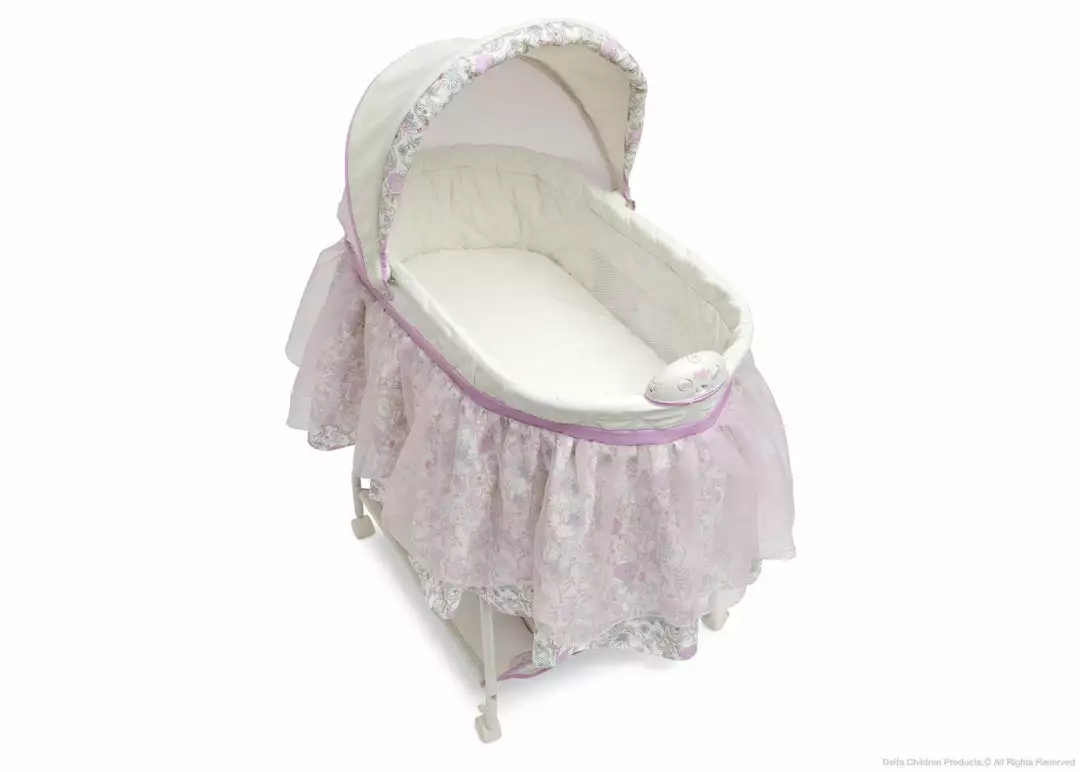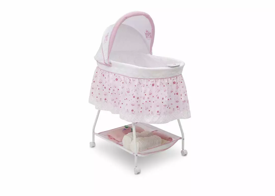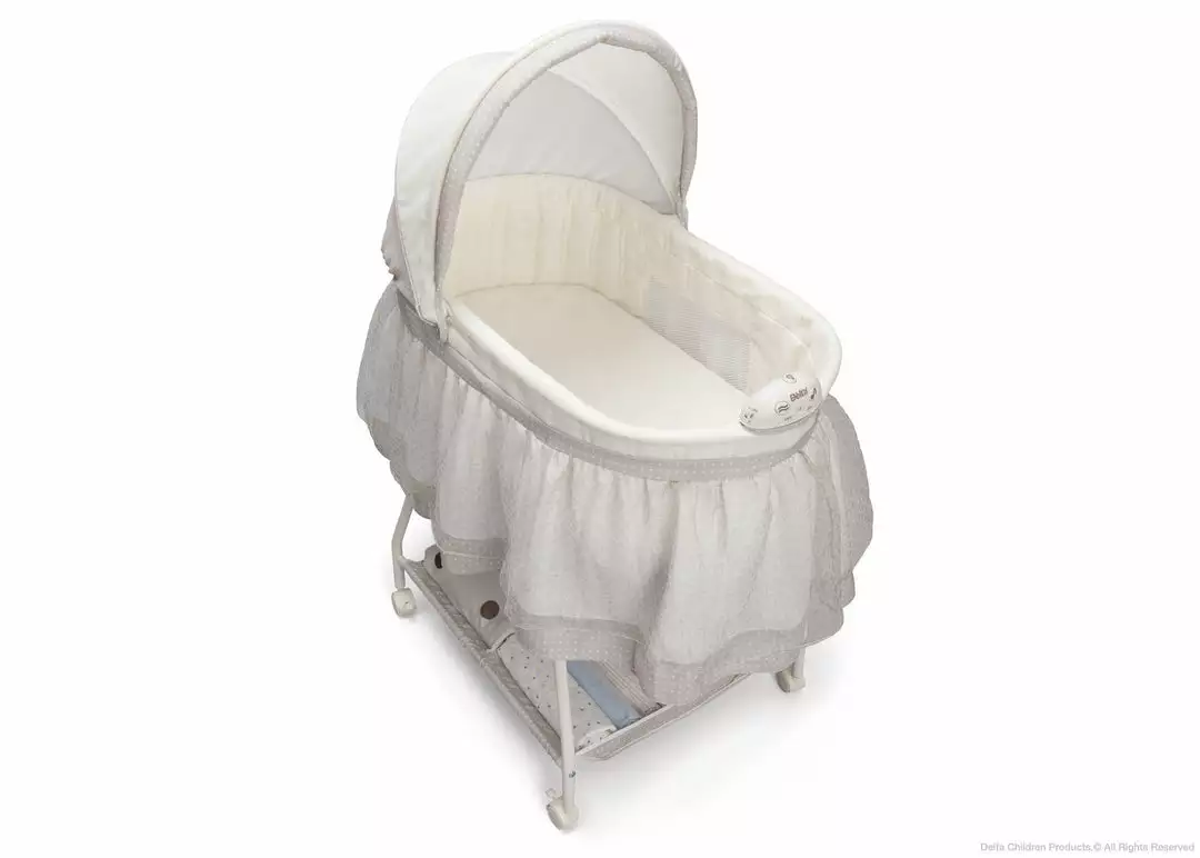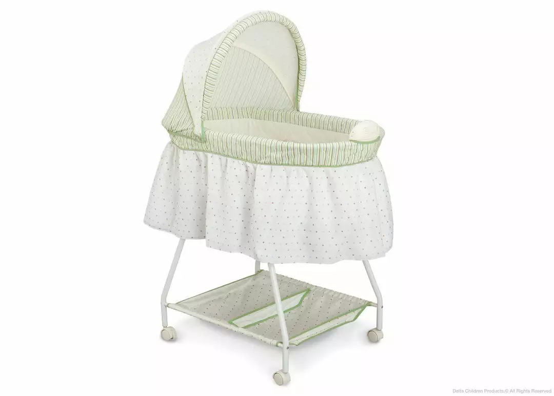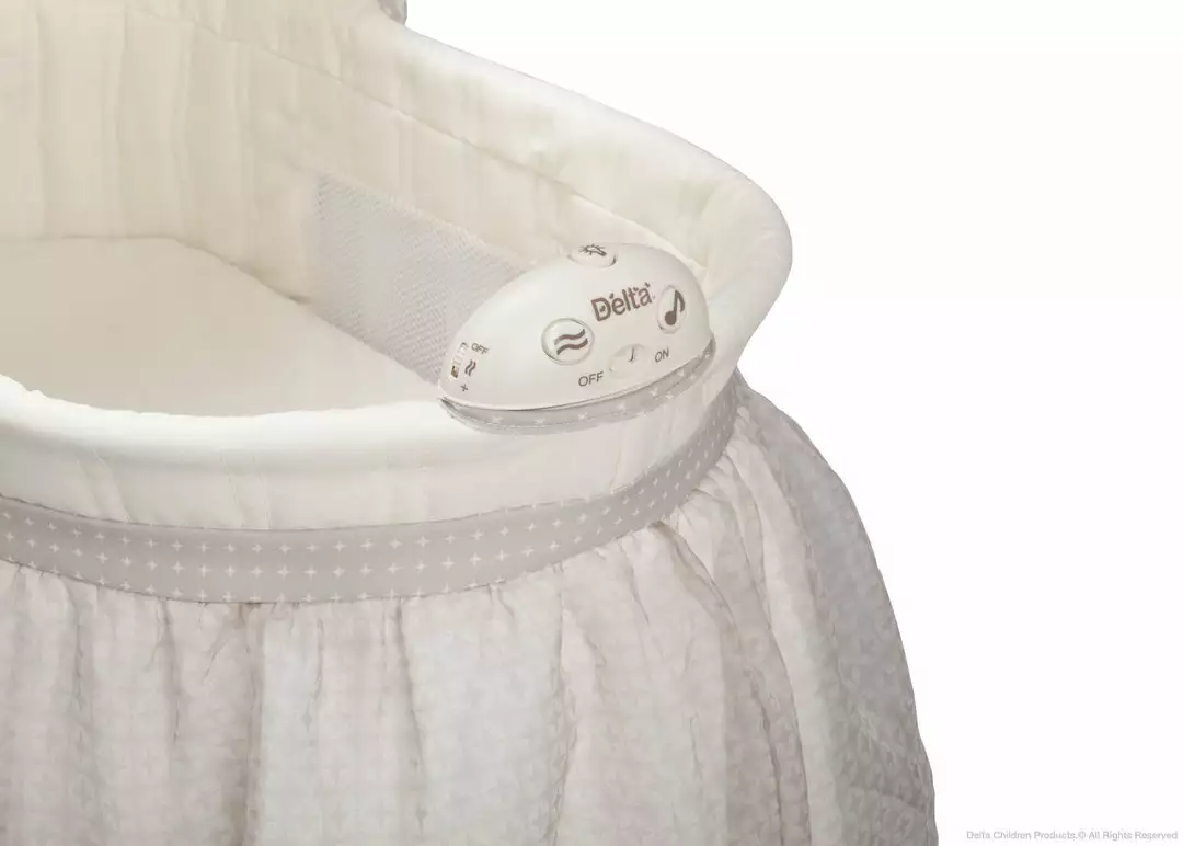 Providing a sense of security while also delivering on style, Delta Children’s Sweet Beginnings Bassinet boasts an adjustable canopy and an electronic music module with nightlight and gentle vibration. This cozy bassinet helps parents establish healthy sleep habits right from the start.